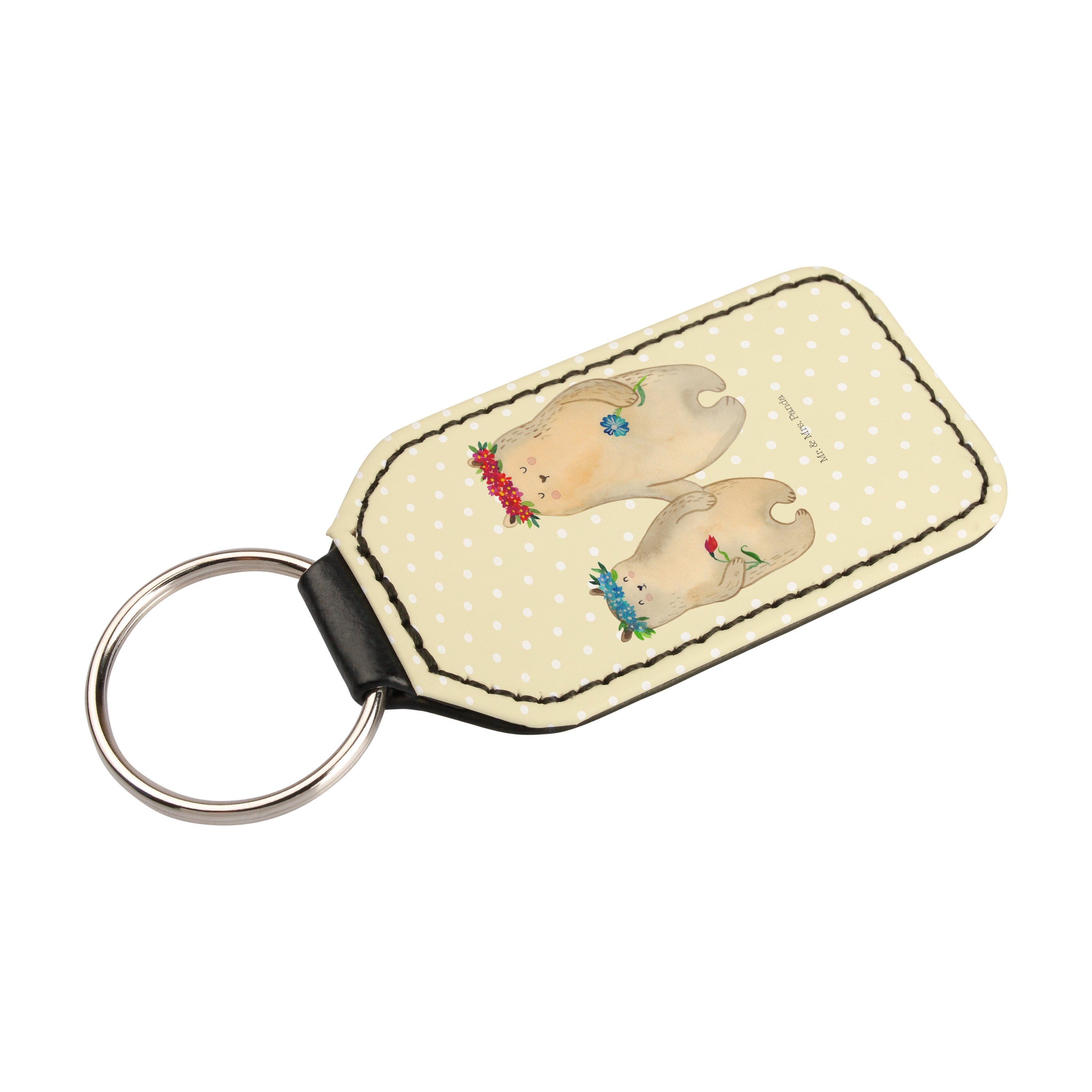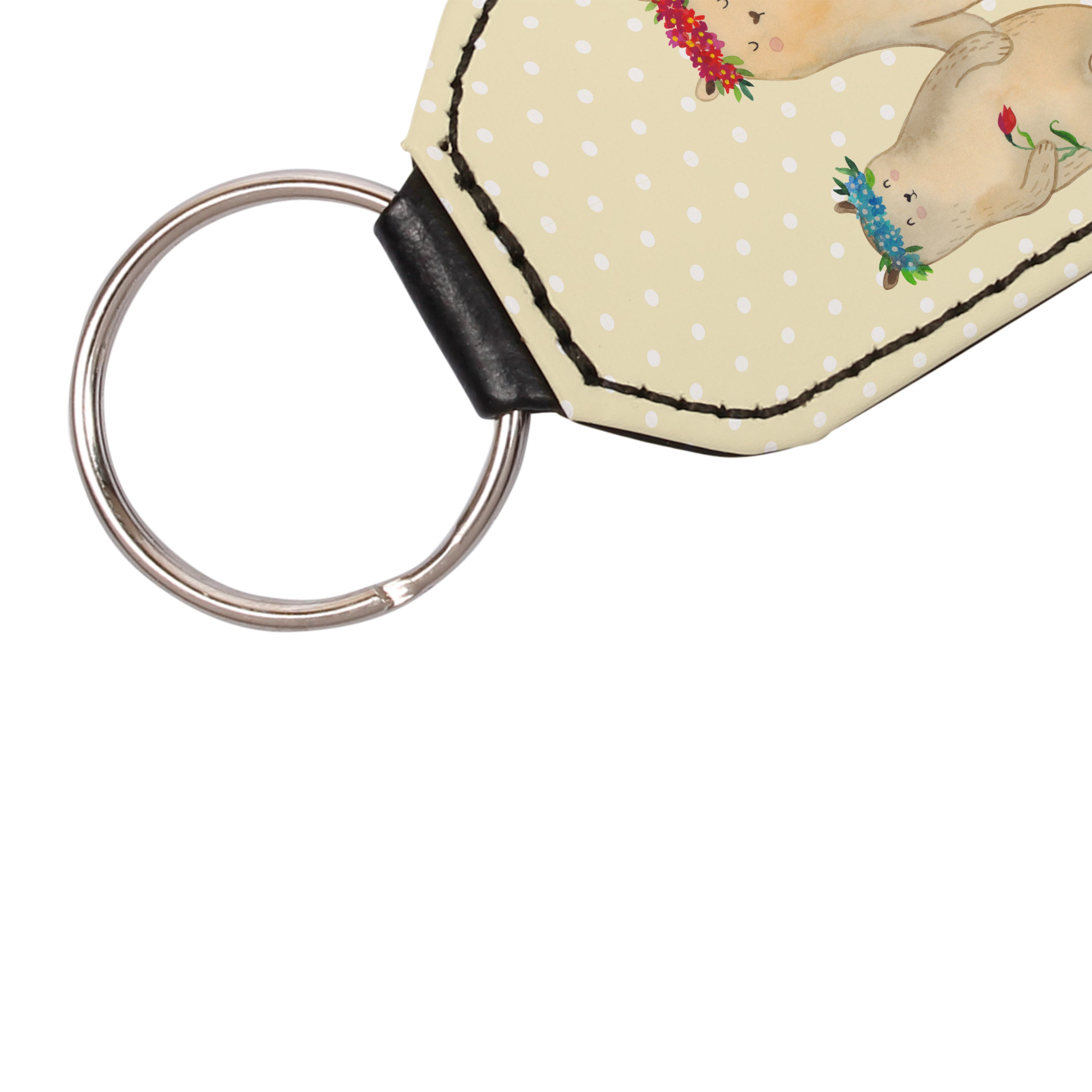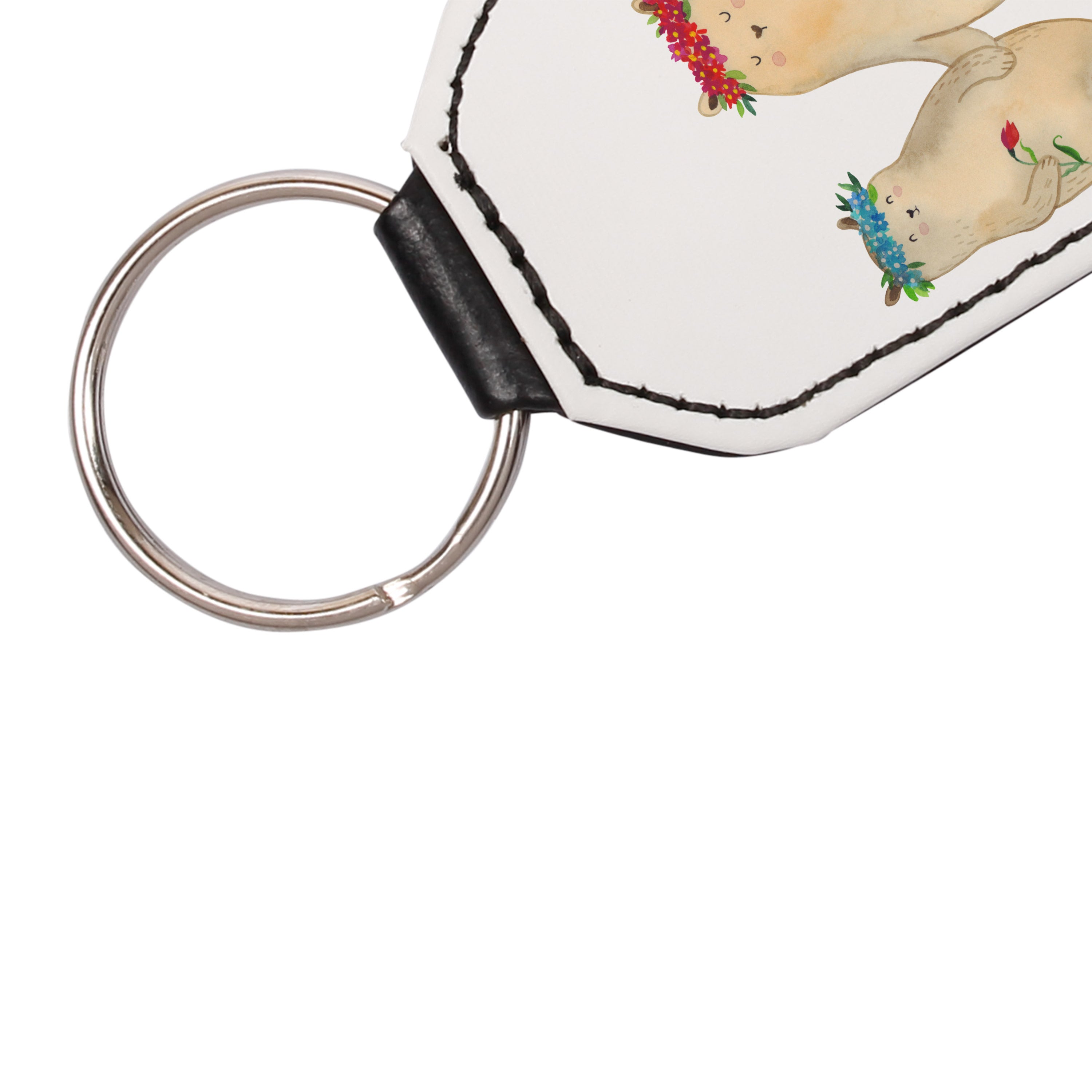 Rechteckig Schlüsselanhänger Bären mit Blumenkranz - Blau Pastell