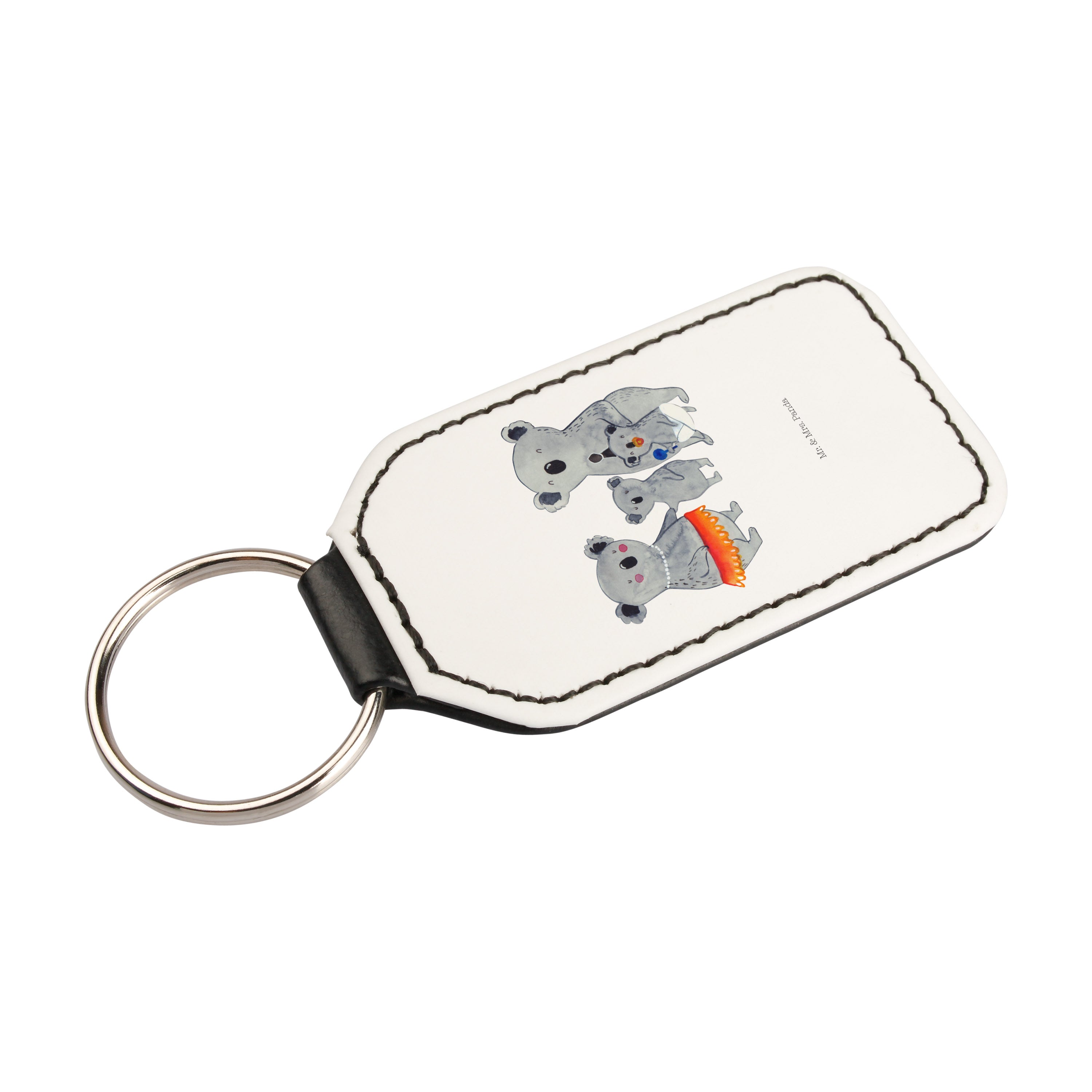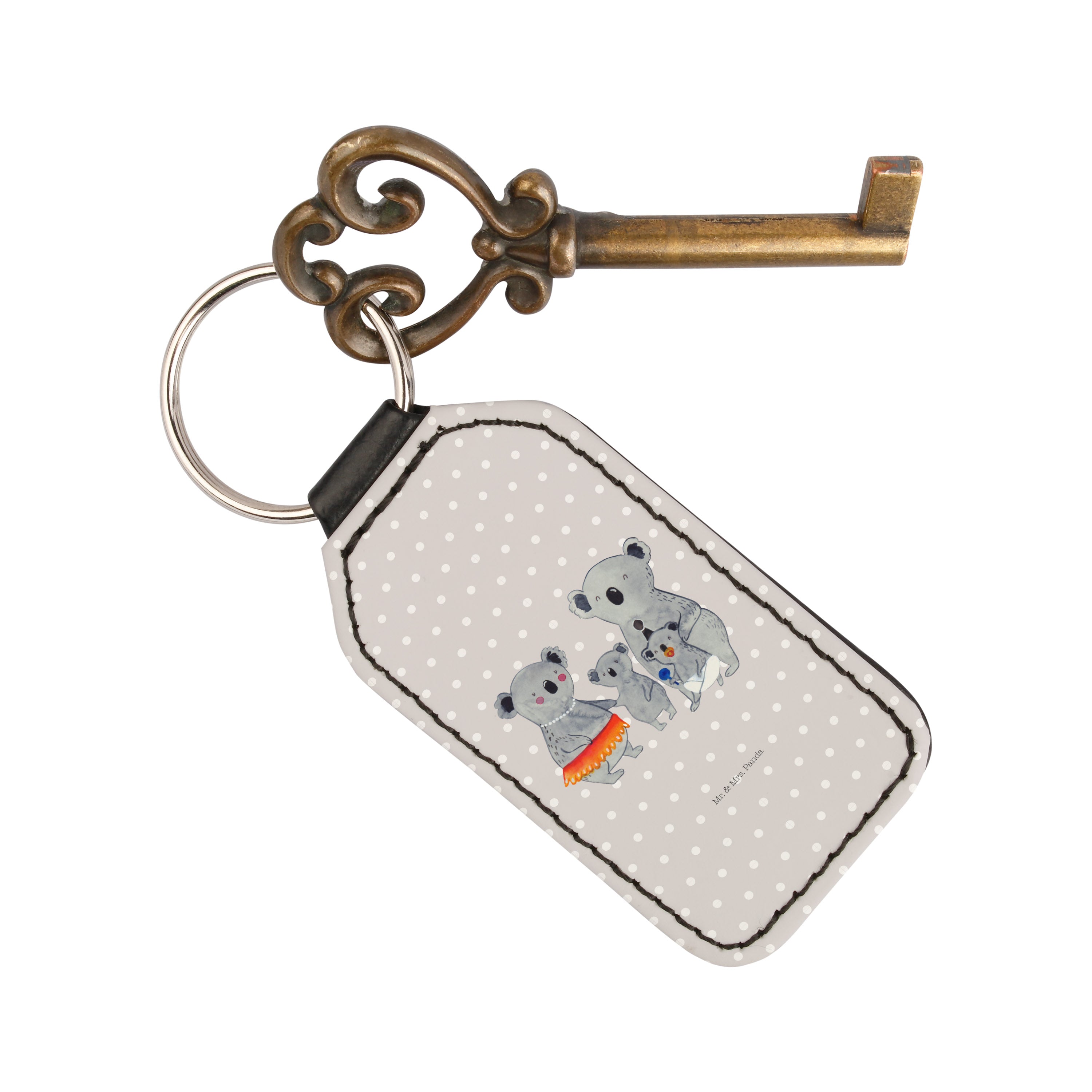 Rechteckig Schlüsselanhänger Koala Familie - Grau Pastell