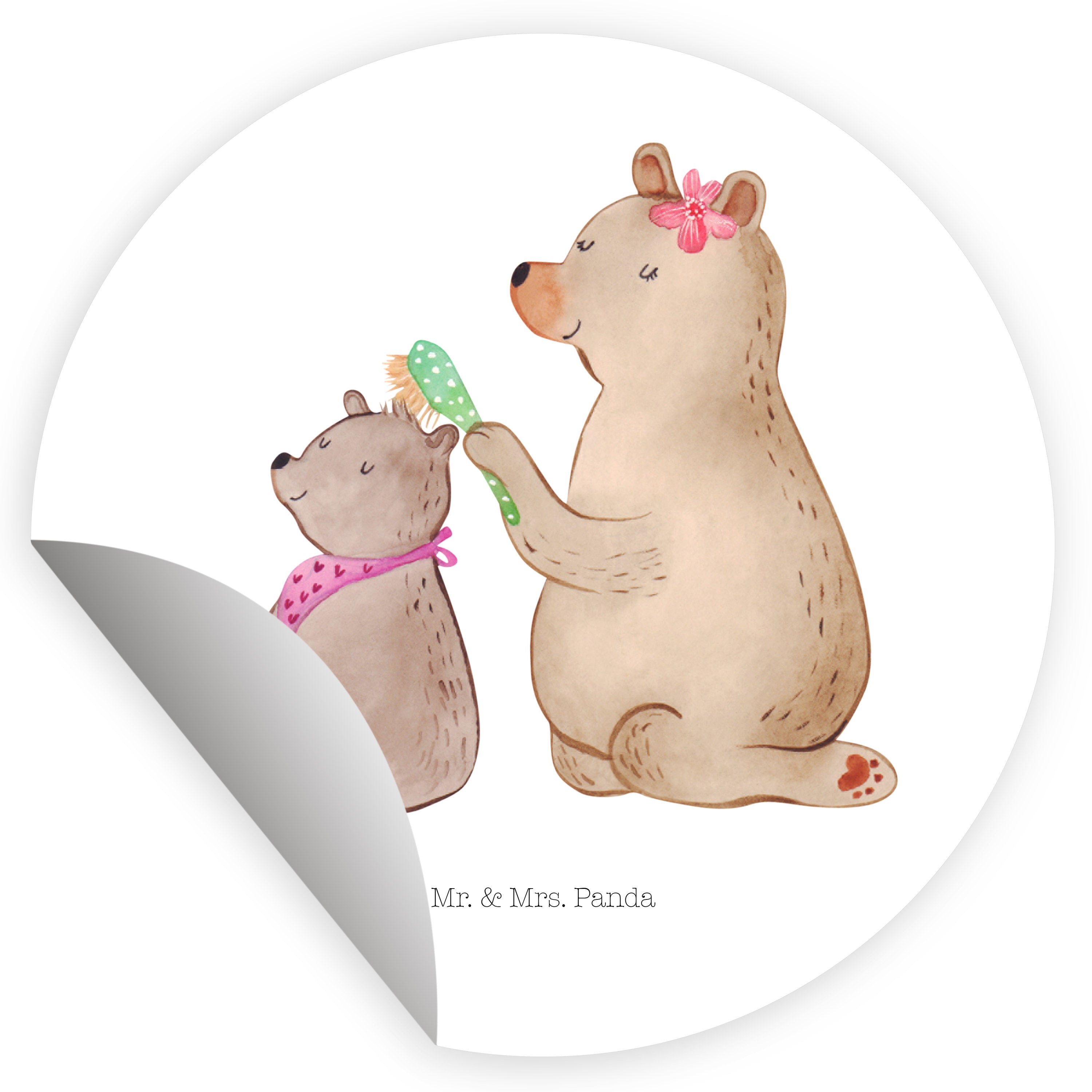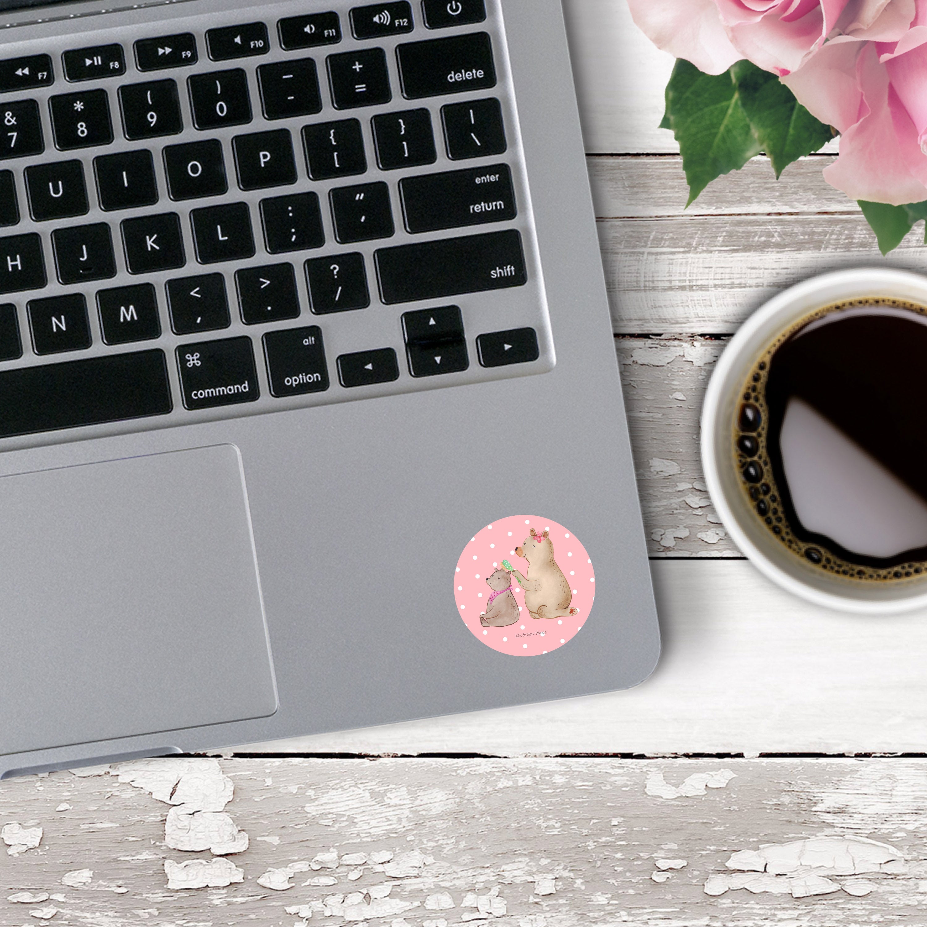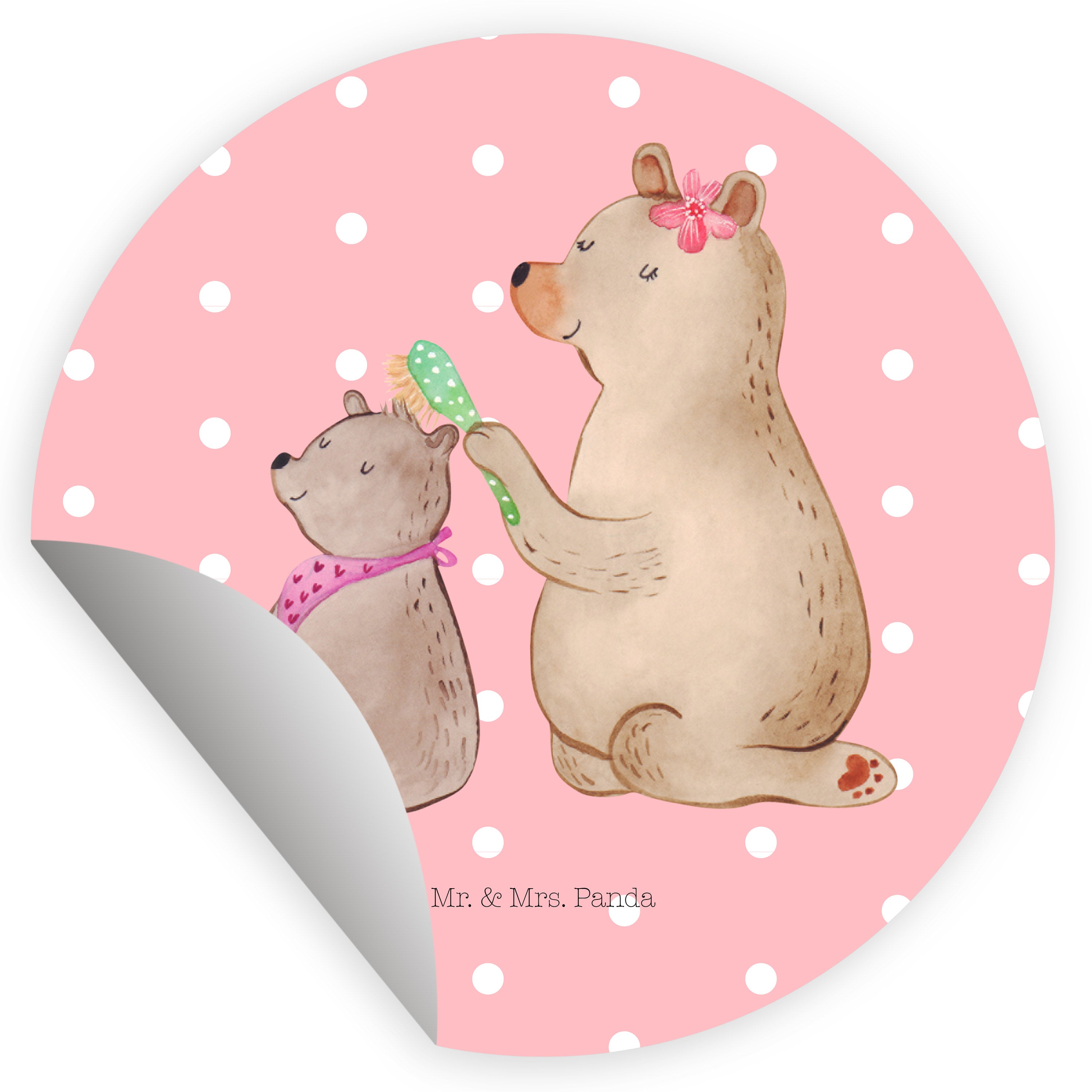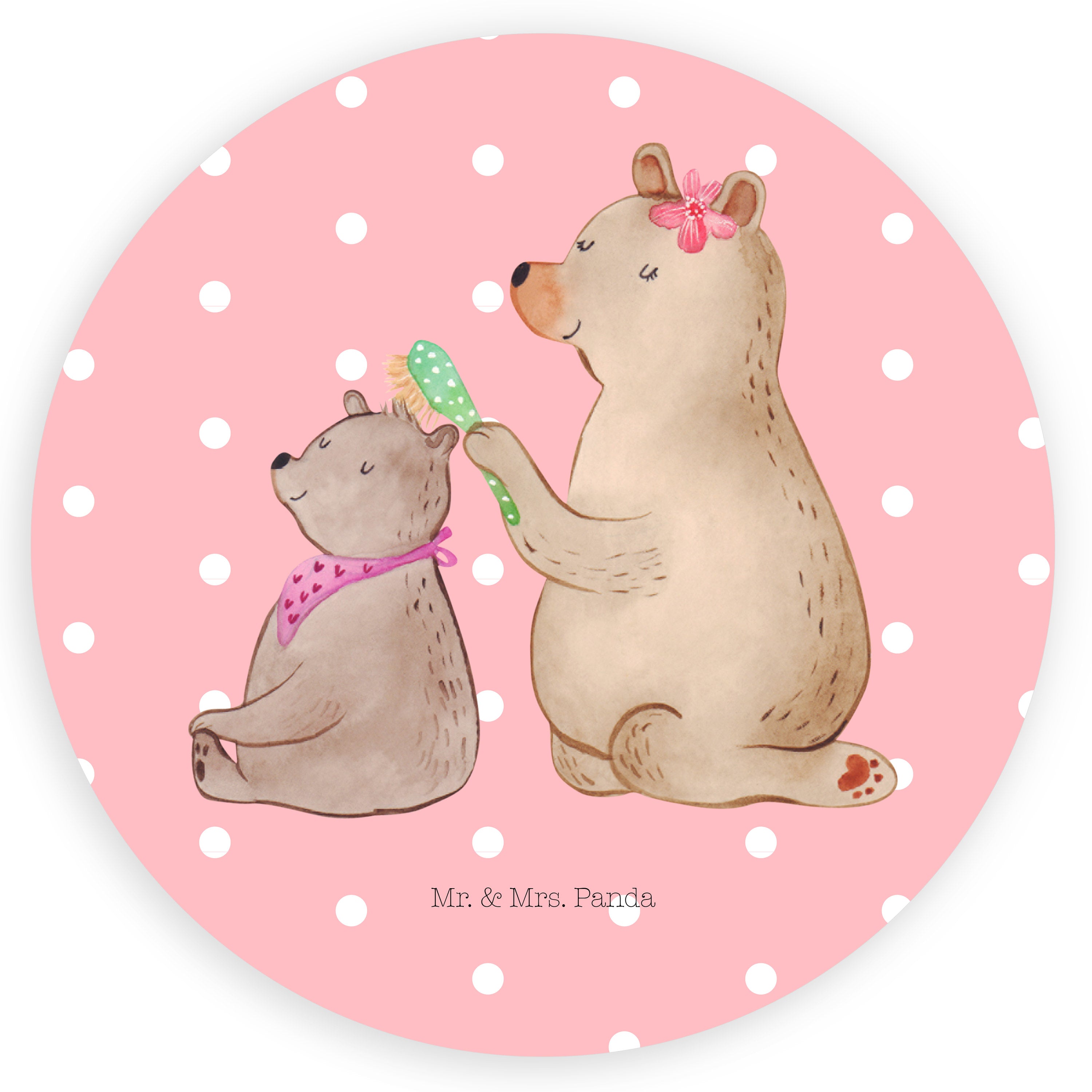 40mm Rund Aufkleber Bär mit Kind - Rot Pastell