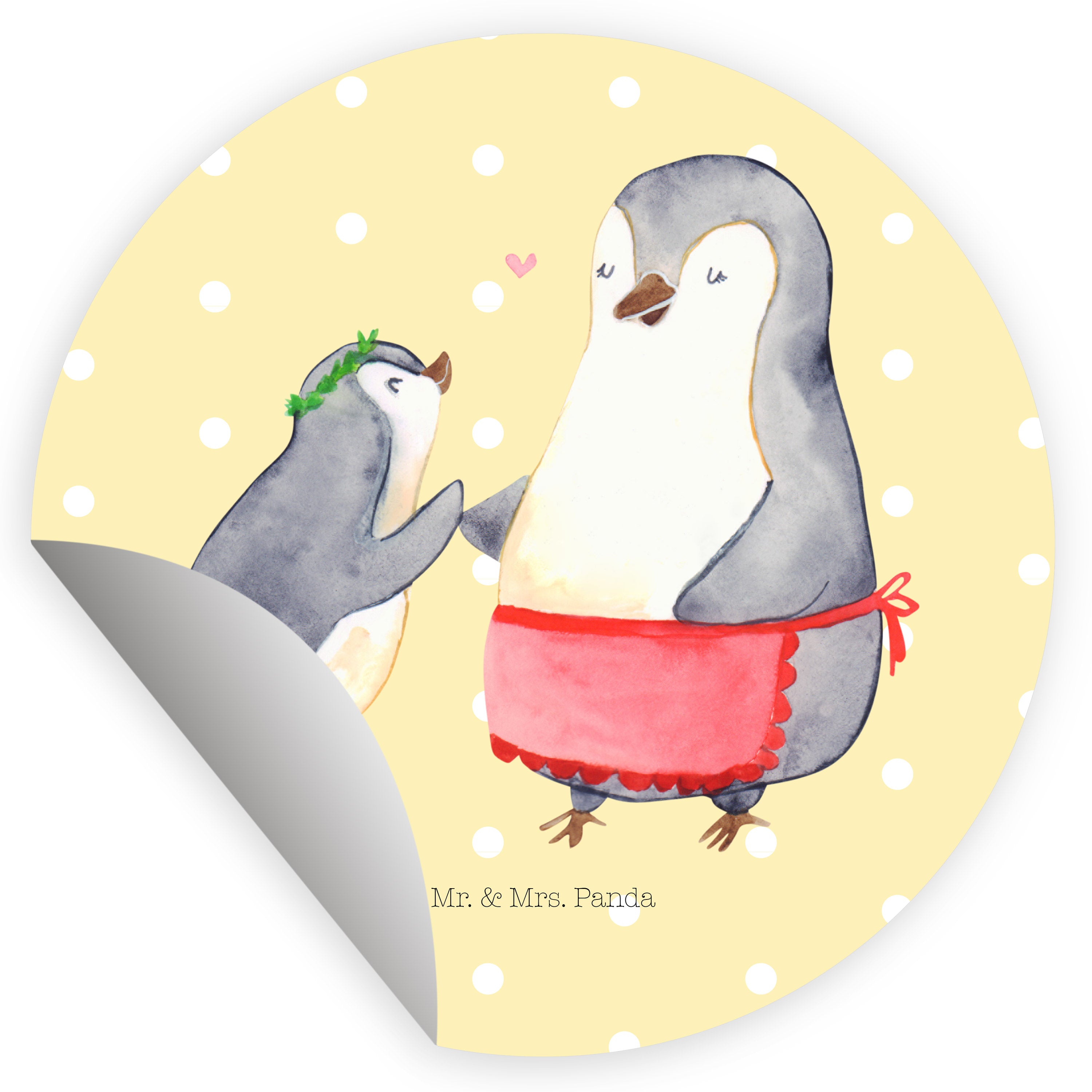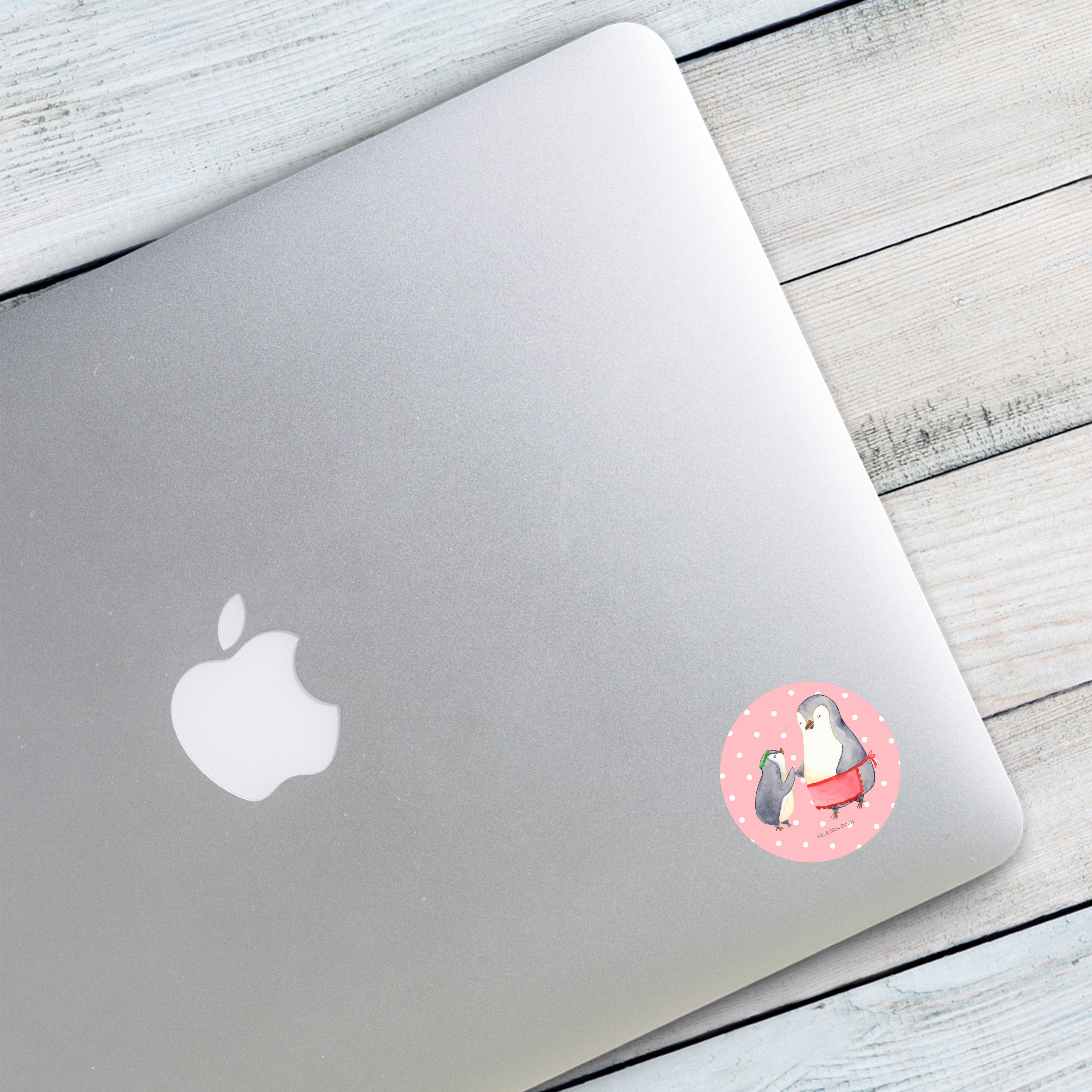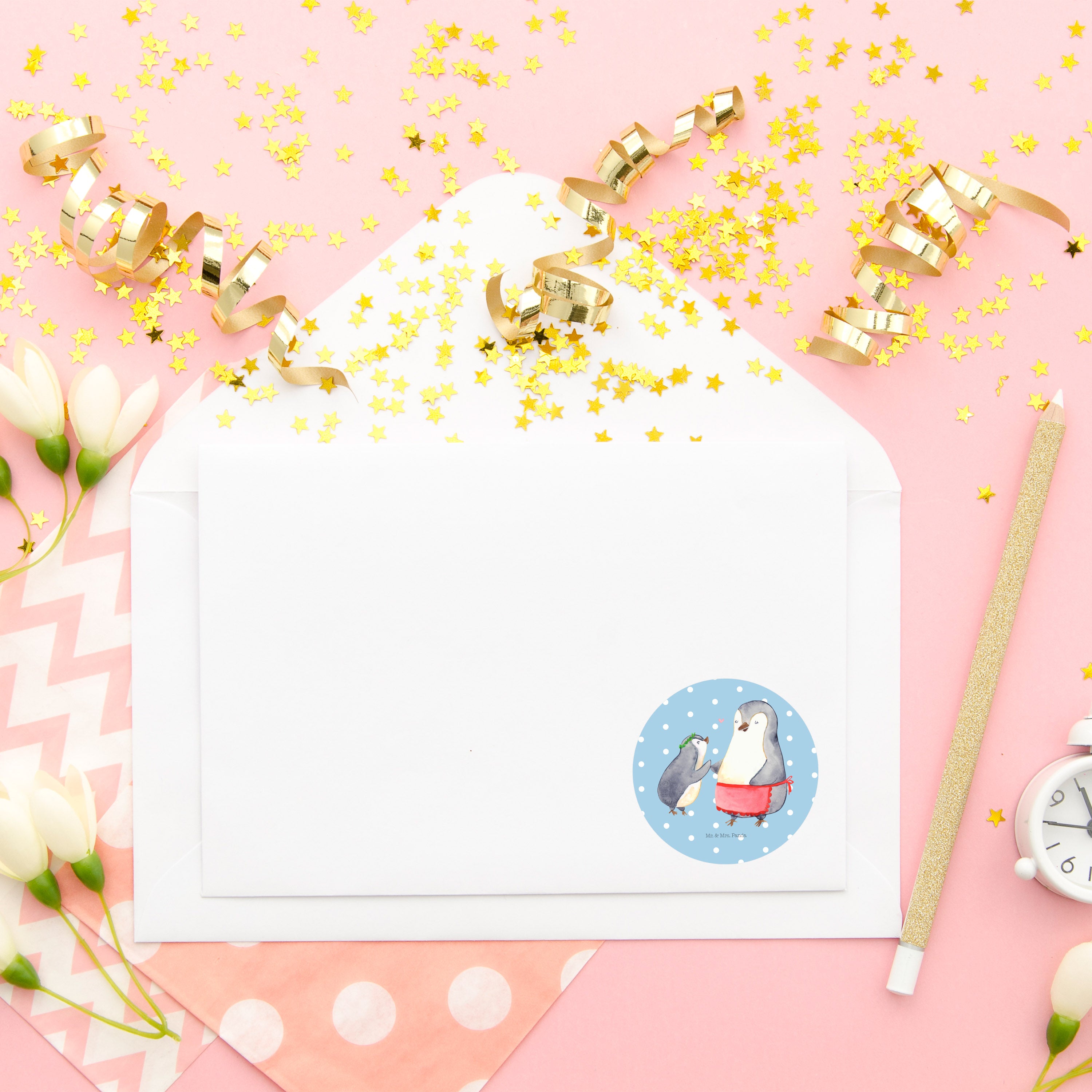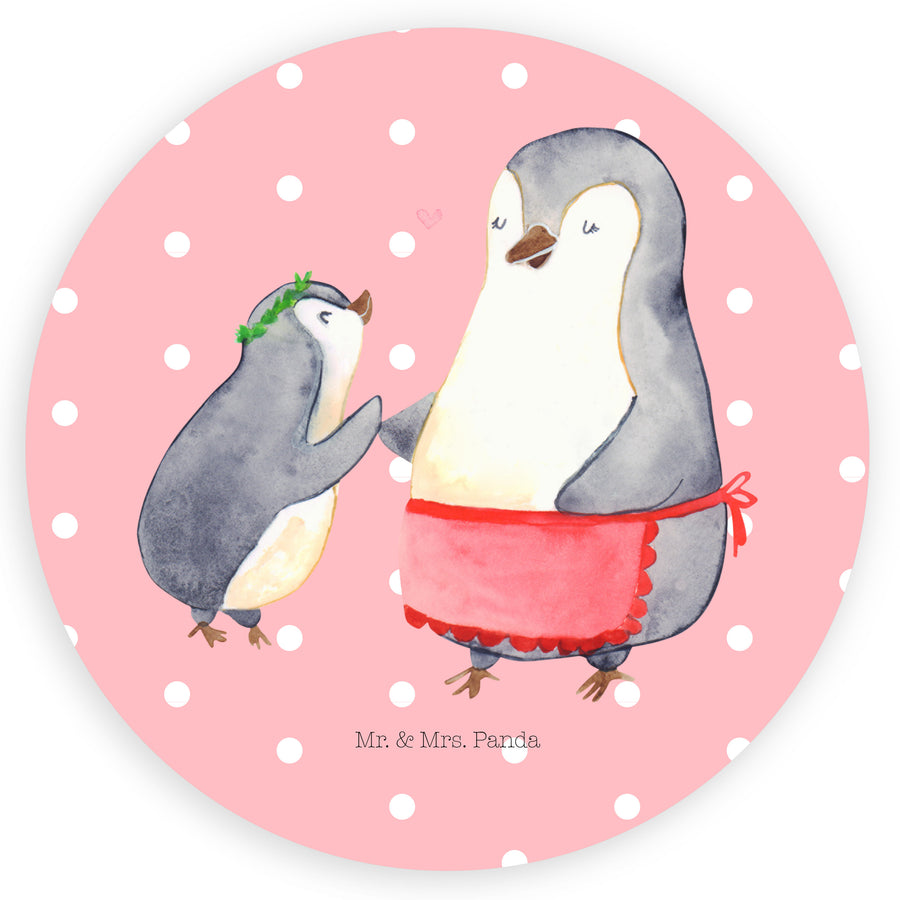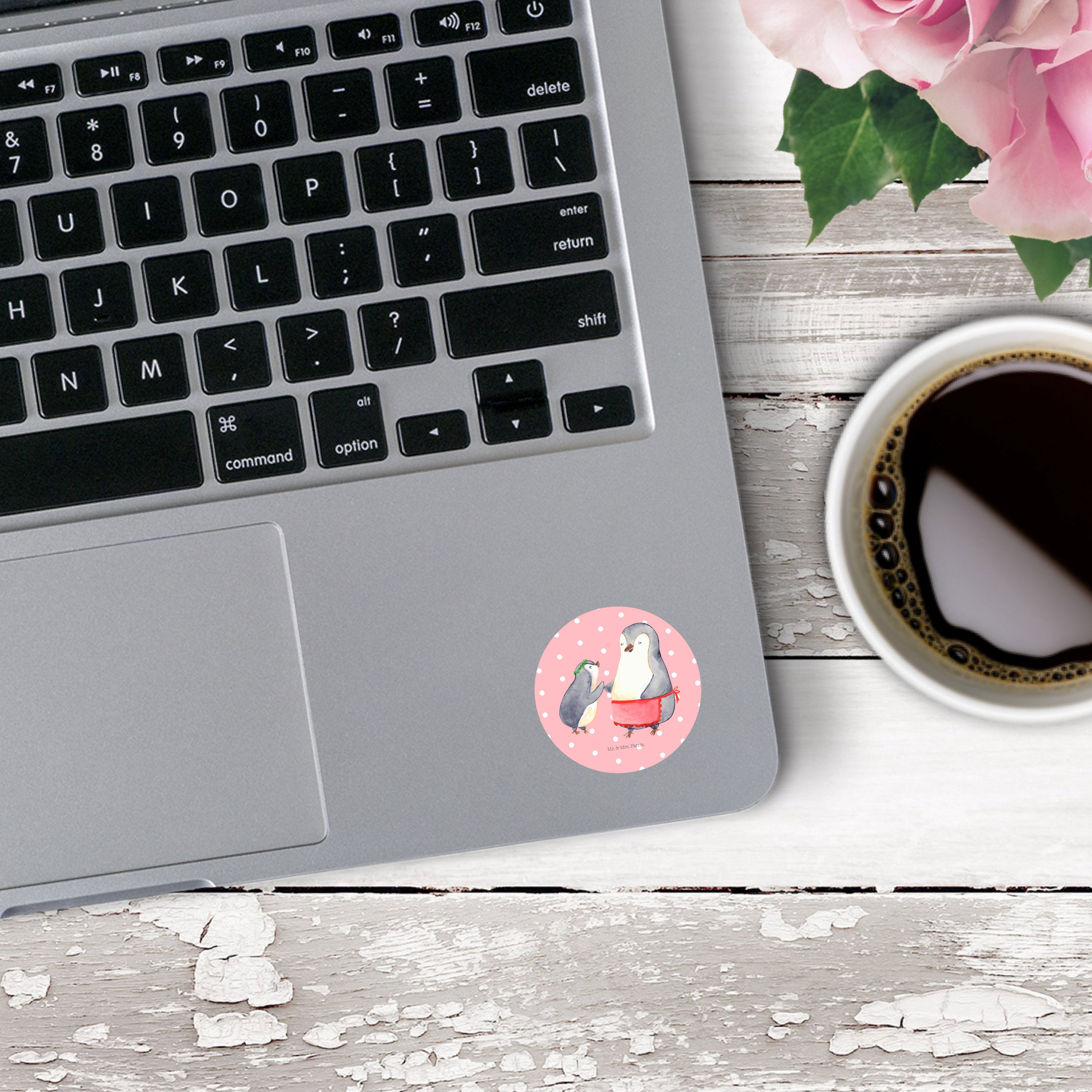 40mm Rund Aufkleber Pinguin mit Kind - Rot Pastell
