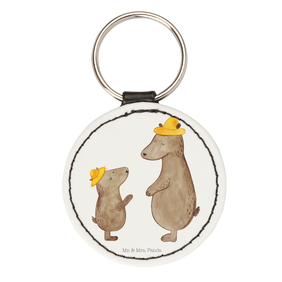 Rund Schlüsselanhänger Bären mit Hut - Weiß