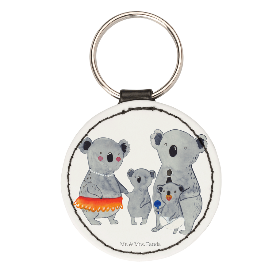 Rund Schlüsselanhänger Koala Familie - Weiß