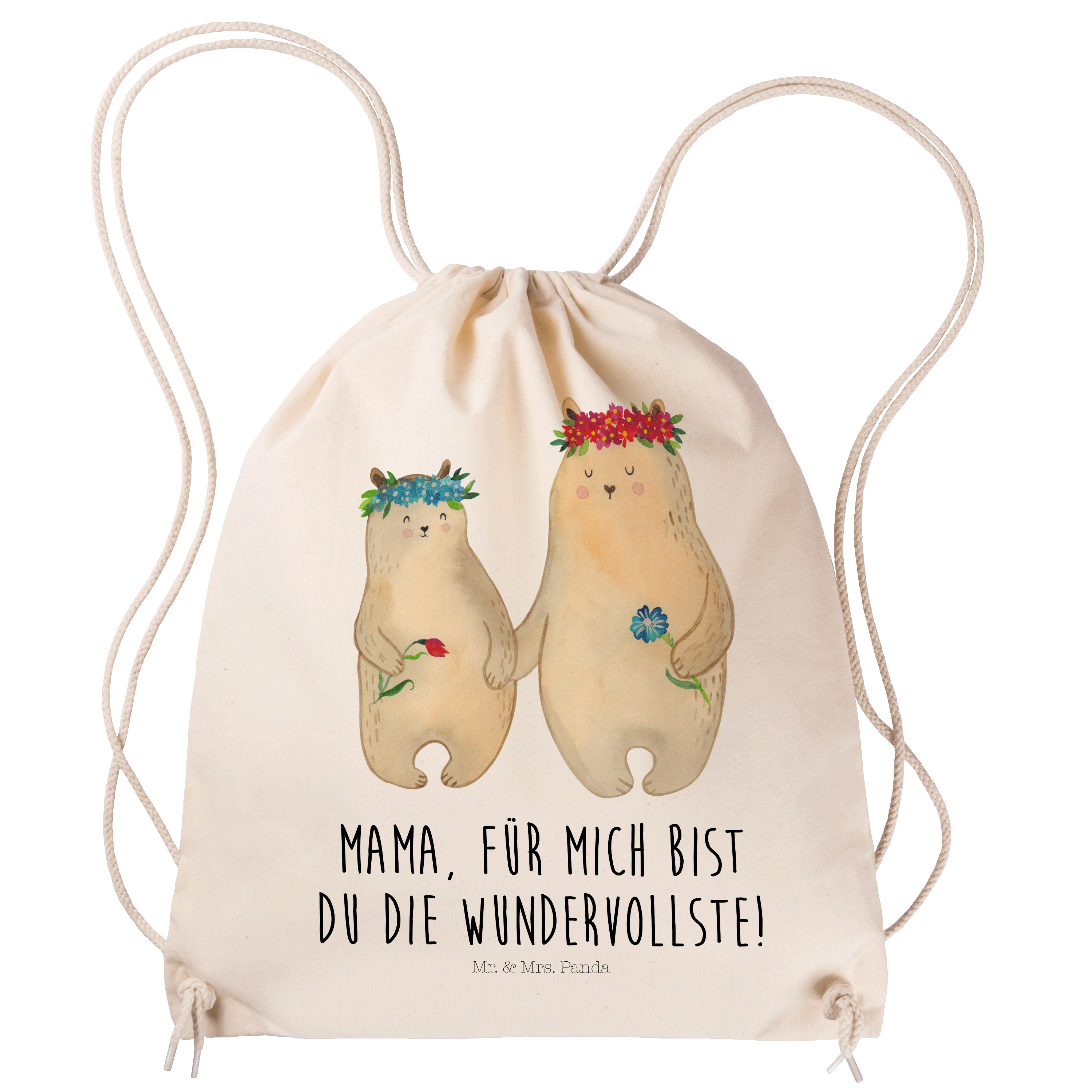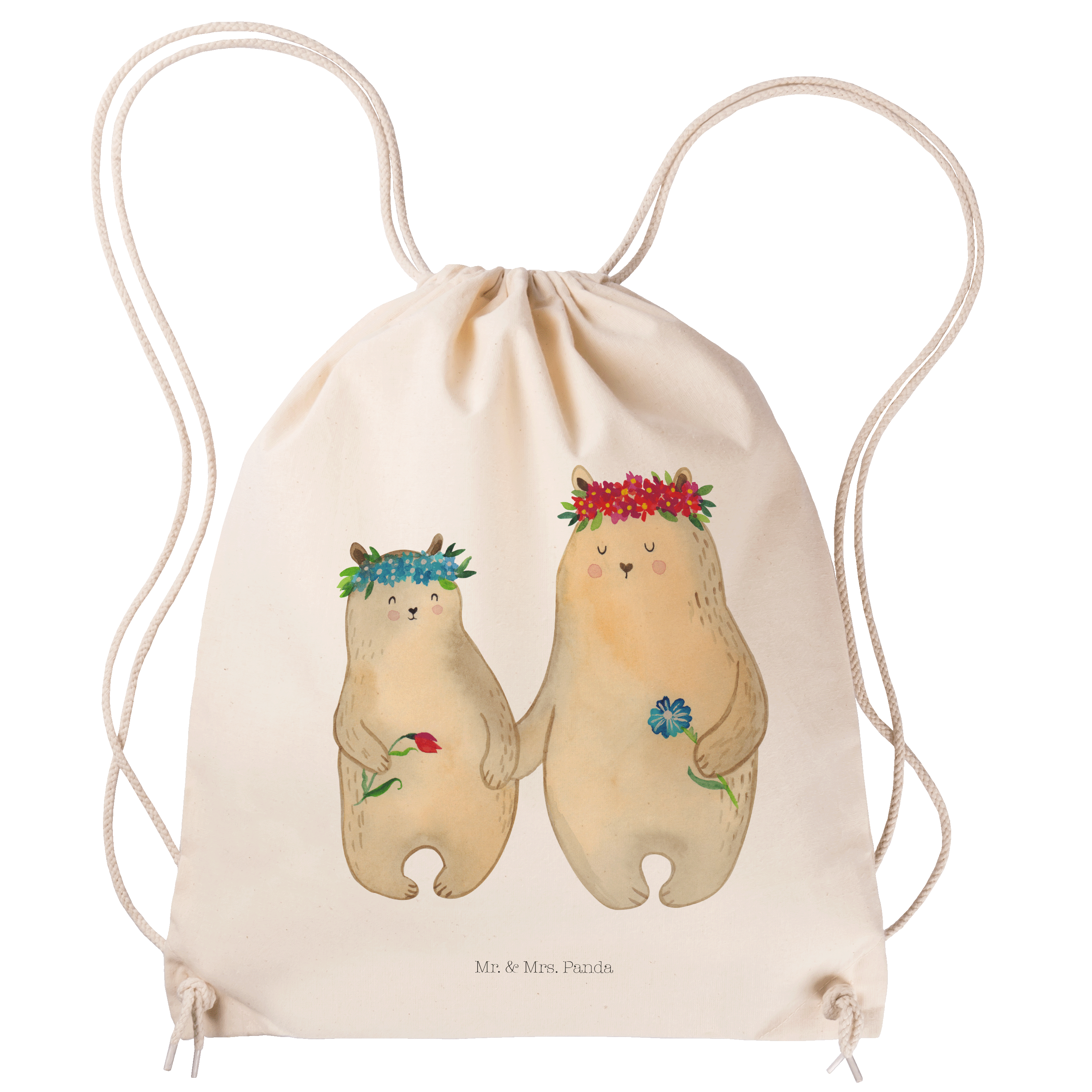 Sportbeutel Bären mit Blumenkranz - mit Spruch - Schwarz