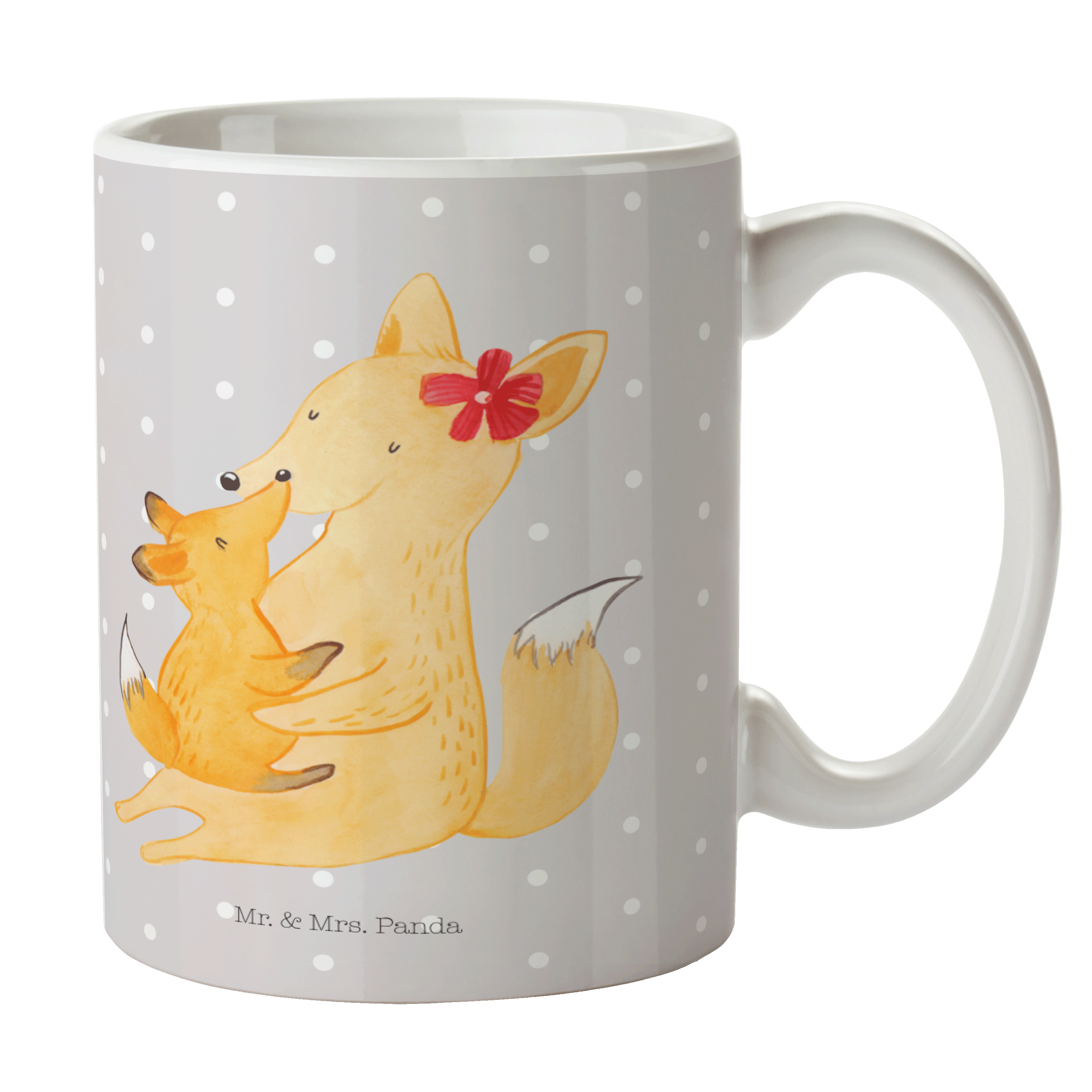 Tasse Fuchs Mama & Kind - mit Spruch - Grau Pastell