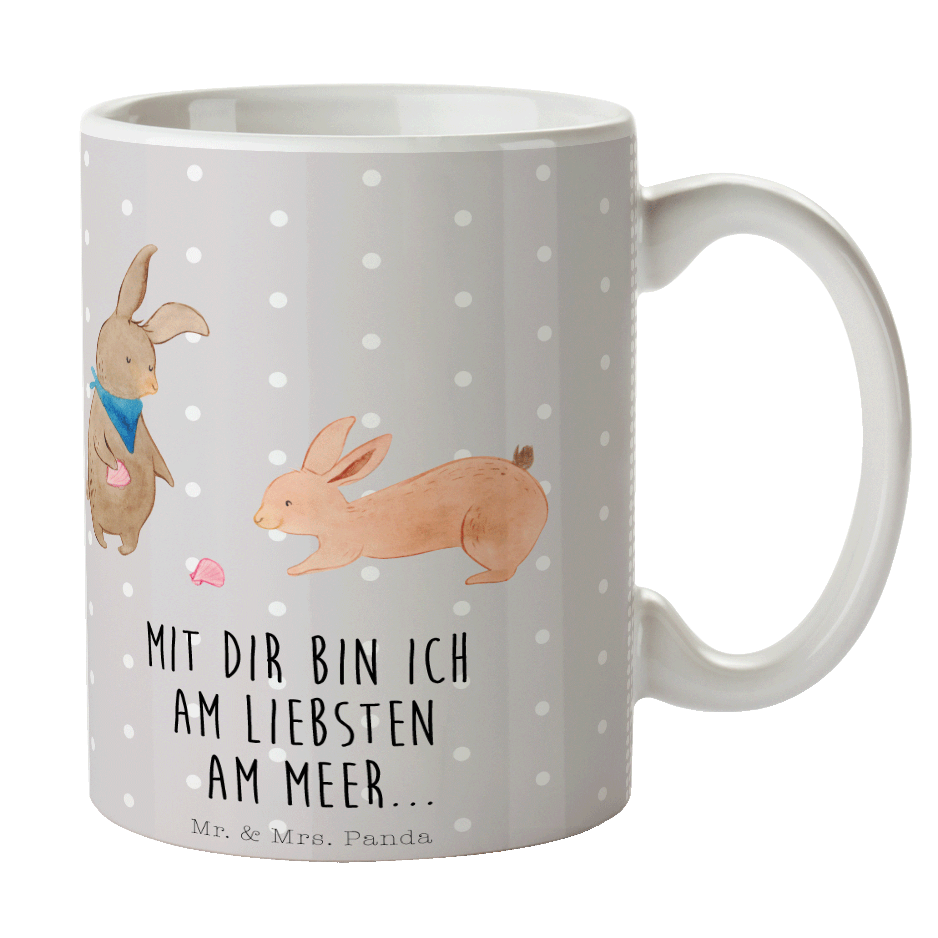 Tasse Hasen Muschel - mit Spruch - Grau Pastell