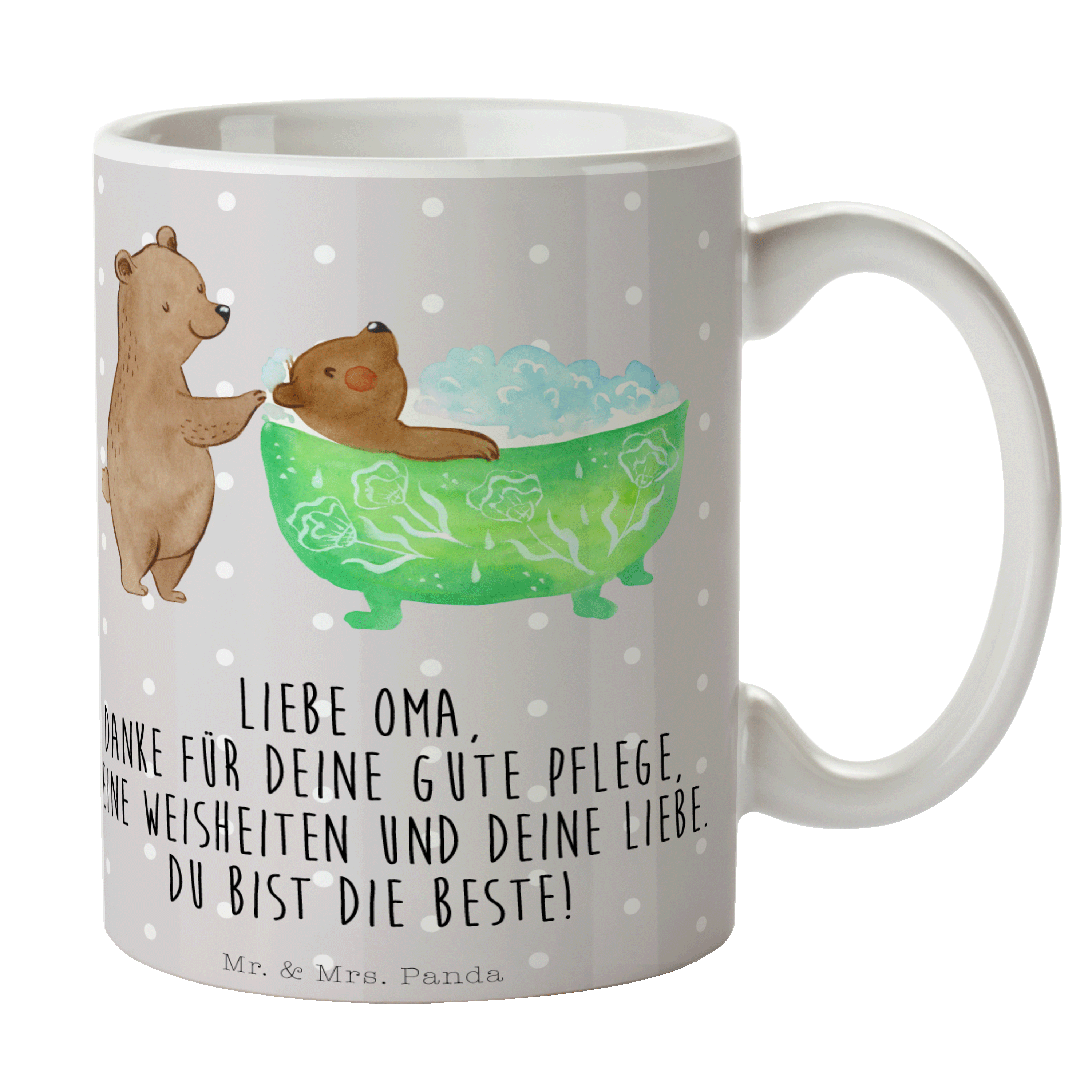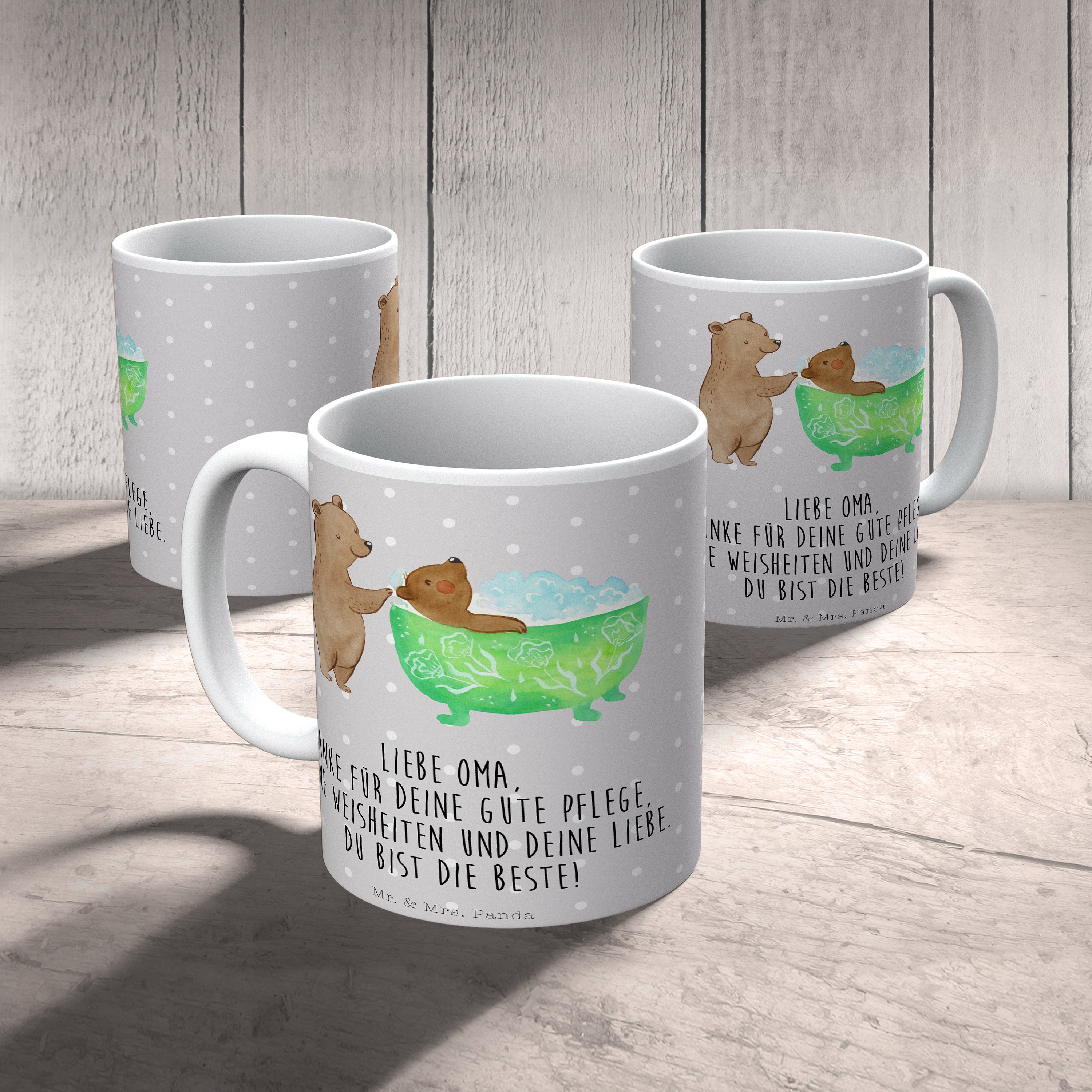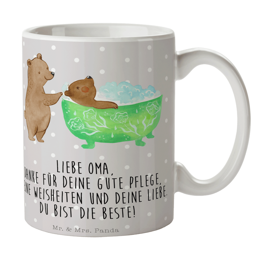 Tasse Oma badet - Grau Pastell