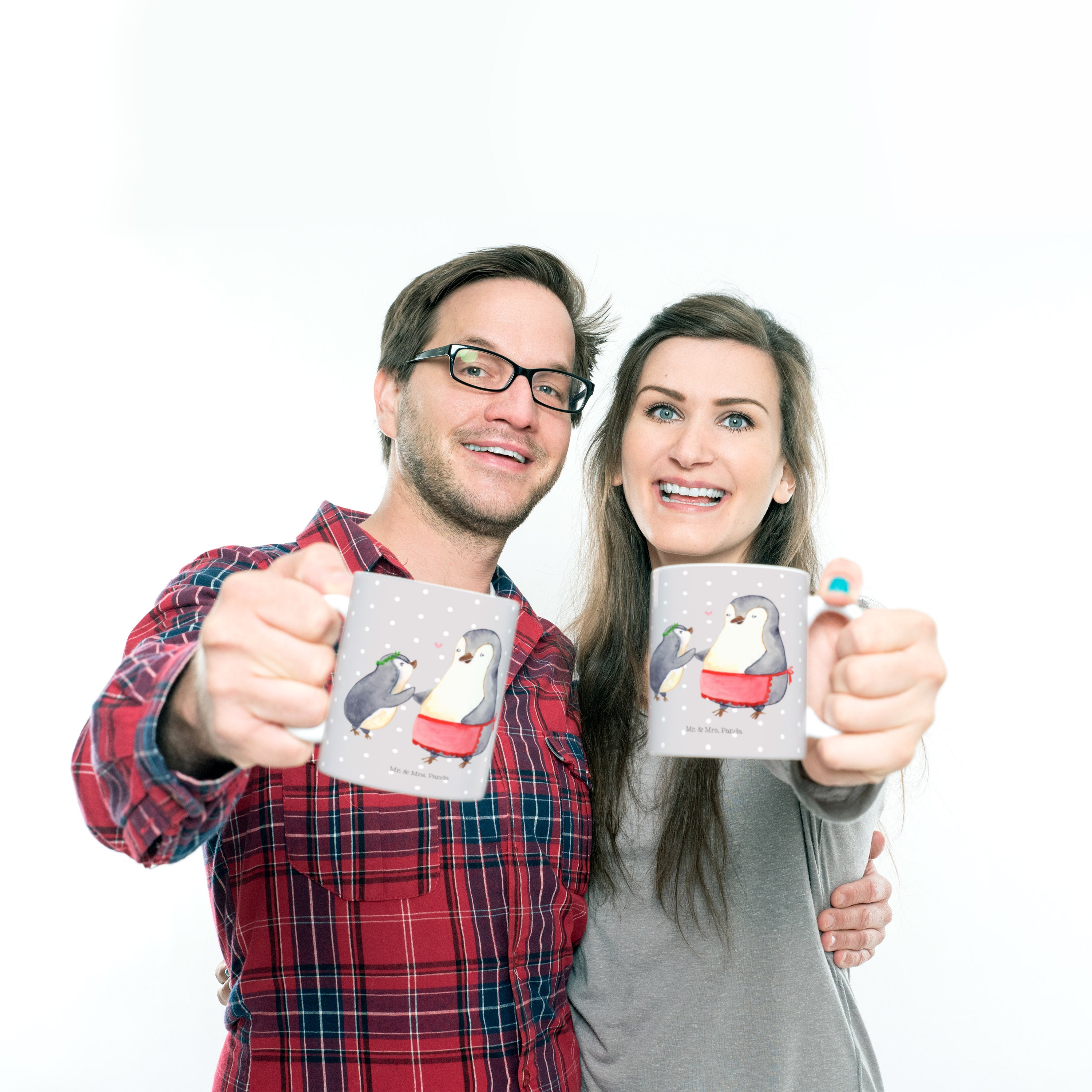 Tasse Pinguin mit Kind - mit Spruch - Weiß