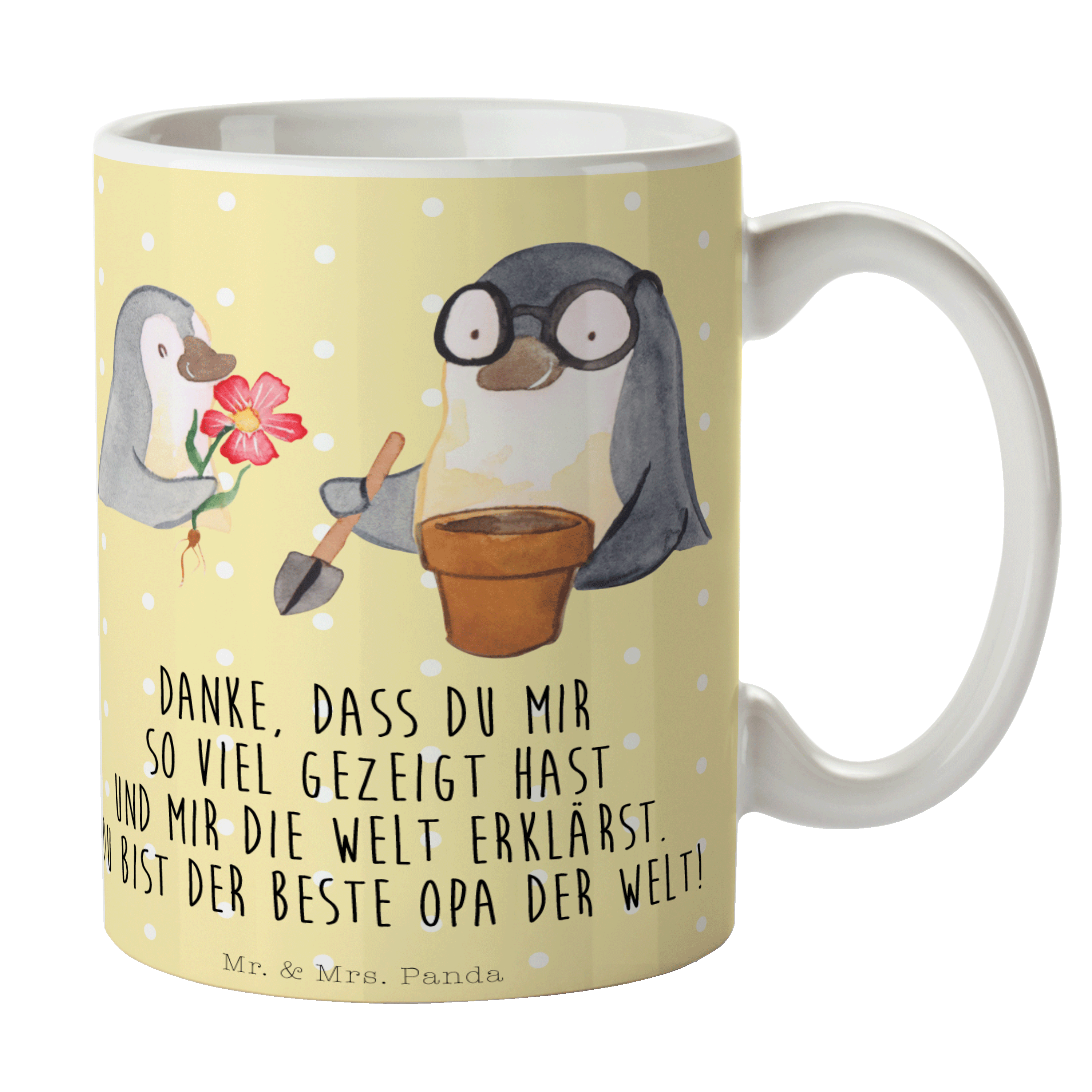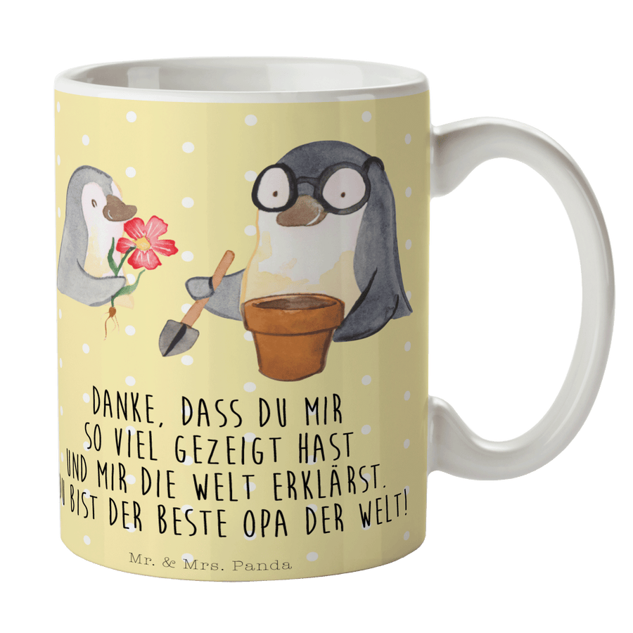 Tasse Pinguin Opa Blumen pflanzen - Gelb Pastell