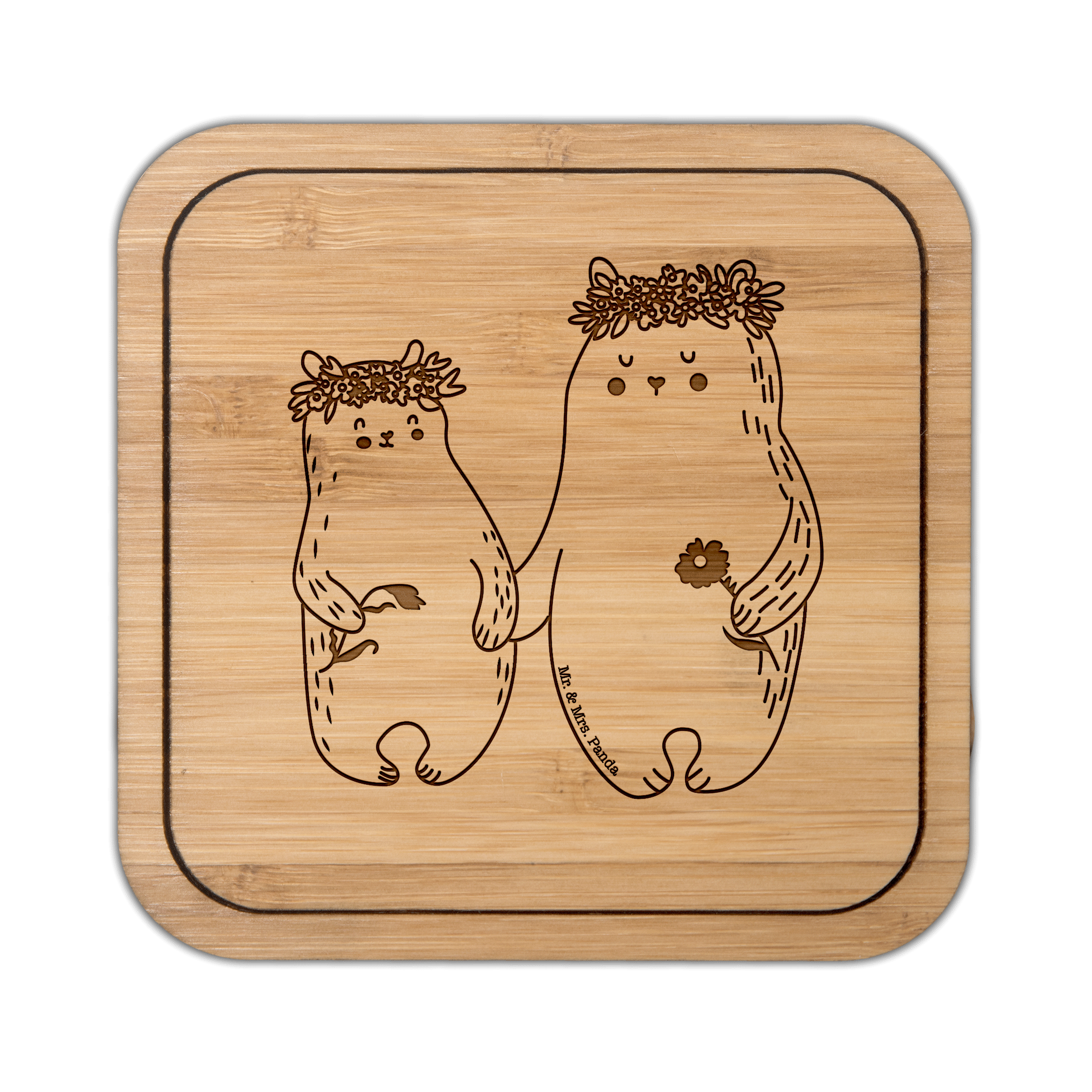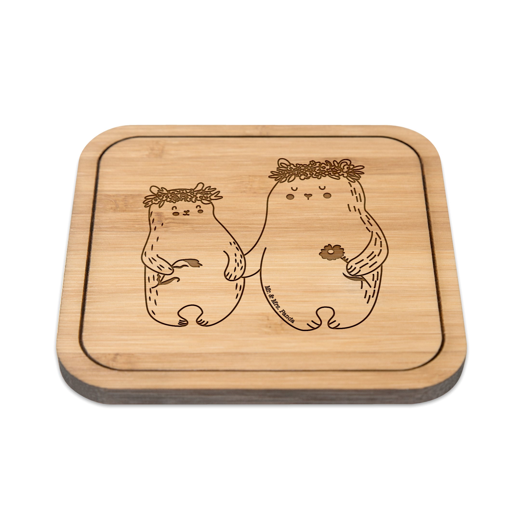 Untersetzer quadratisch Bären mit Blumenkranz - mit Spruch