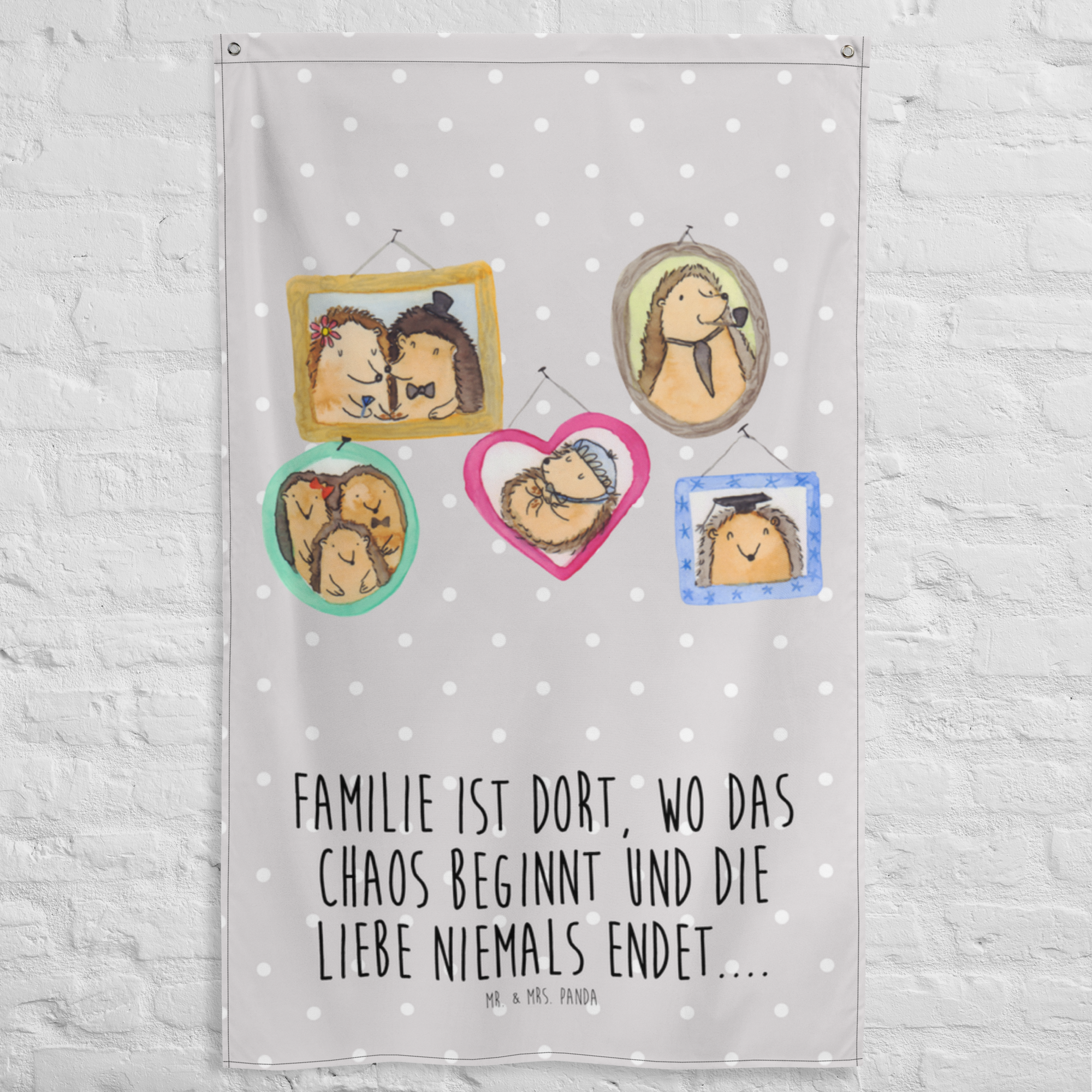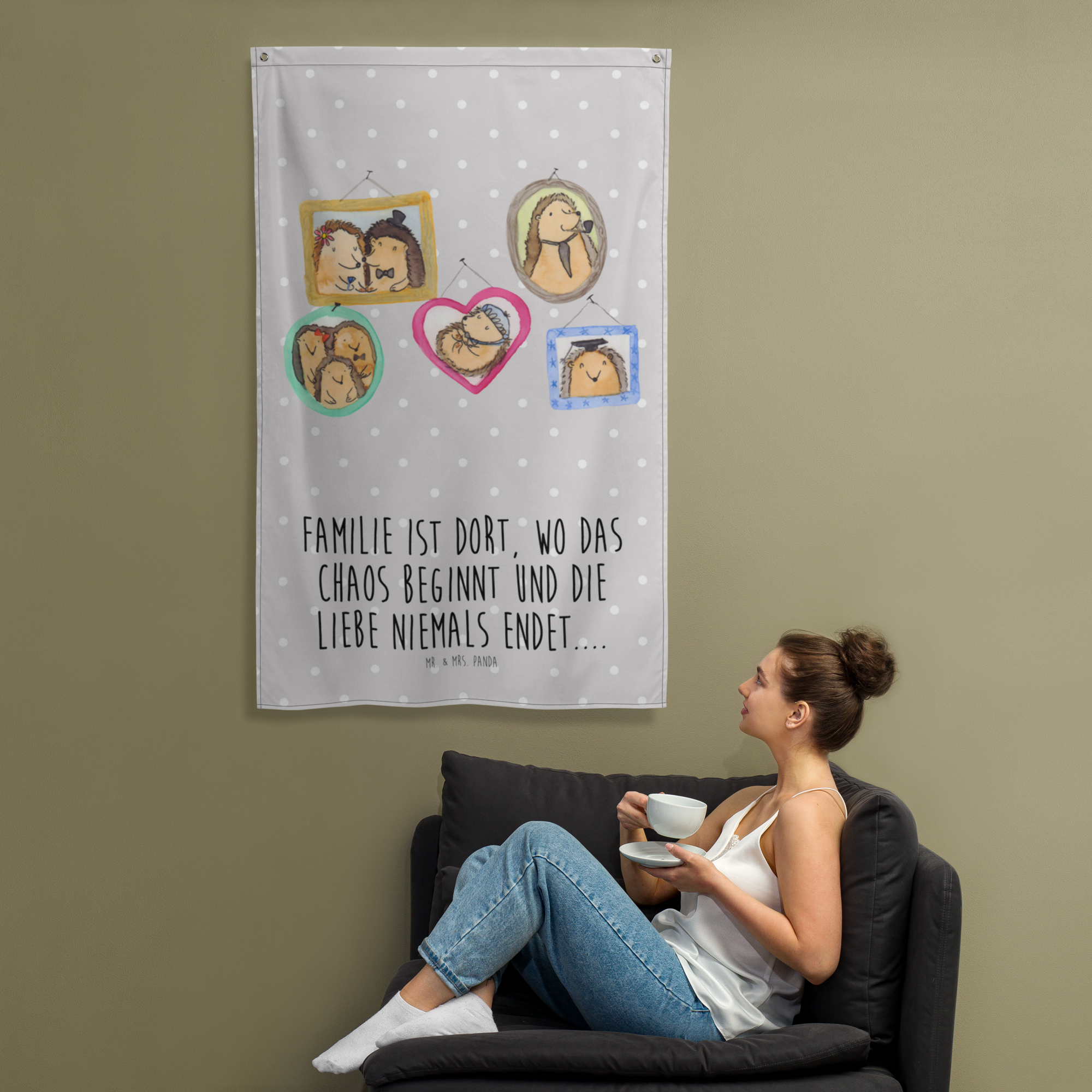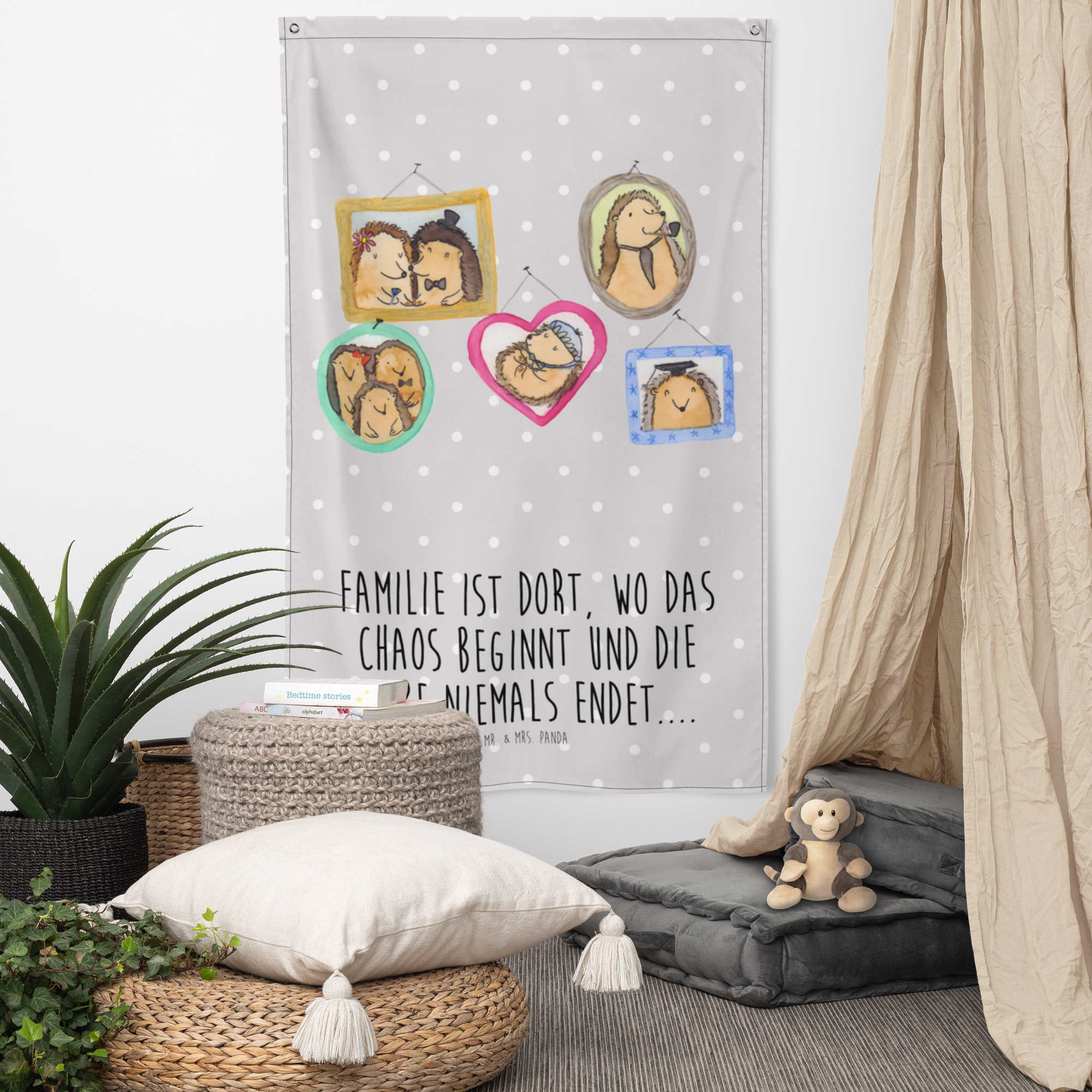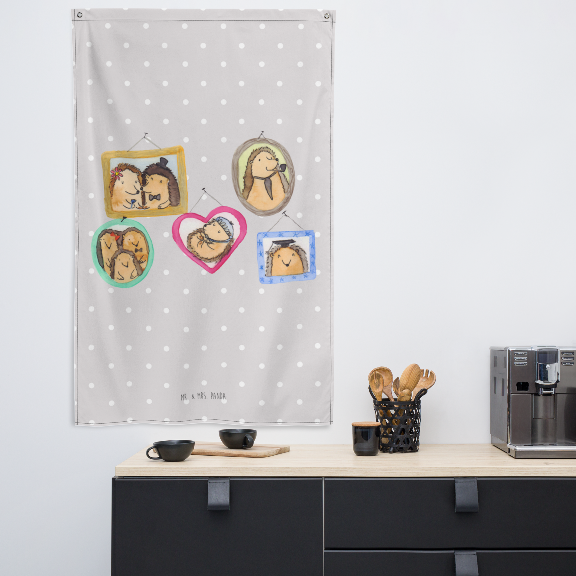 Wandteppich Igel Familie - mit Spruch - Grau Pastell