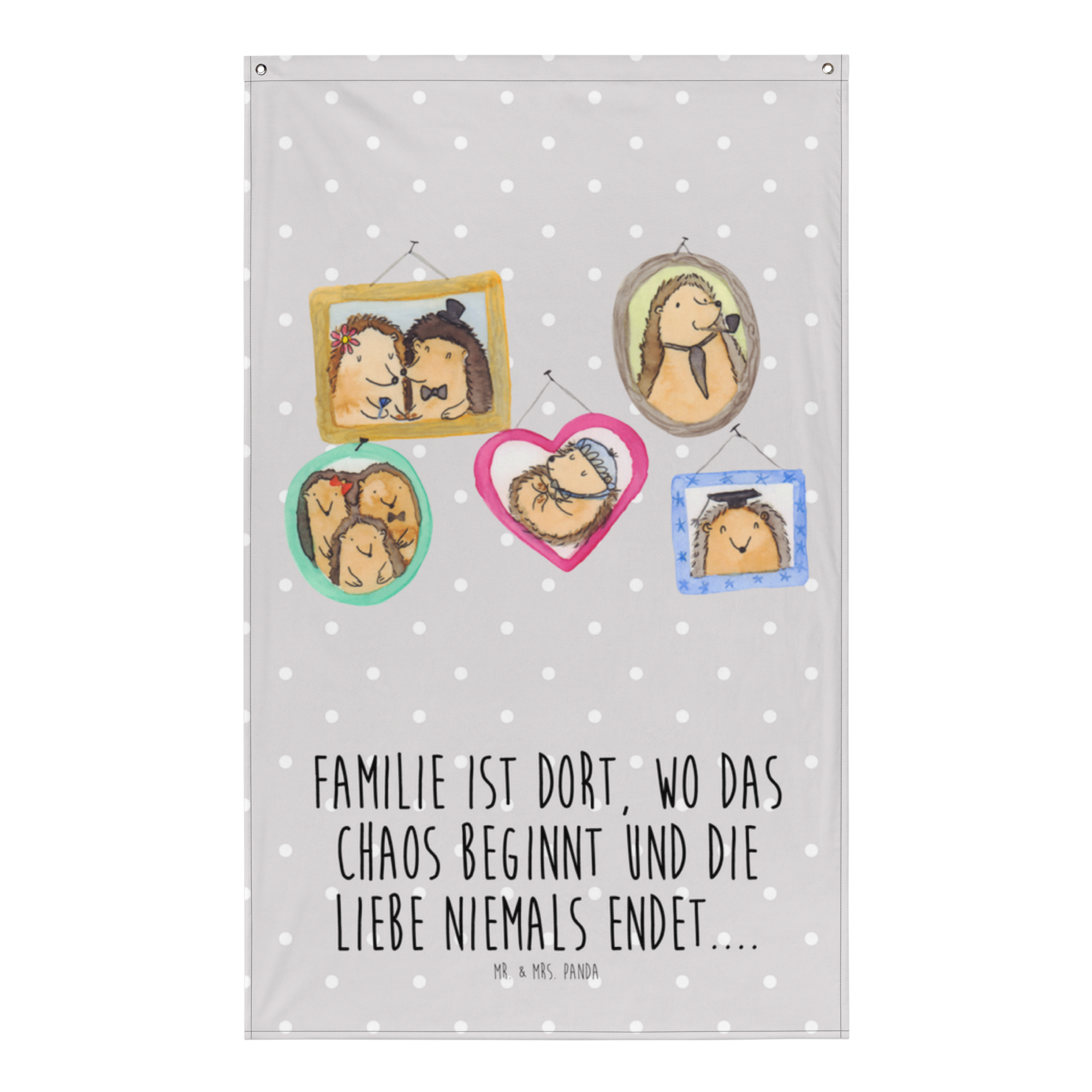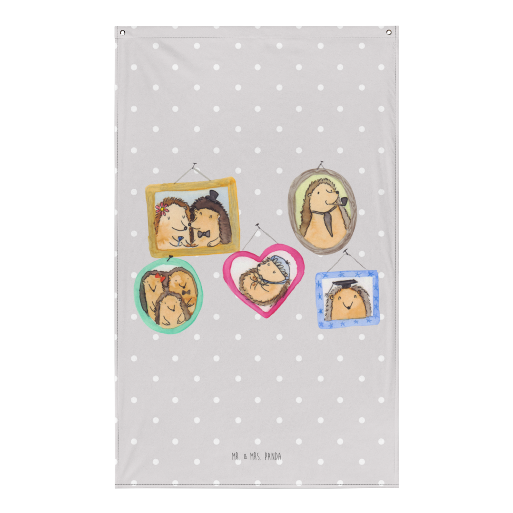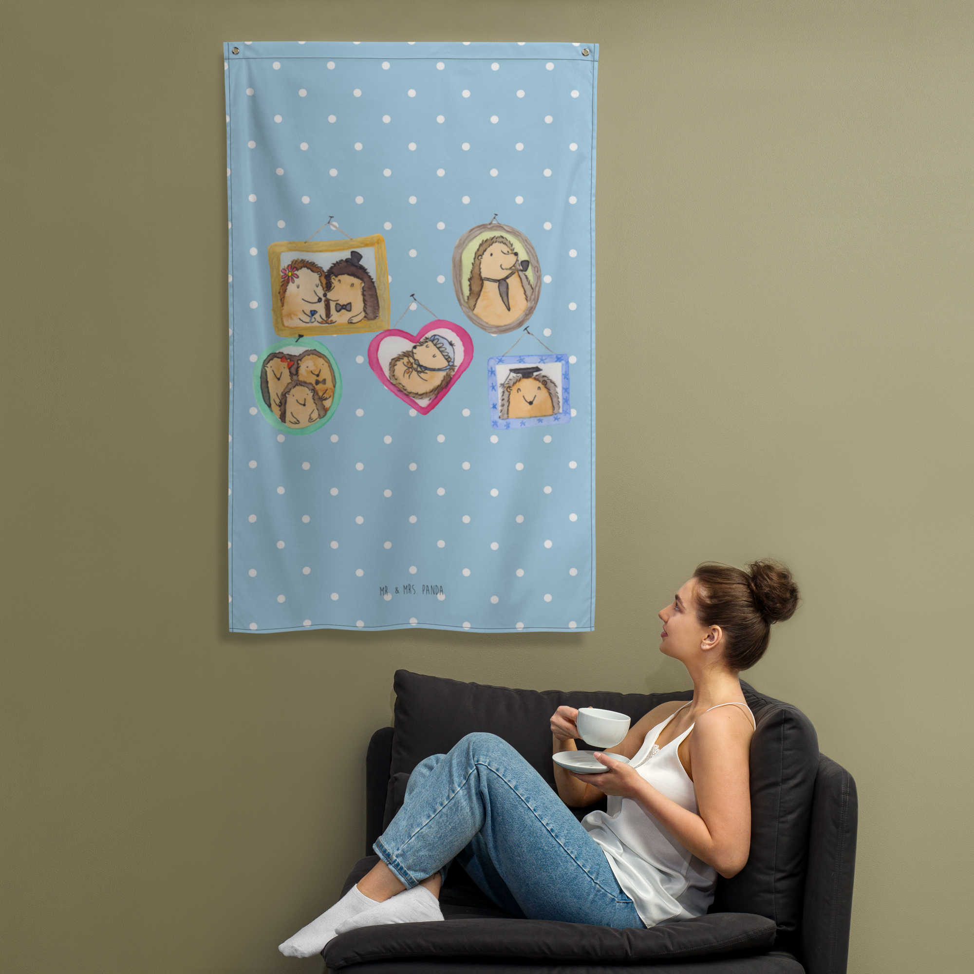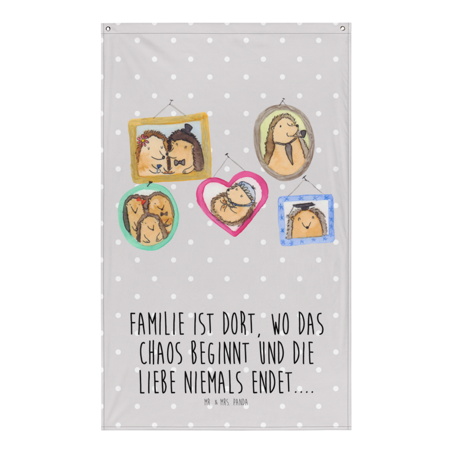 Wandteppich Igel Familie - mit Spruch - Grau Pastell