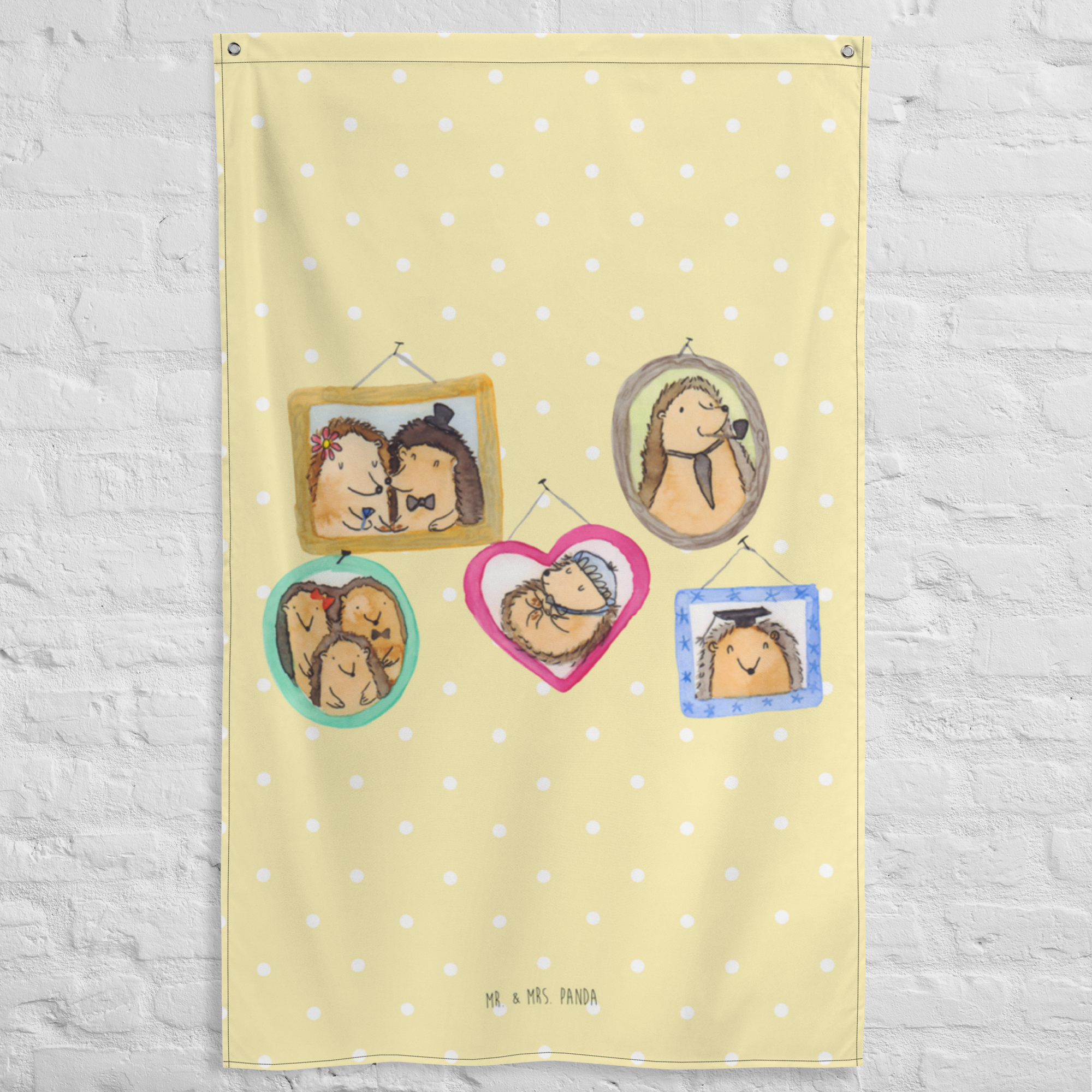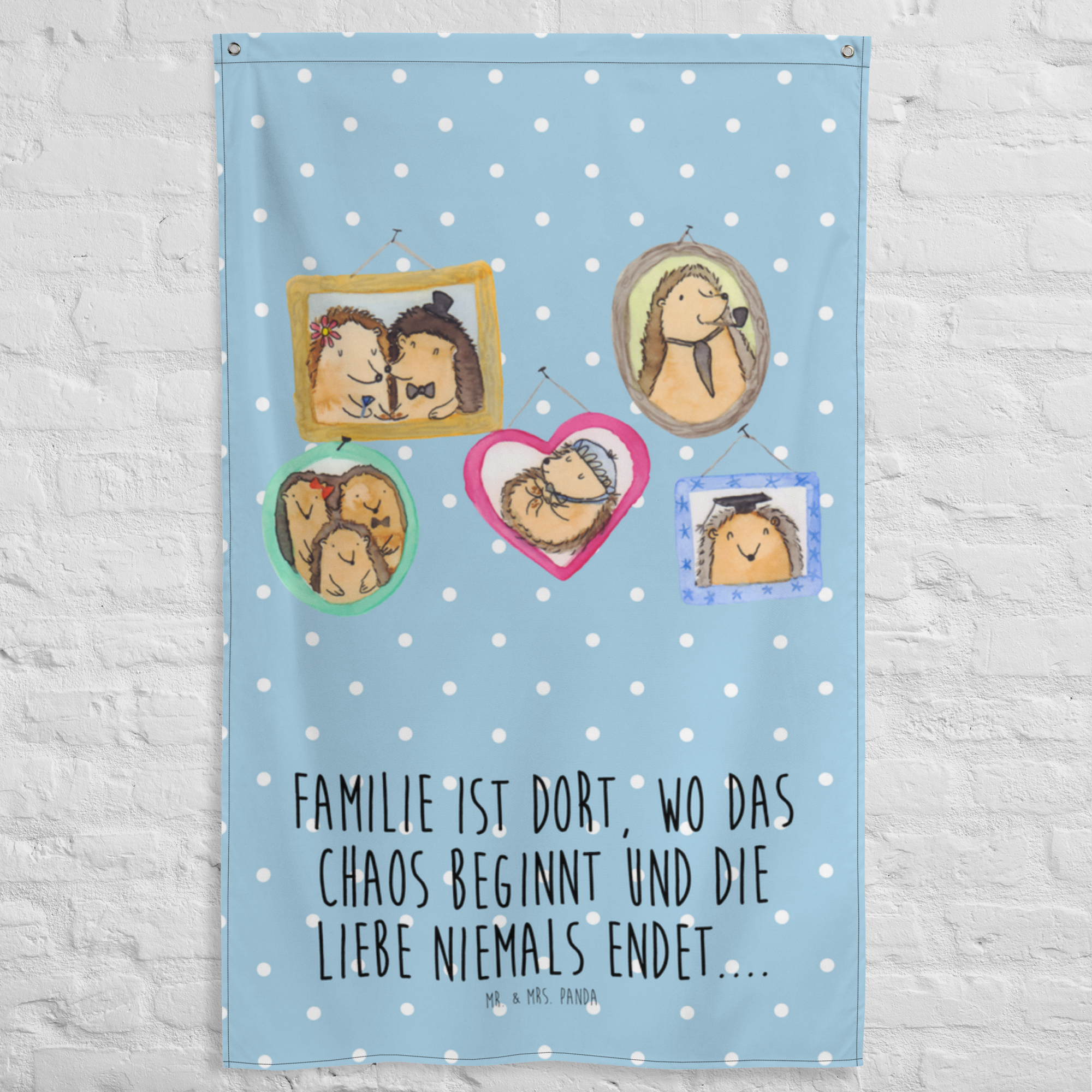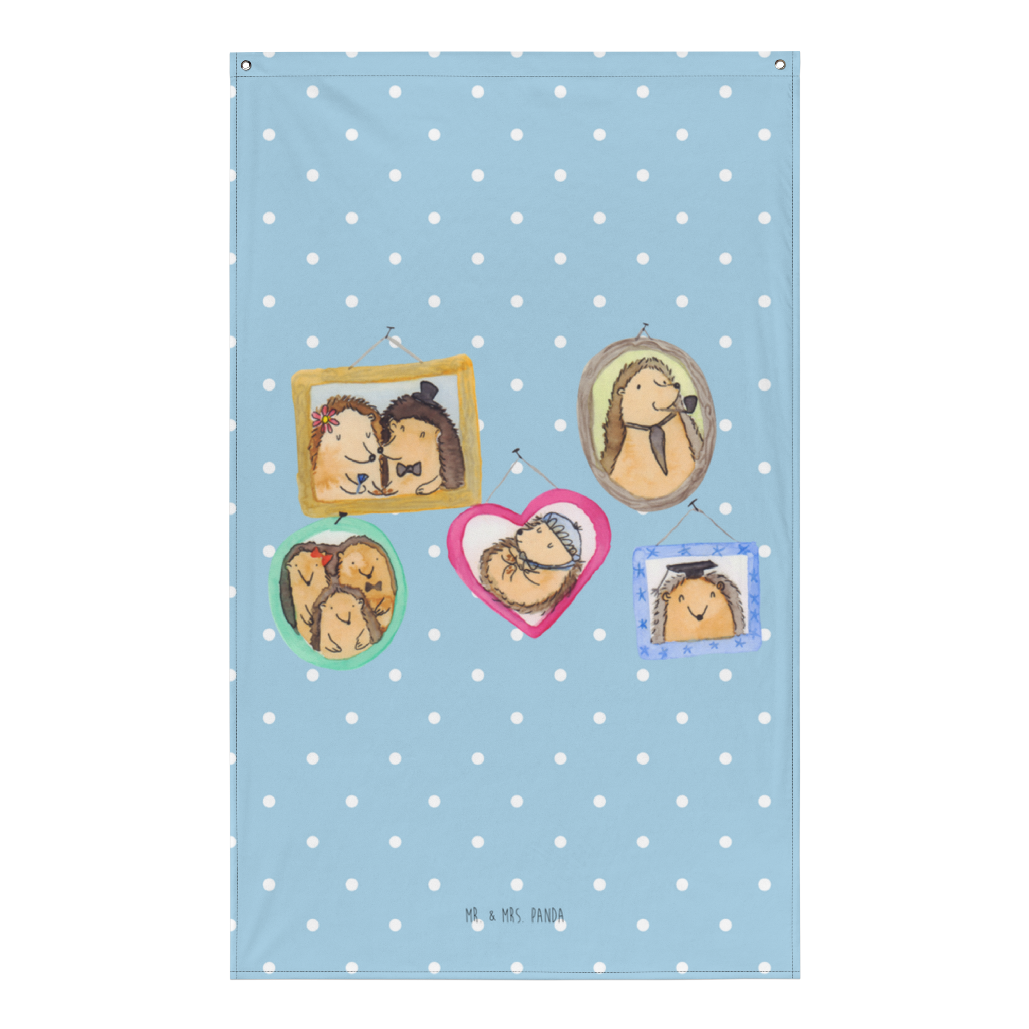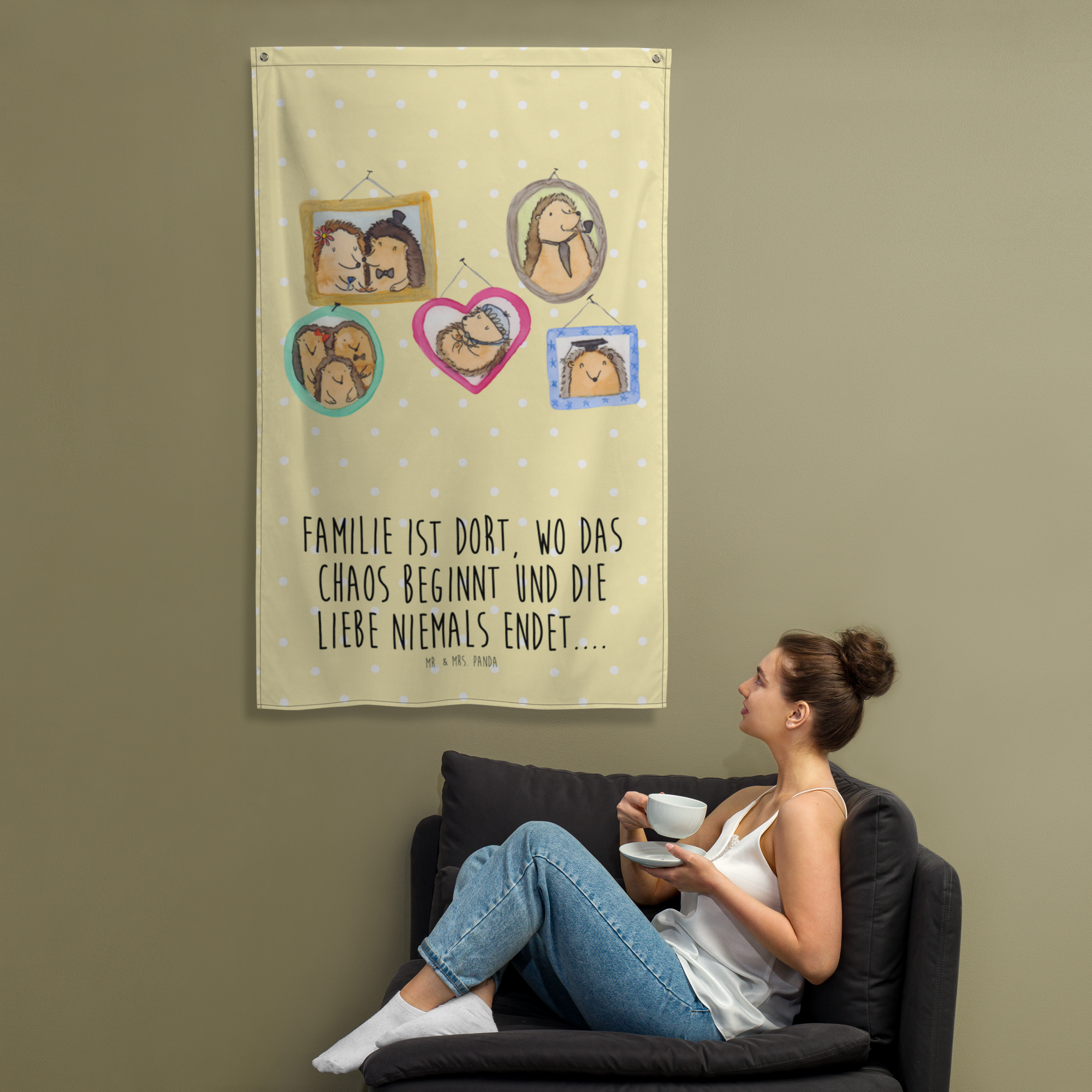 Wandteppich Igel Familie - mit Spruch - Grau Pastell