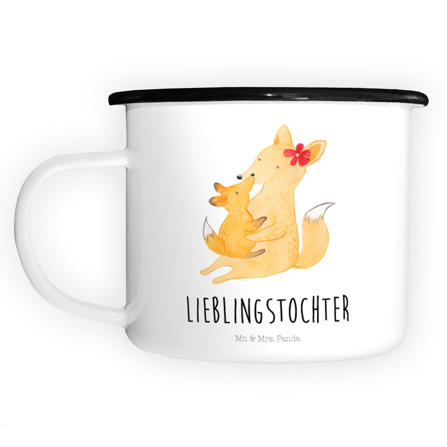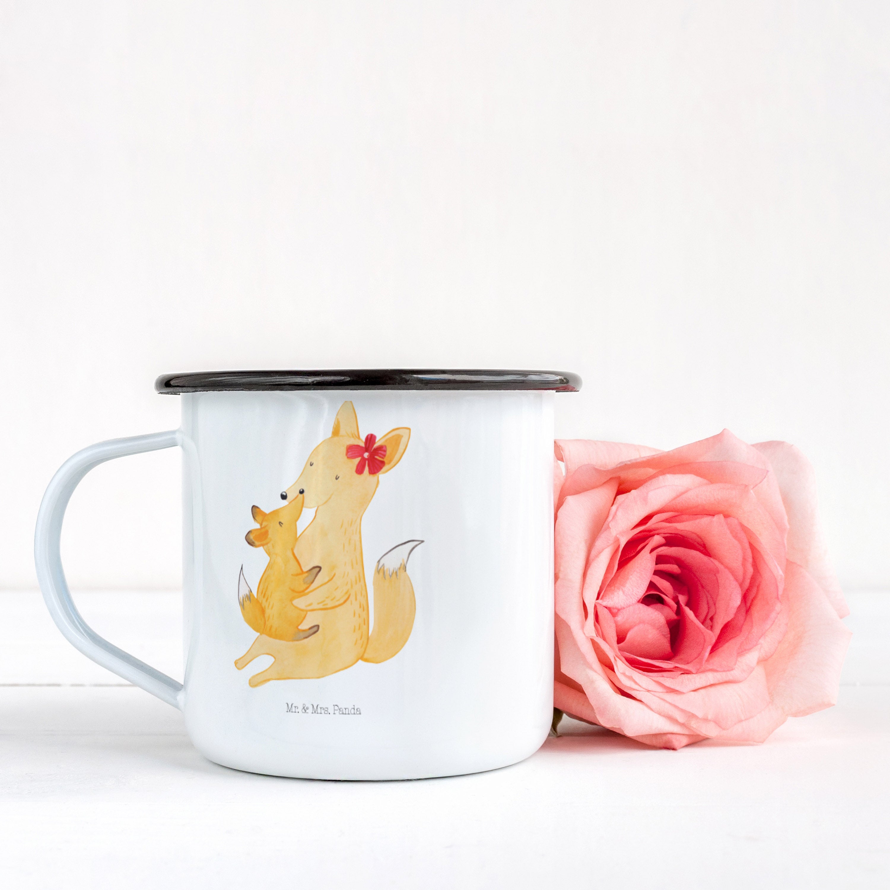 XL Emaille Tasse Fuchs Mama & Kind - mit Spruch - Weiß