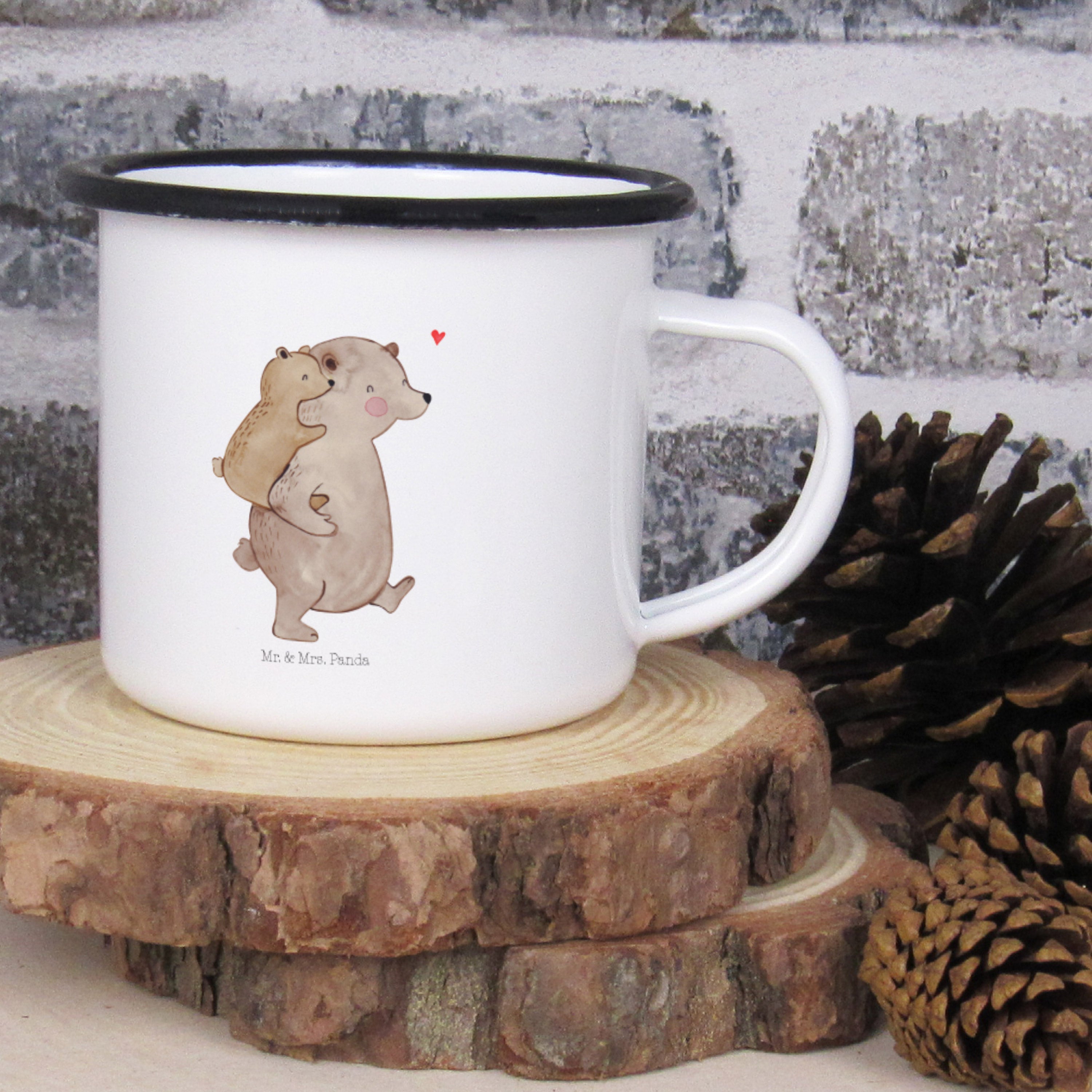 XL Emaille Tasse Papa Bär - mit Spruch - Weiß