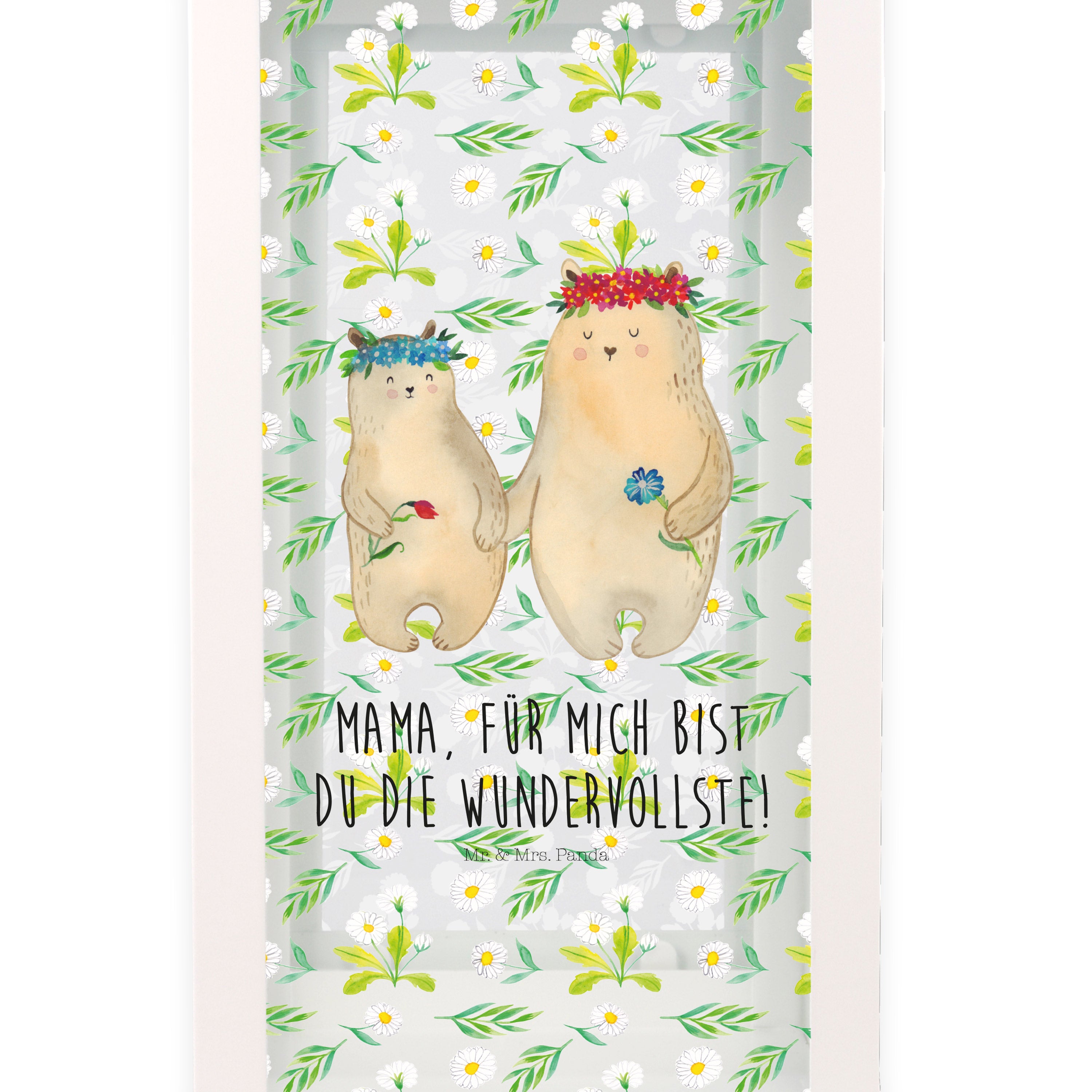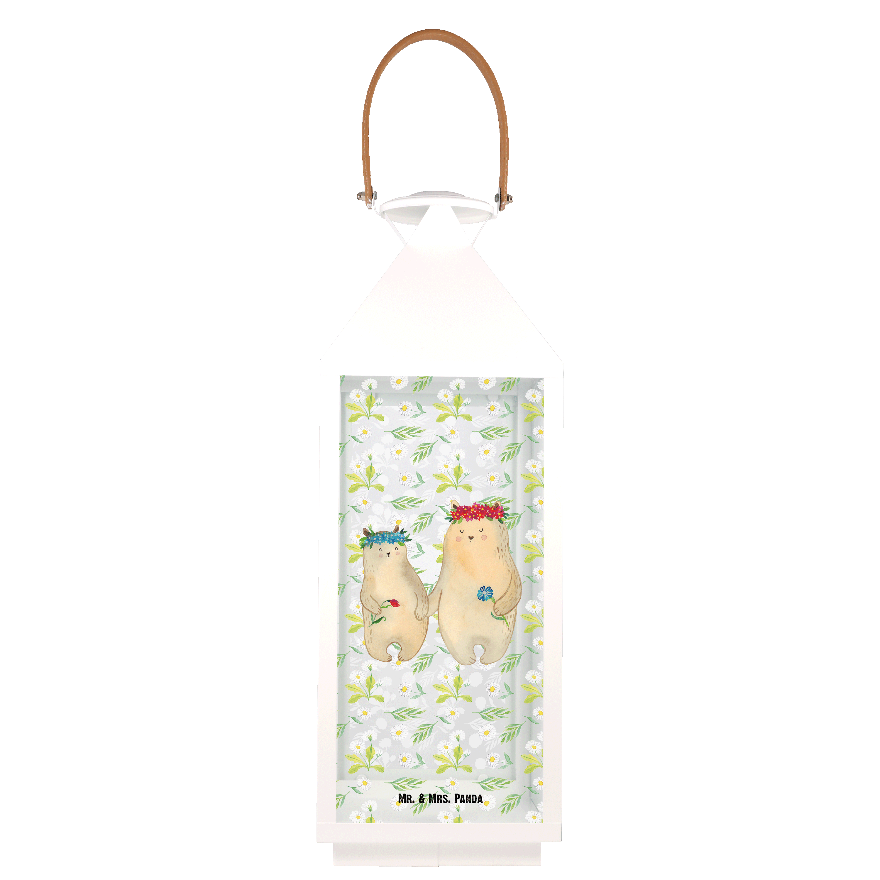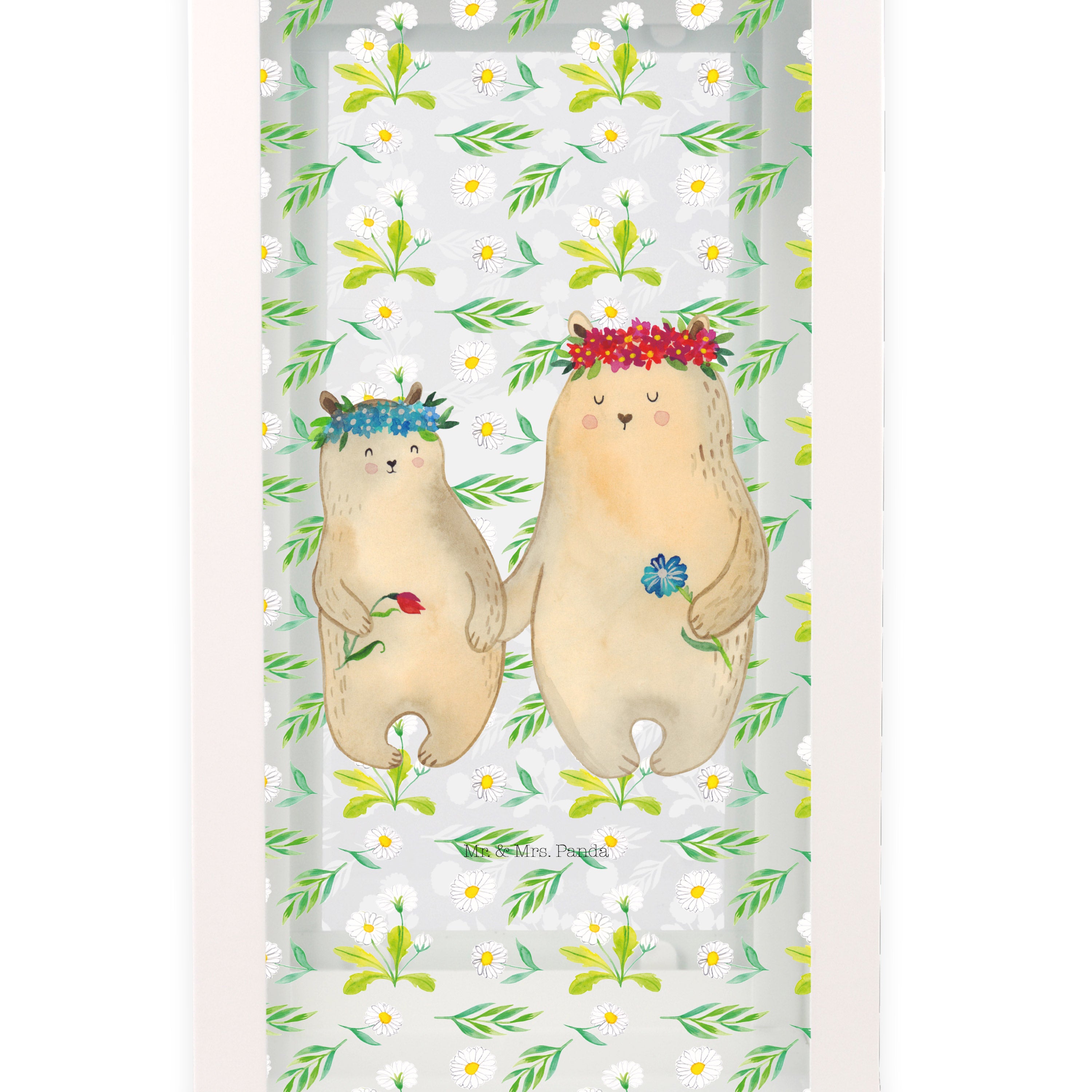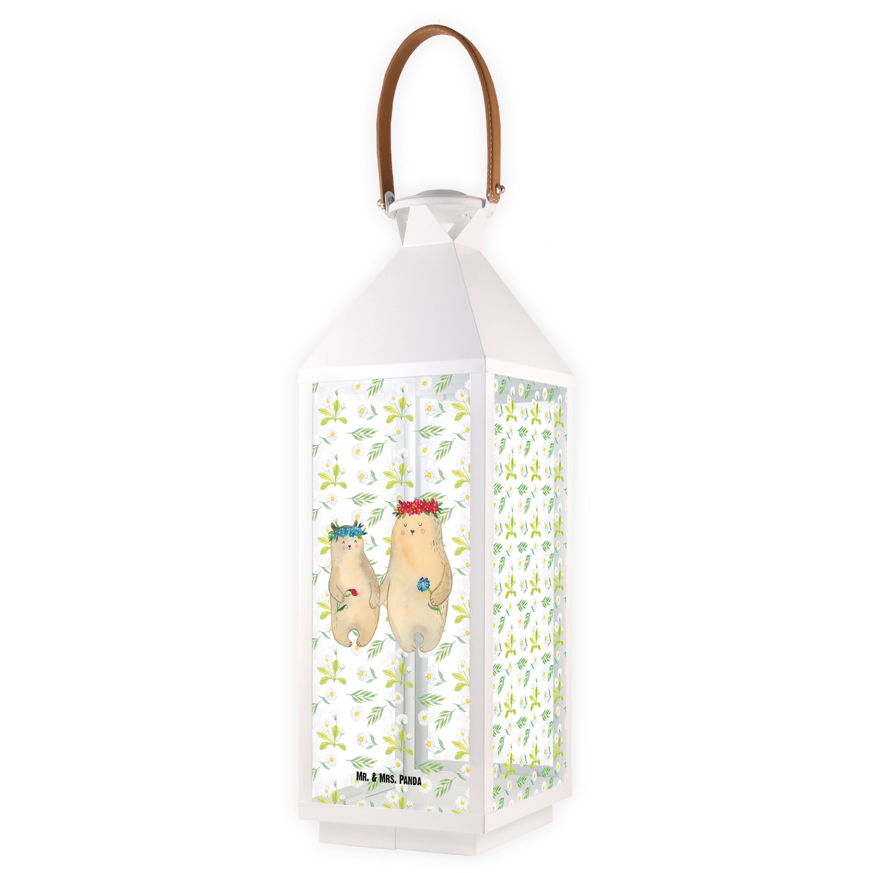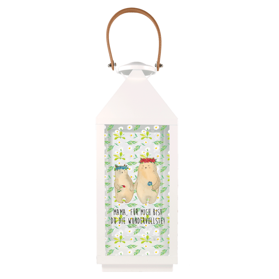 Deko Laterne Bären mit Blumenkranz - L - mit Spruch