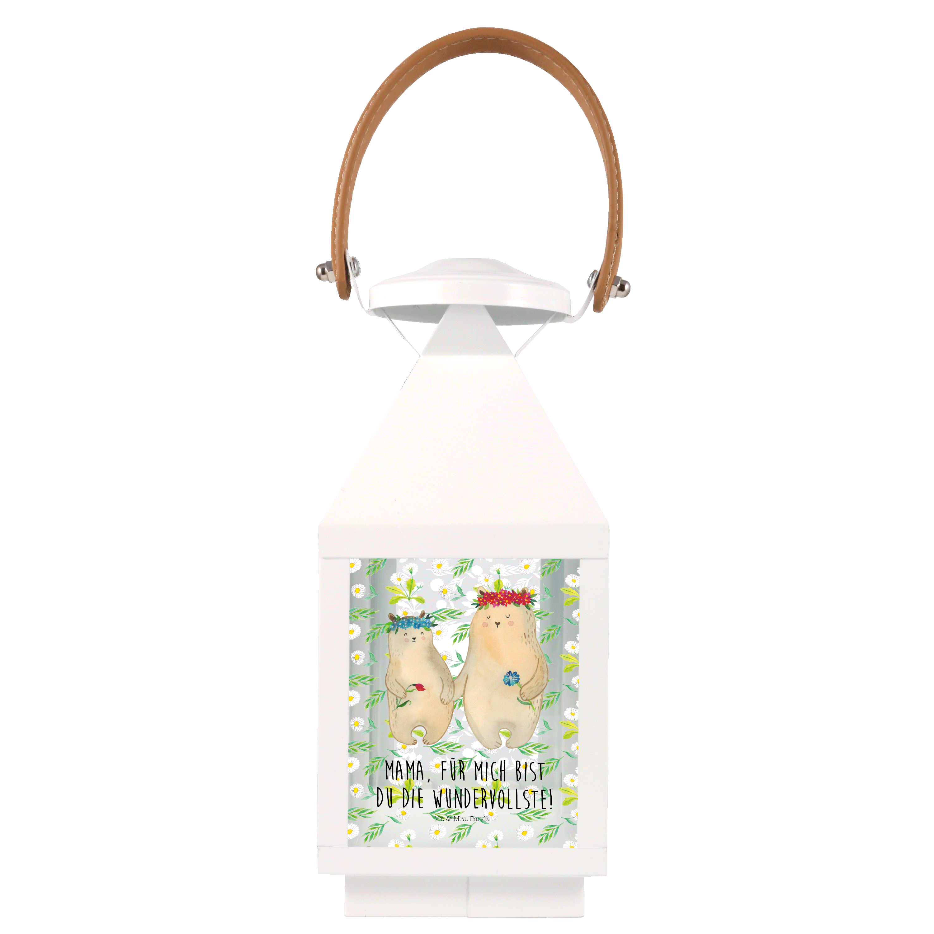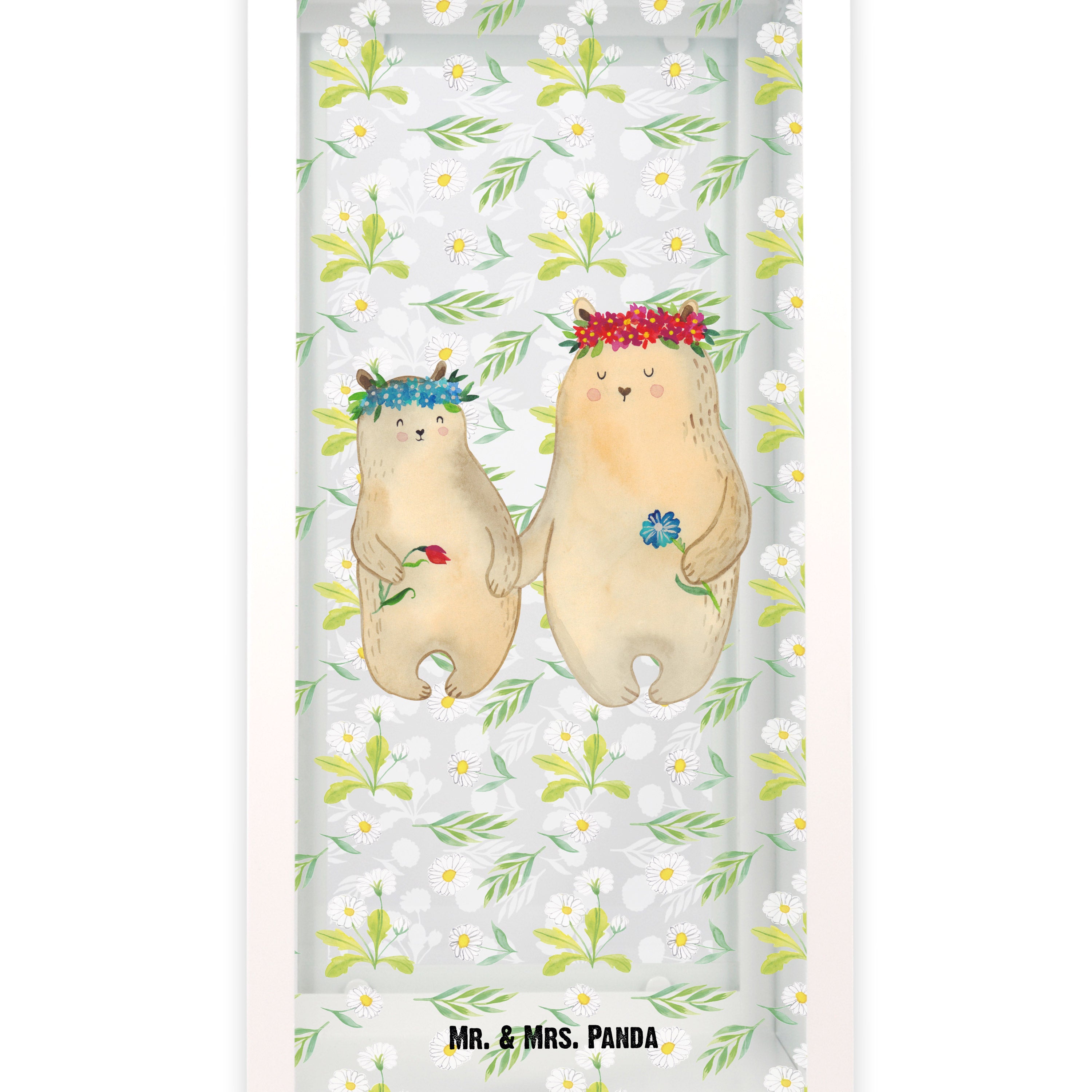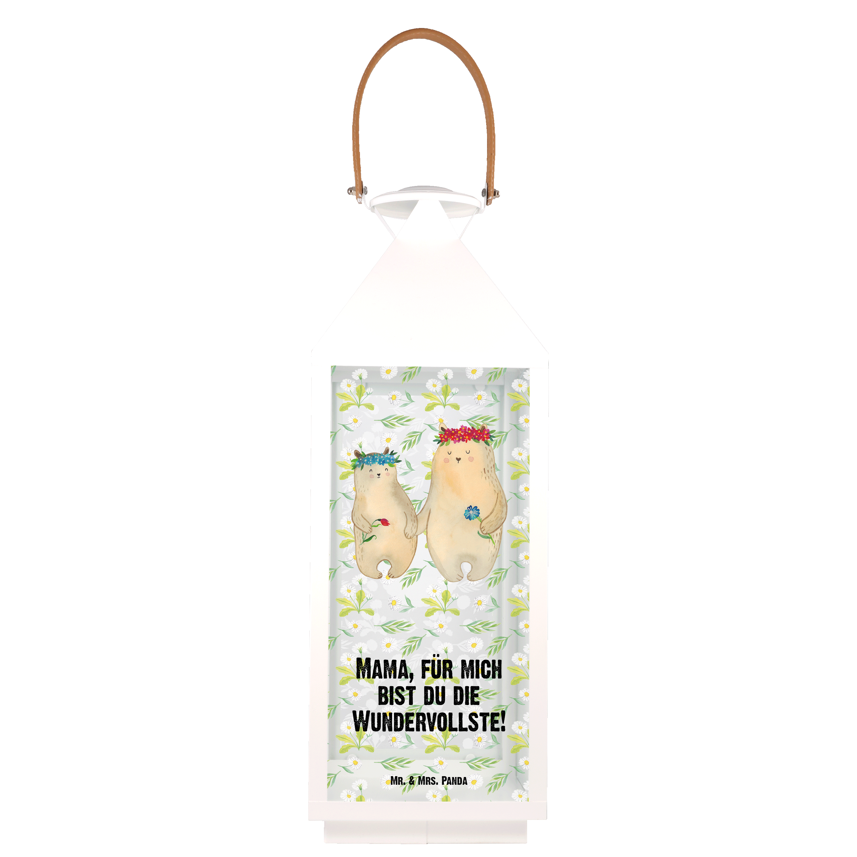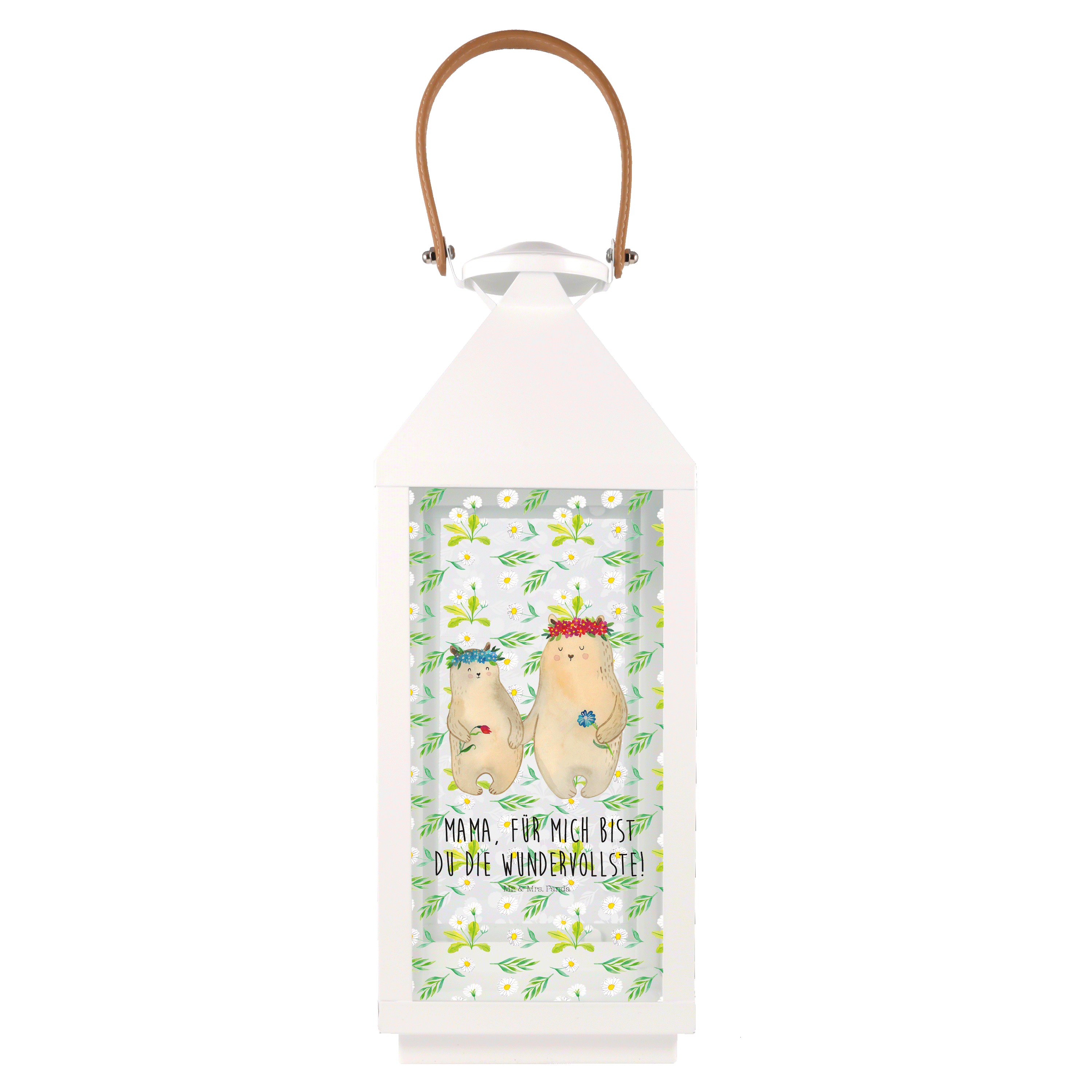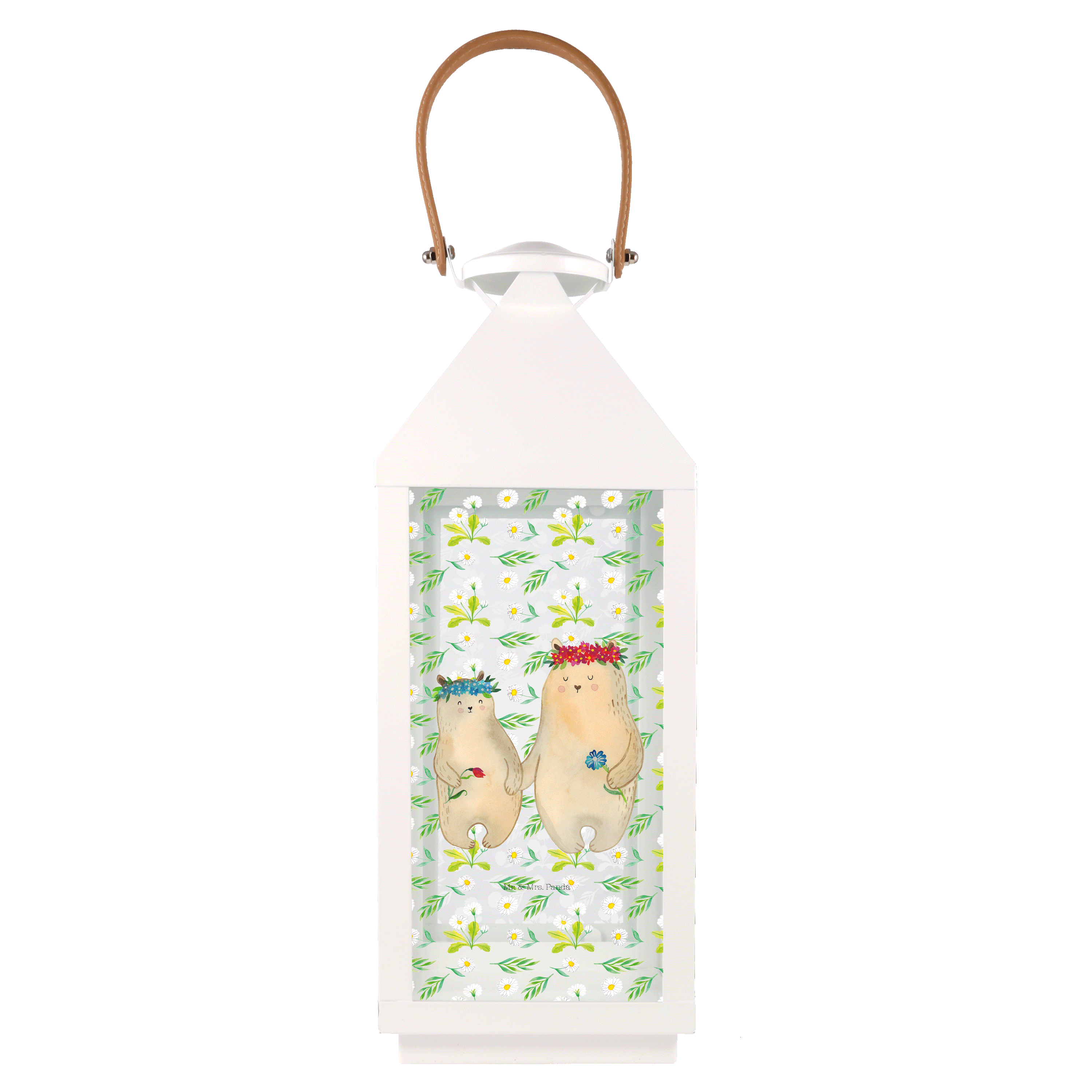 Deko Laterne Bären mit Blumenkranz - L - mit Spruch