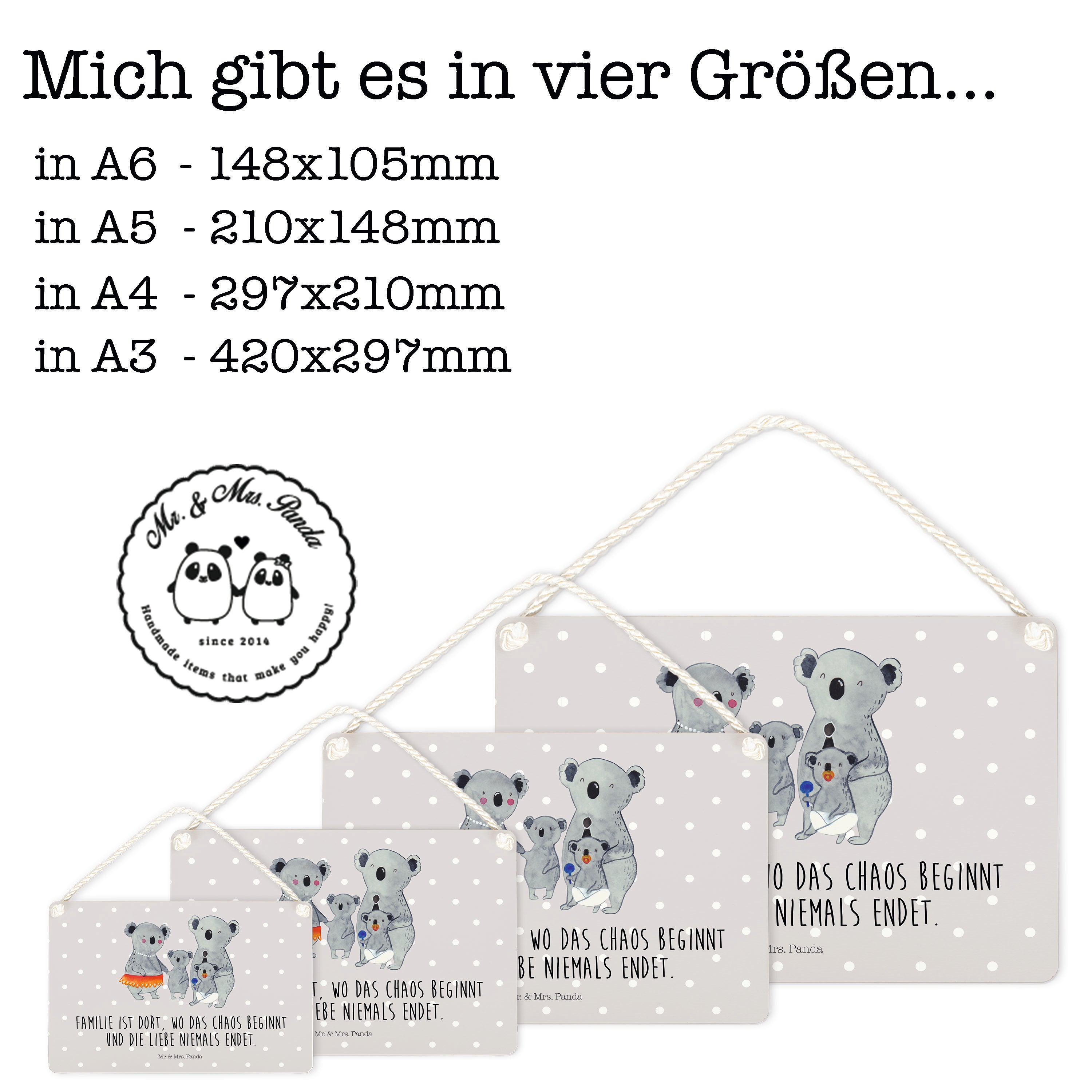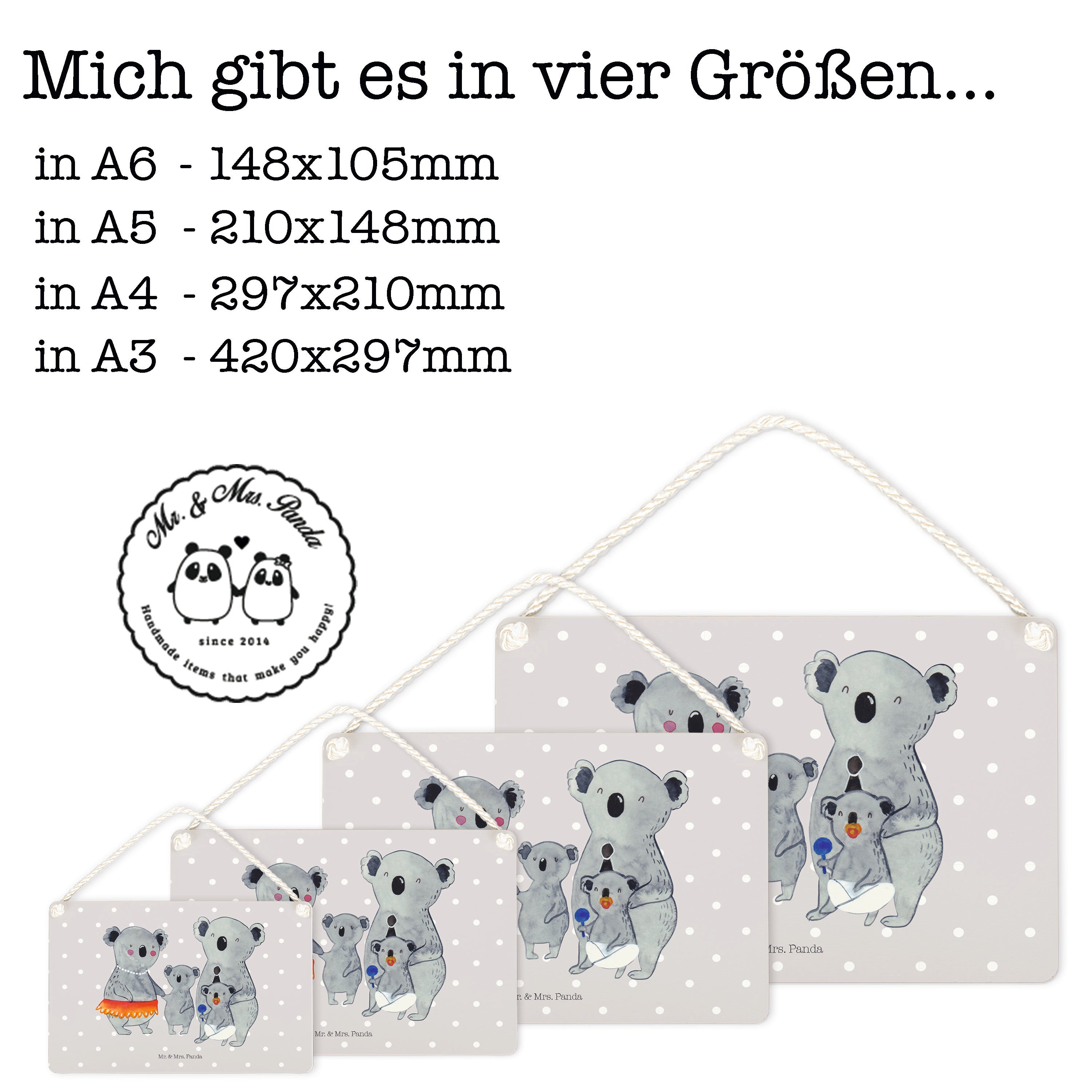 Deko Schild Koala Familie - DIN A5 - mit Spruch - Weiß