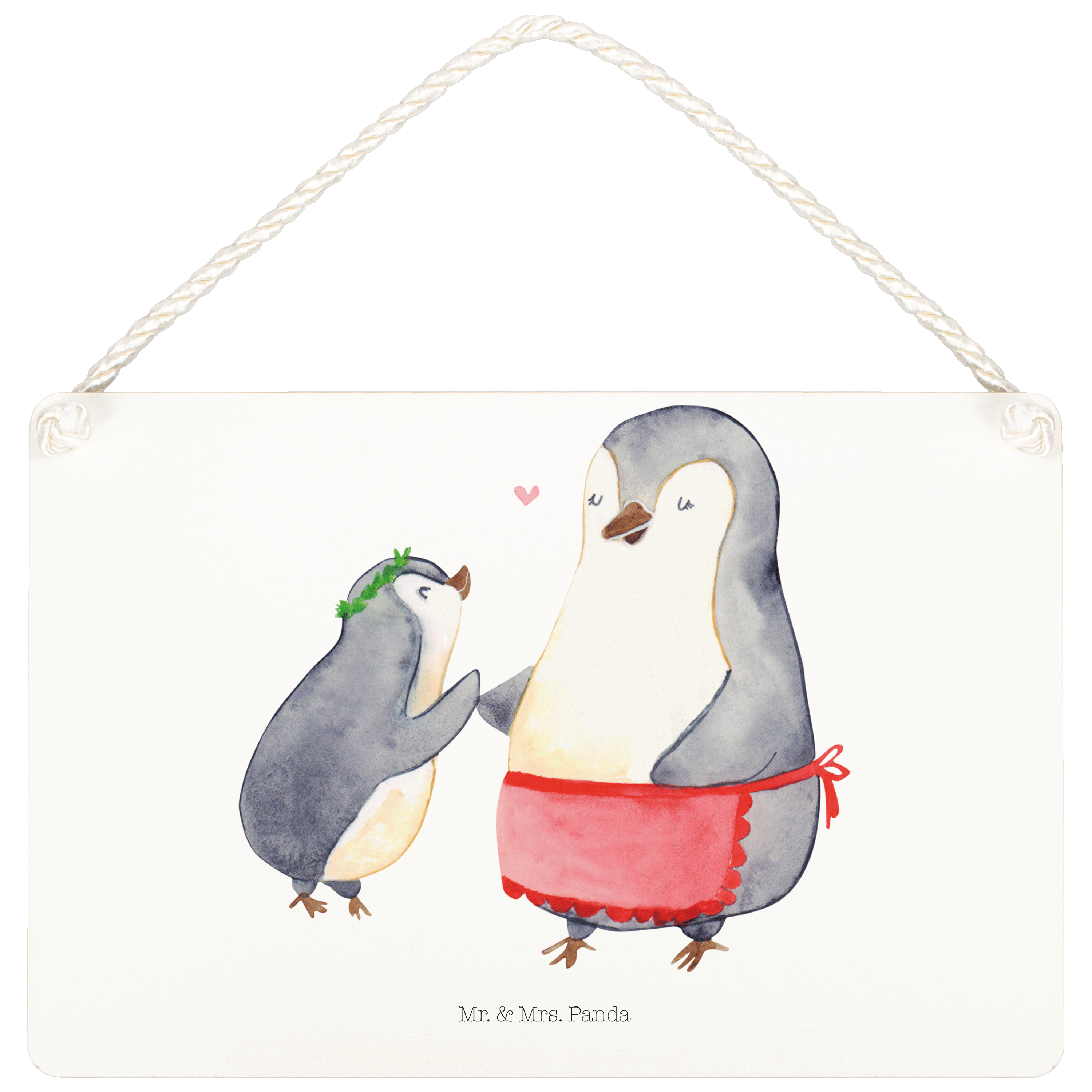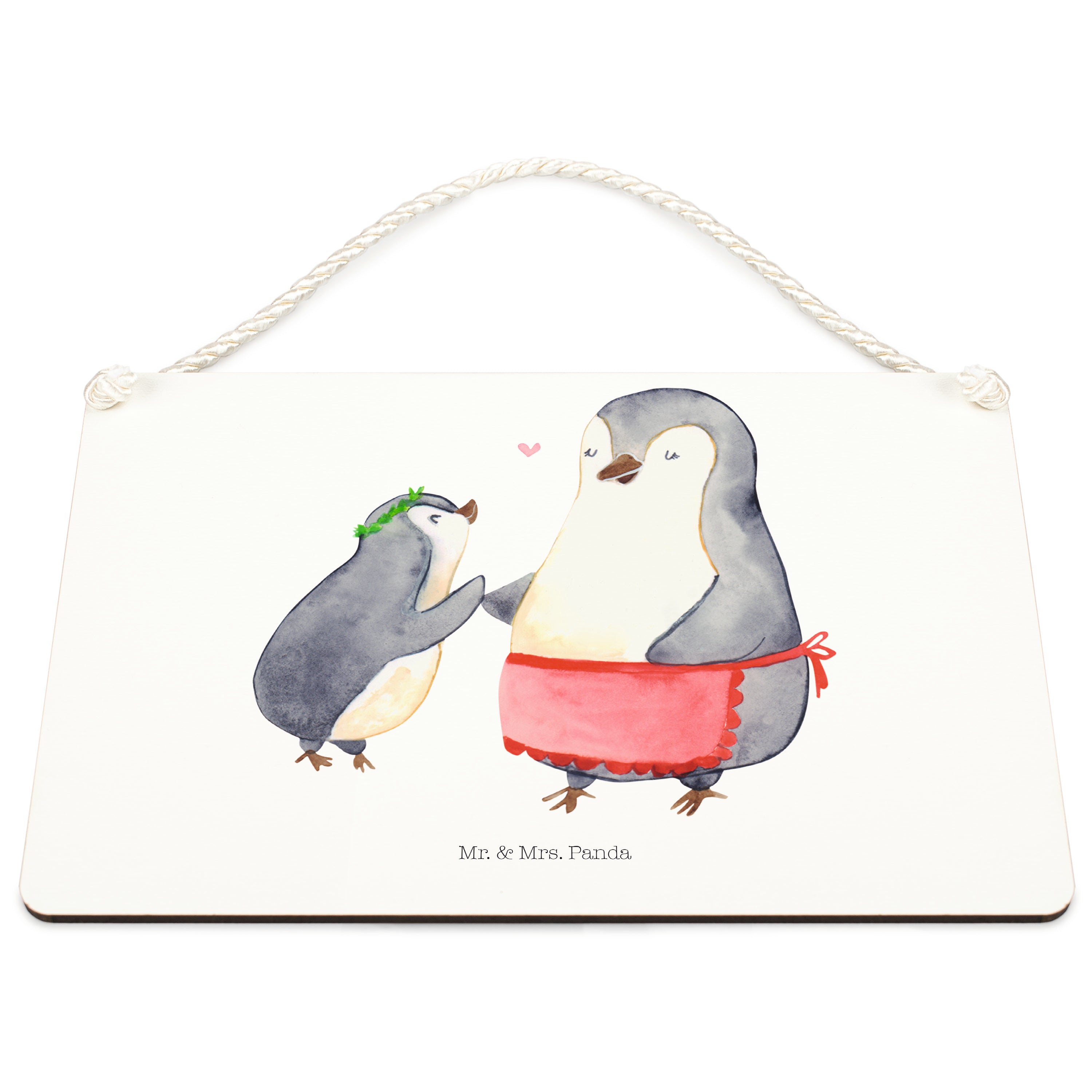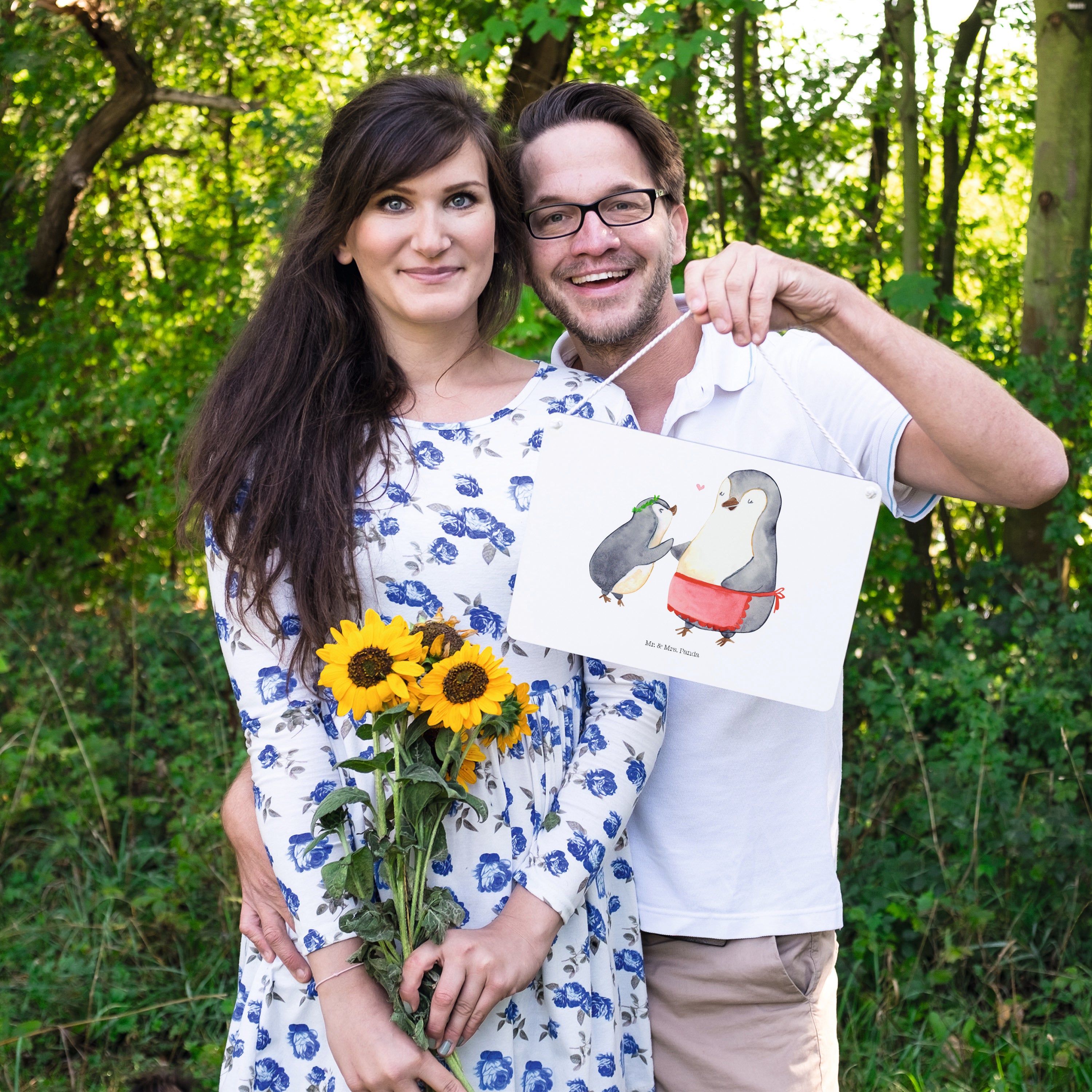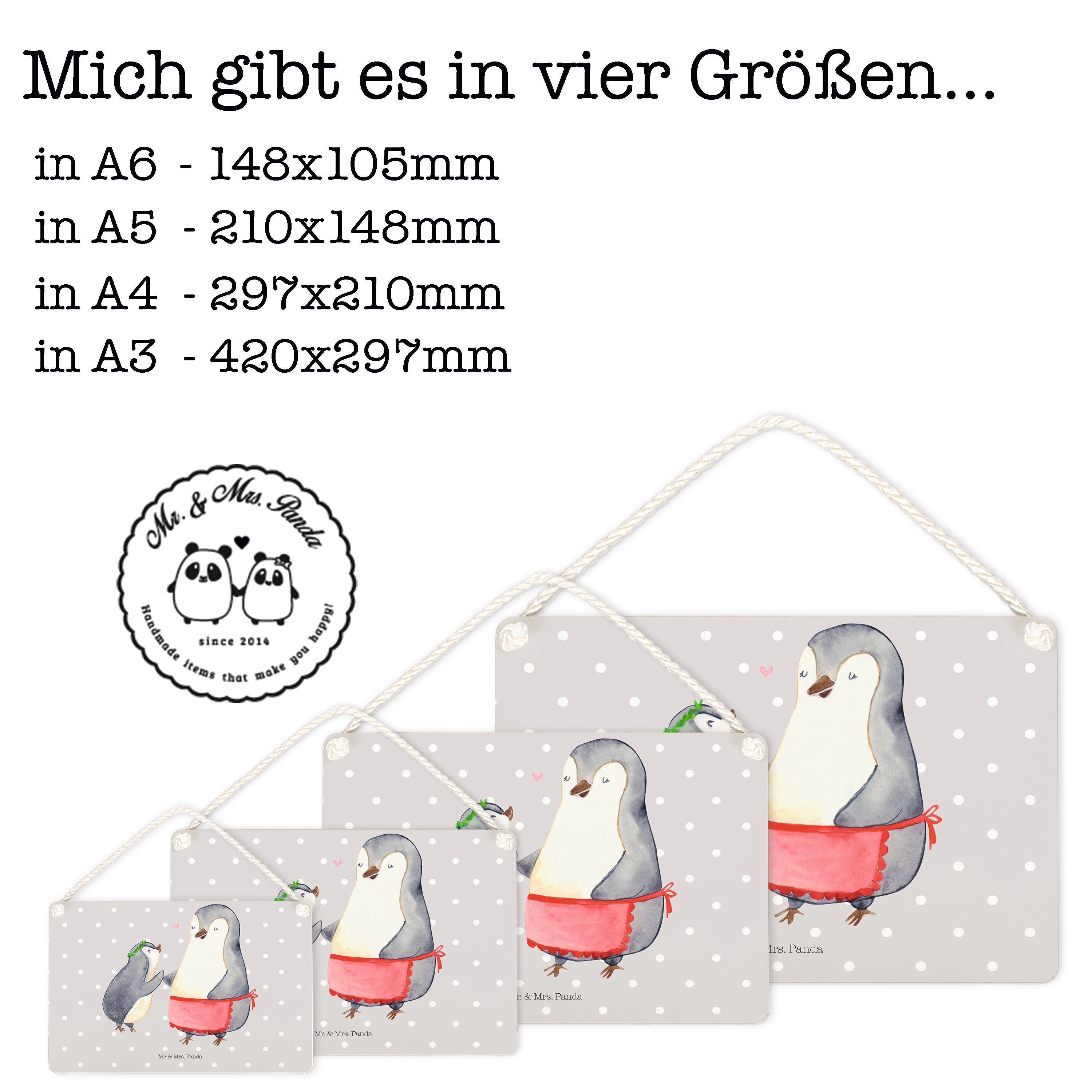 Deko Schild Pinguin mit Kind - DIN A5 - mit Spruch - Weiß