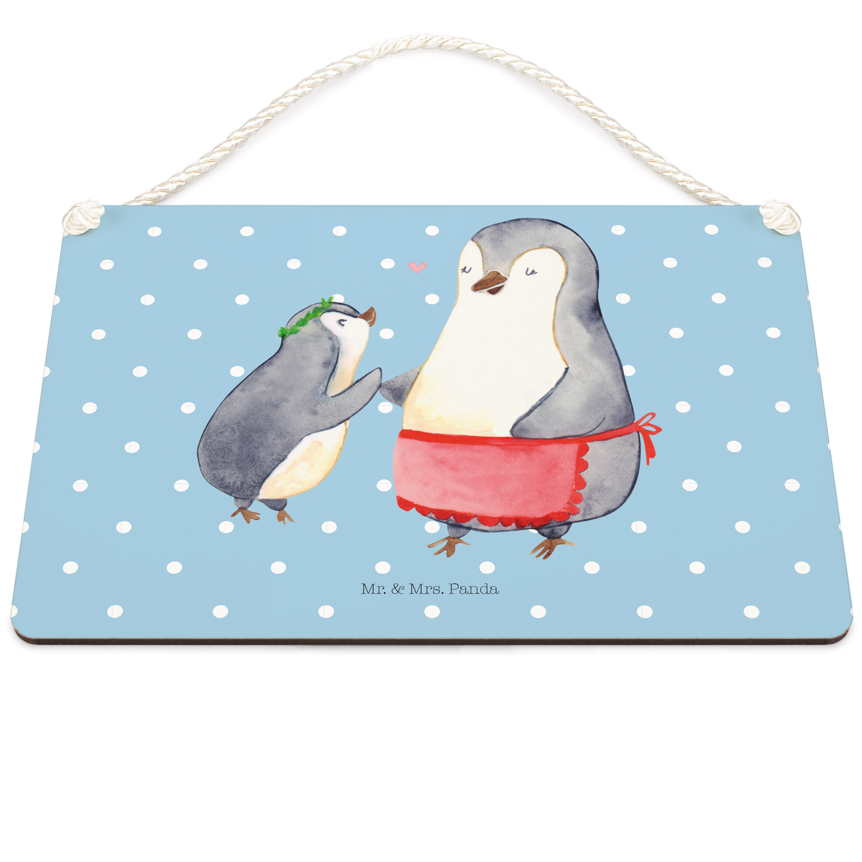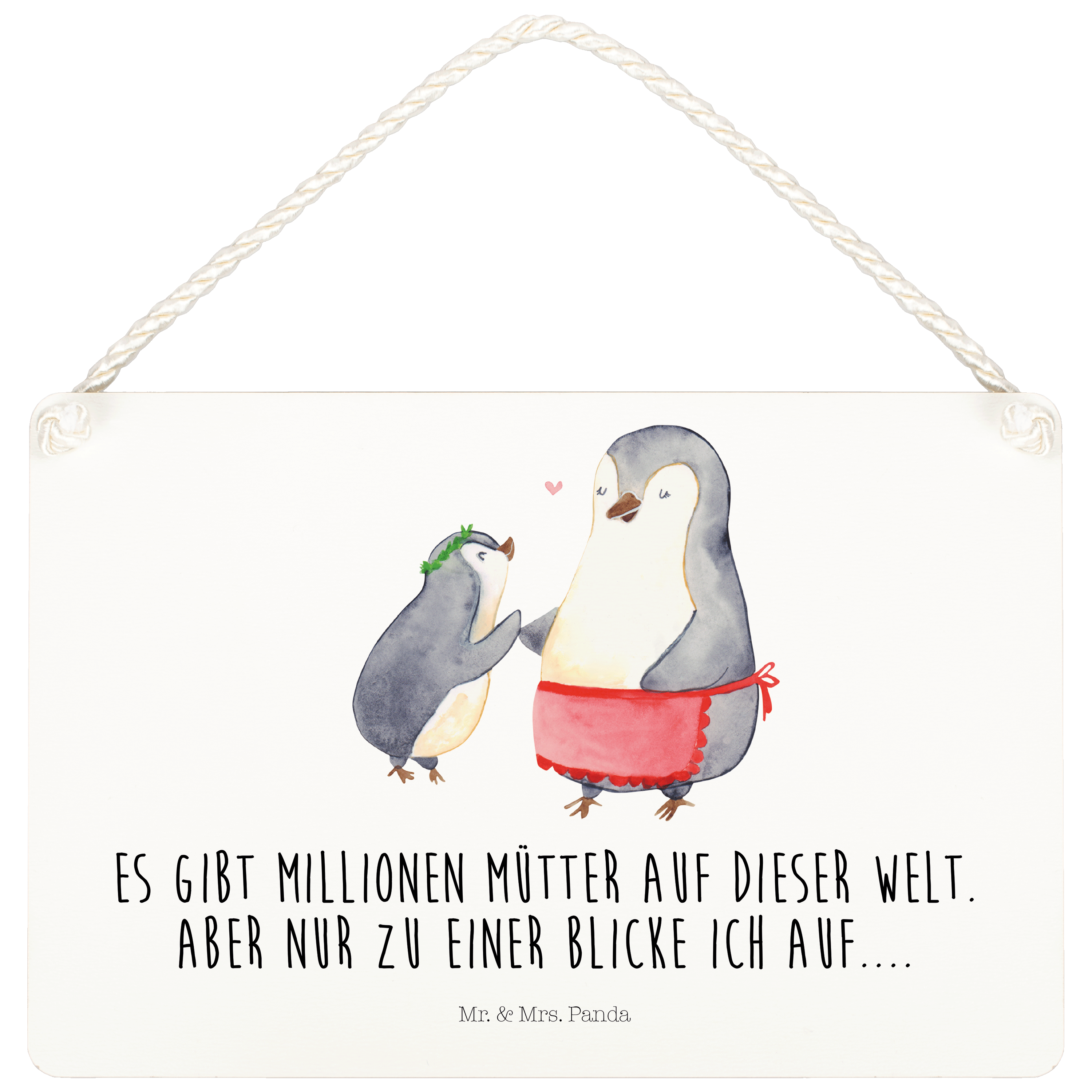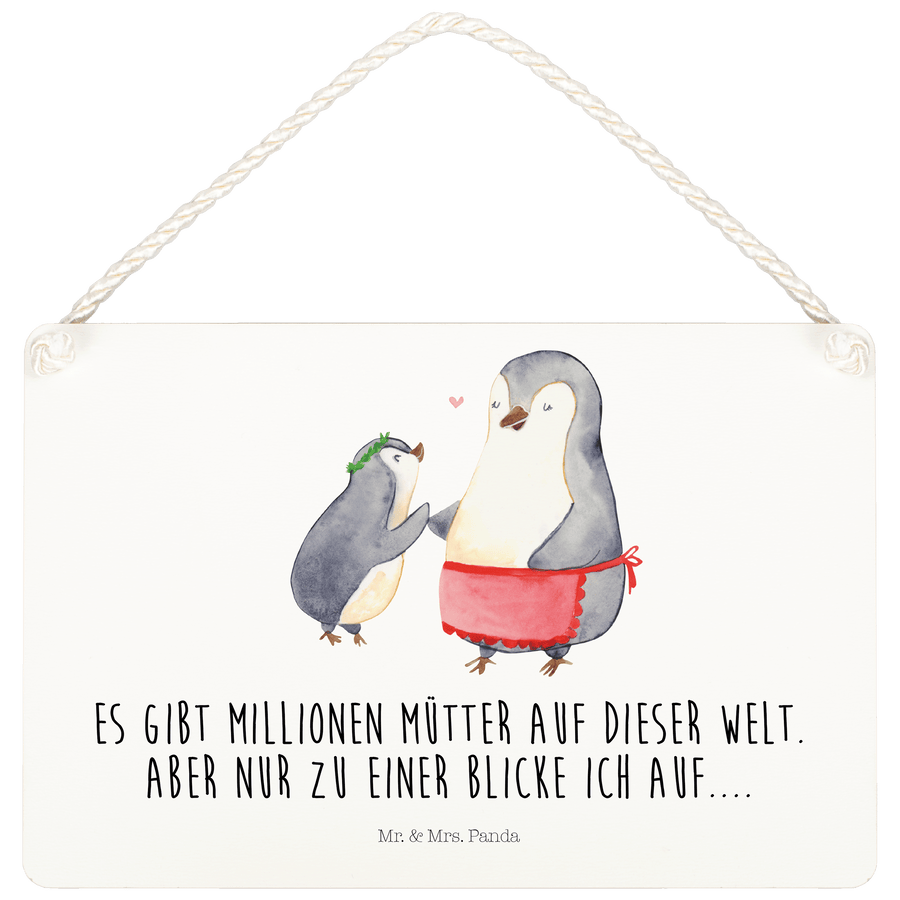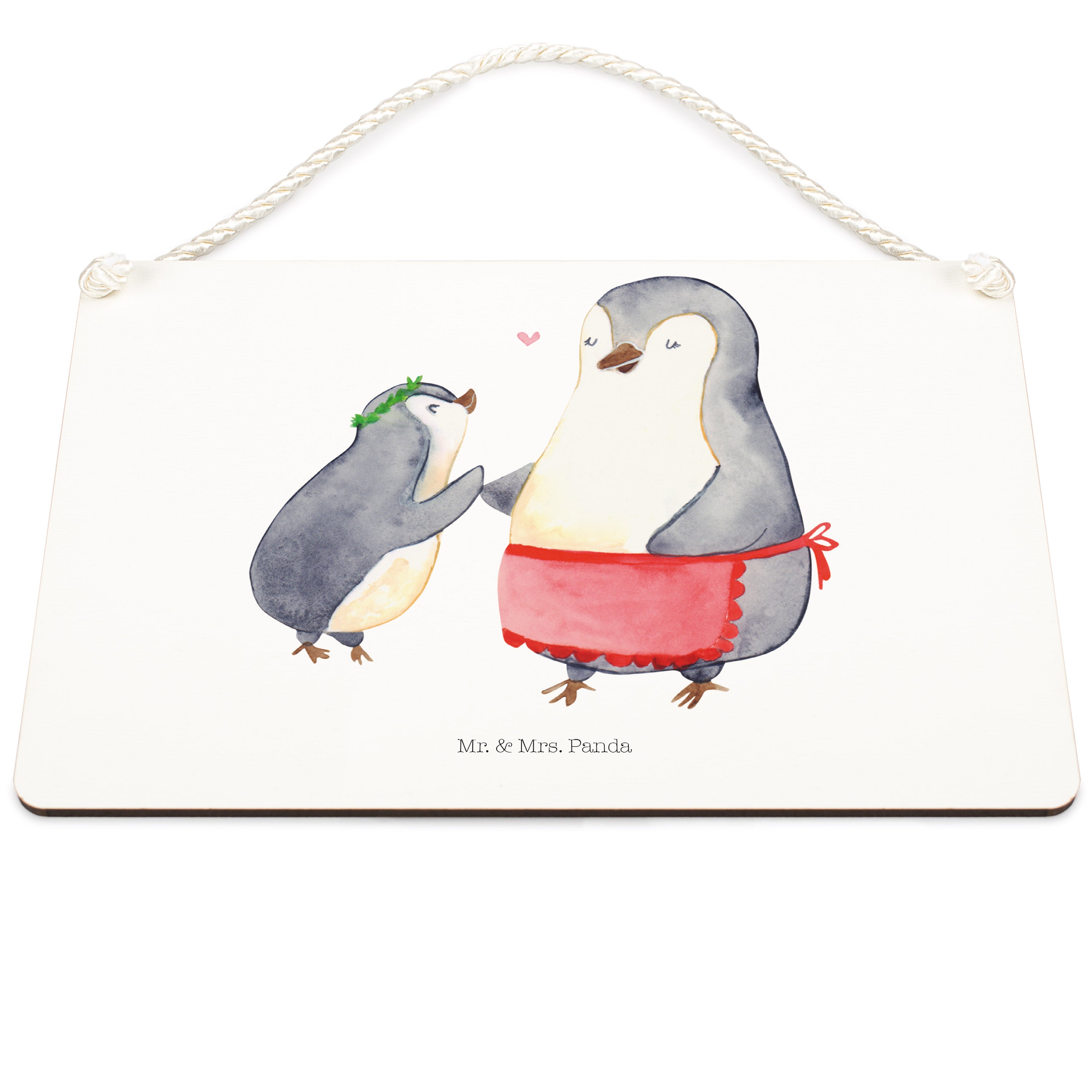 Deko Schild Pinguin mit Kind - DIN A5 - mit Spruch - Weiß