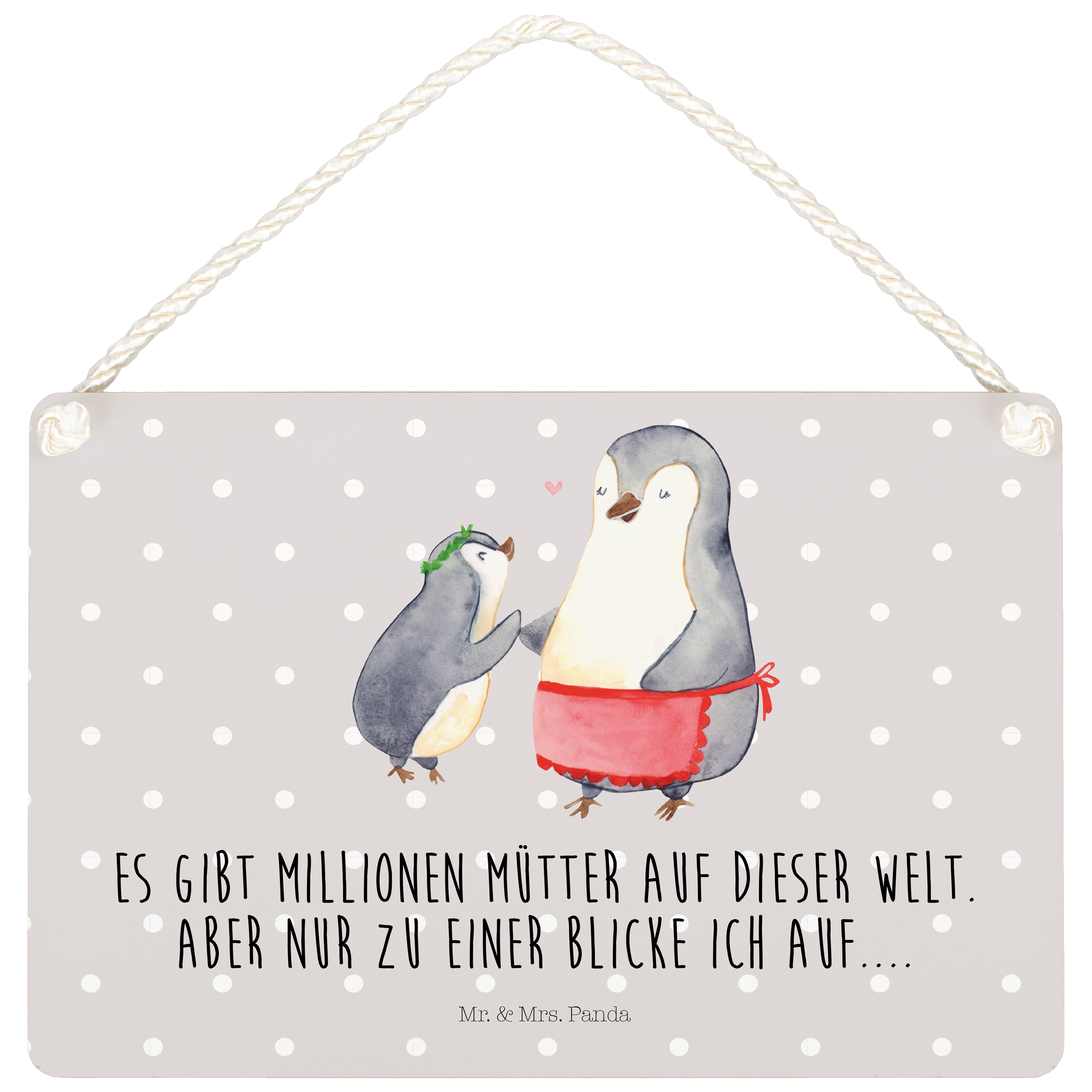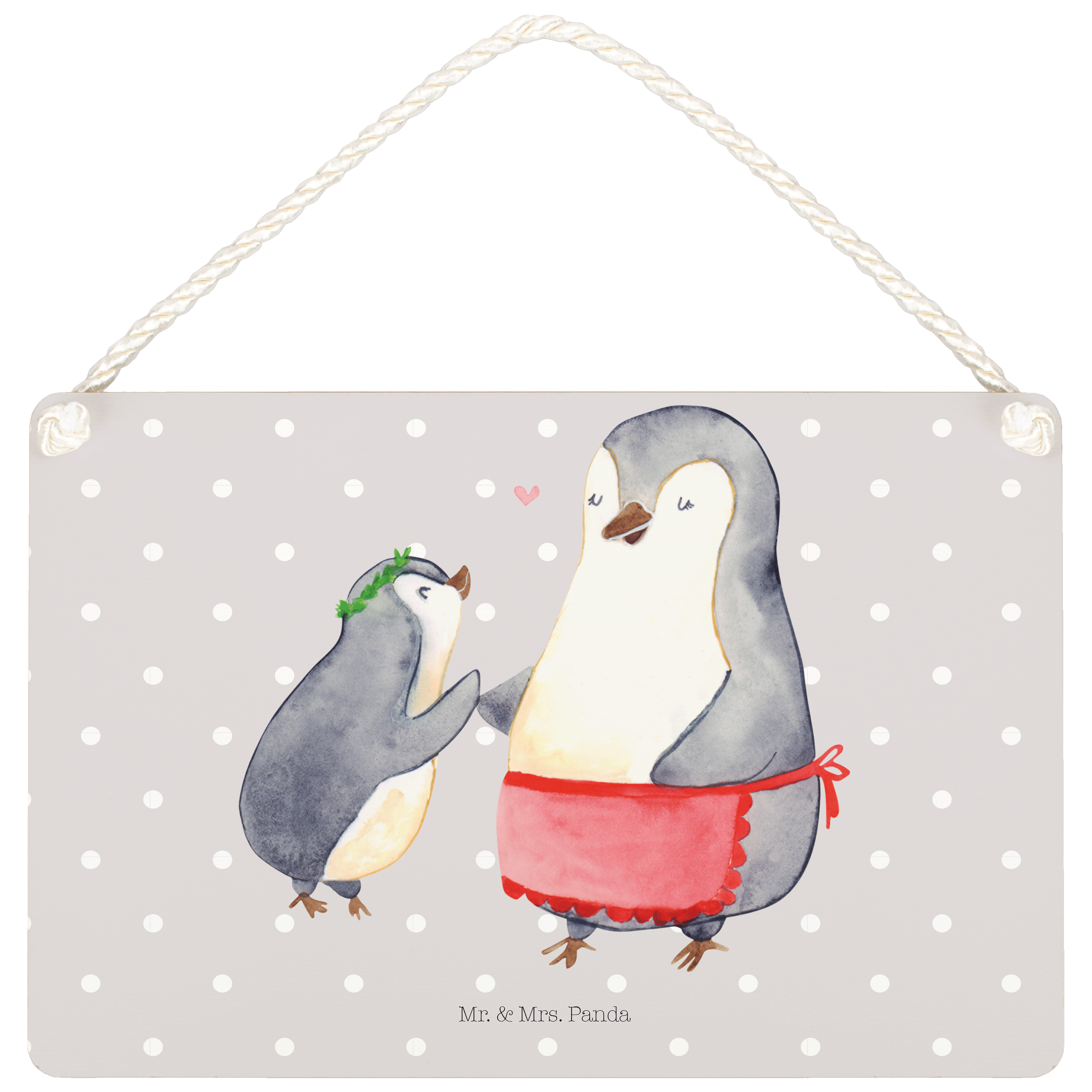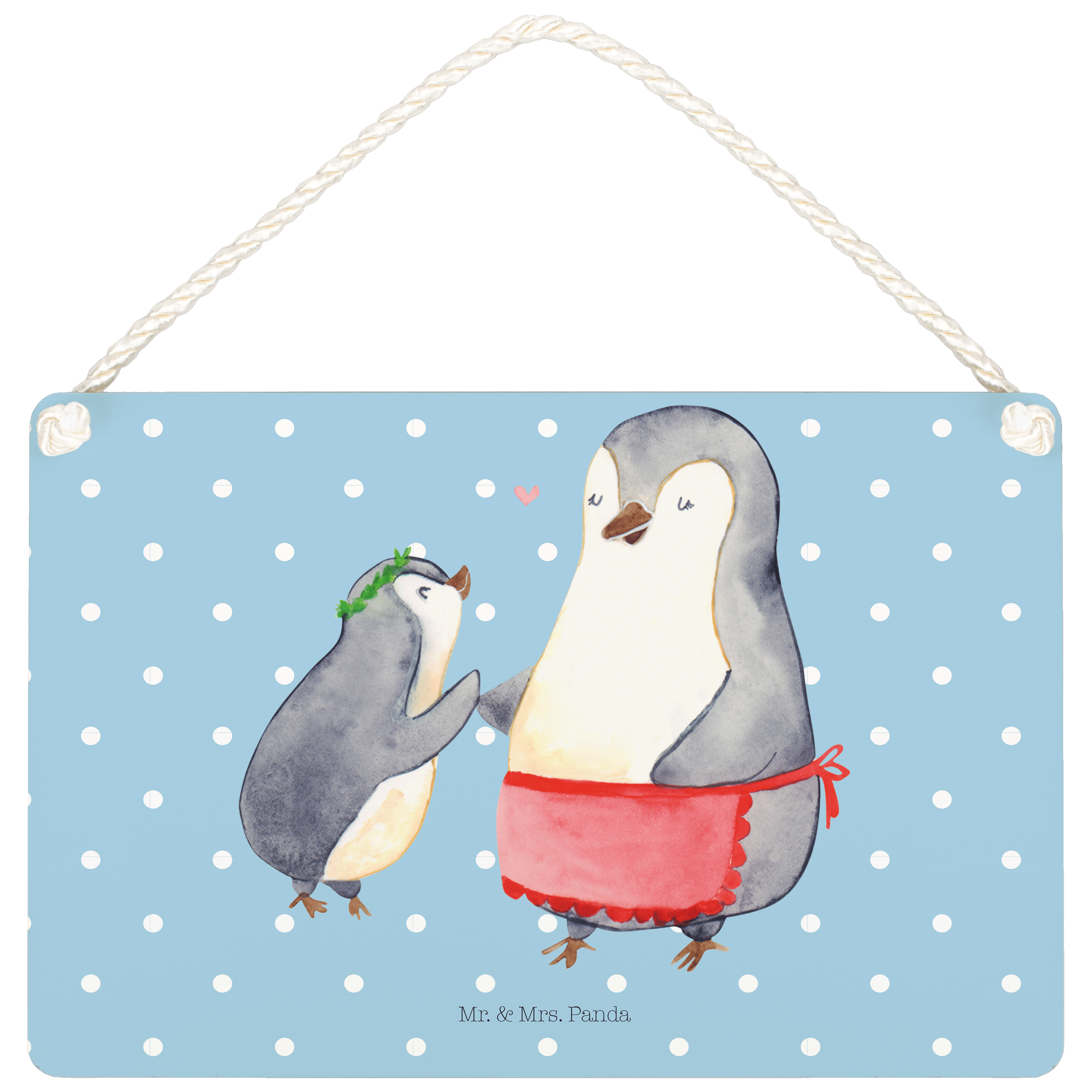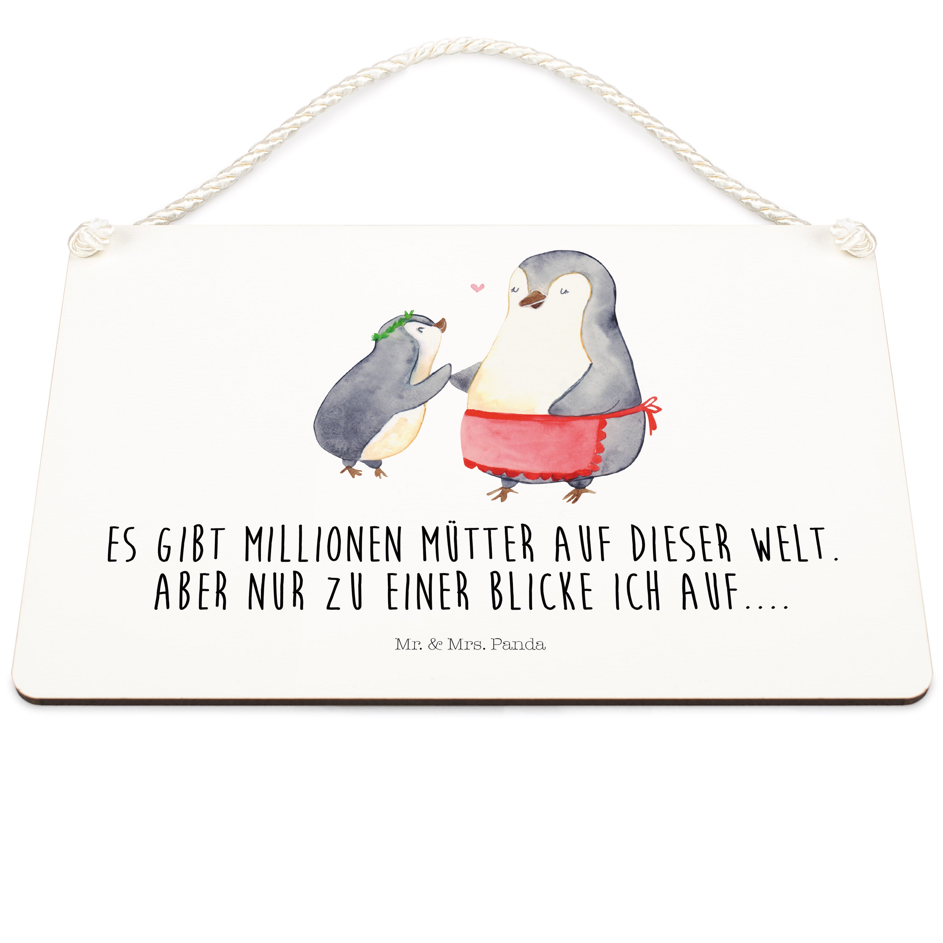 Deko Schild Pinguin mit Kind - DIN A5 - mit Spruch - Weiß