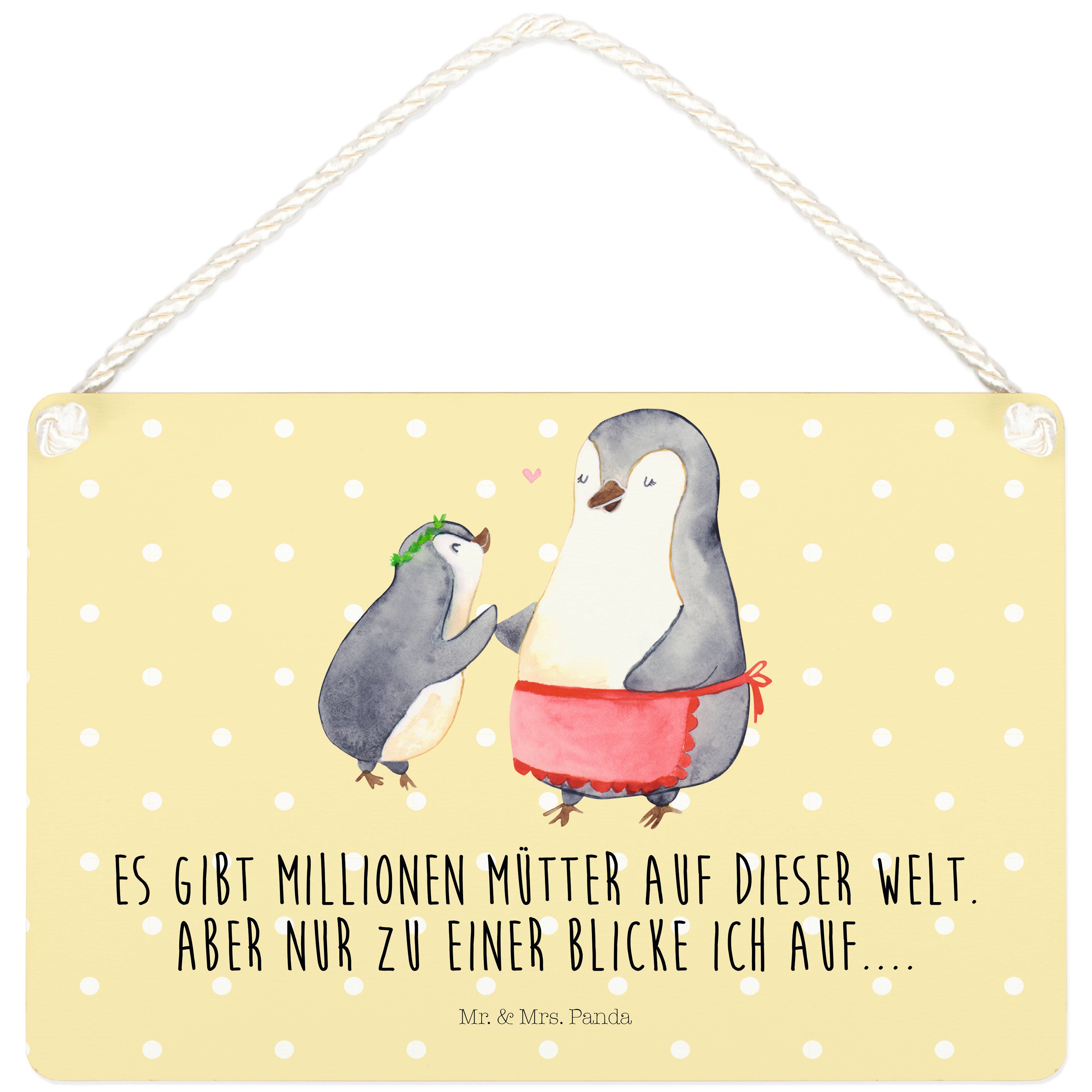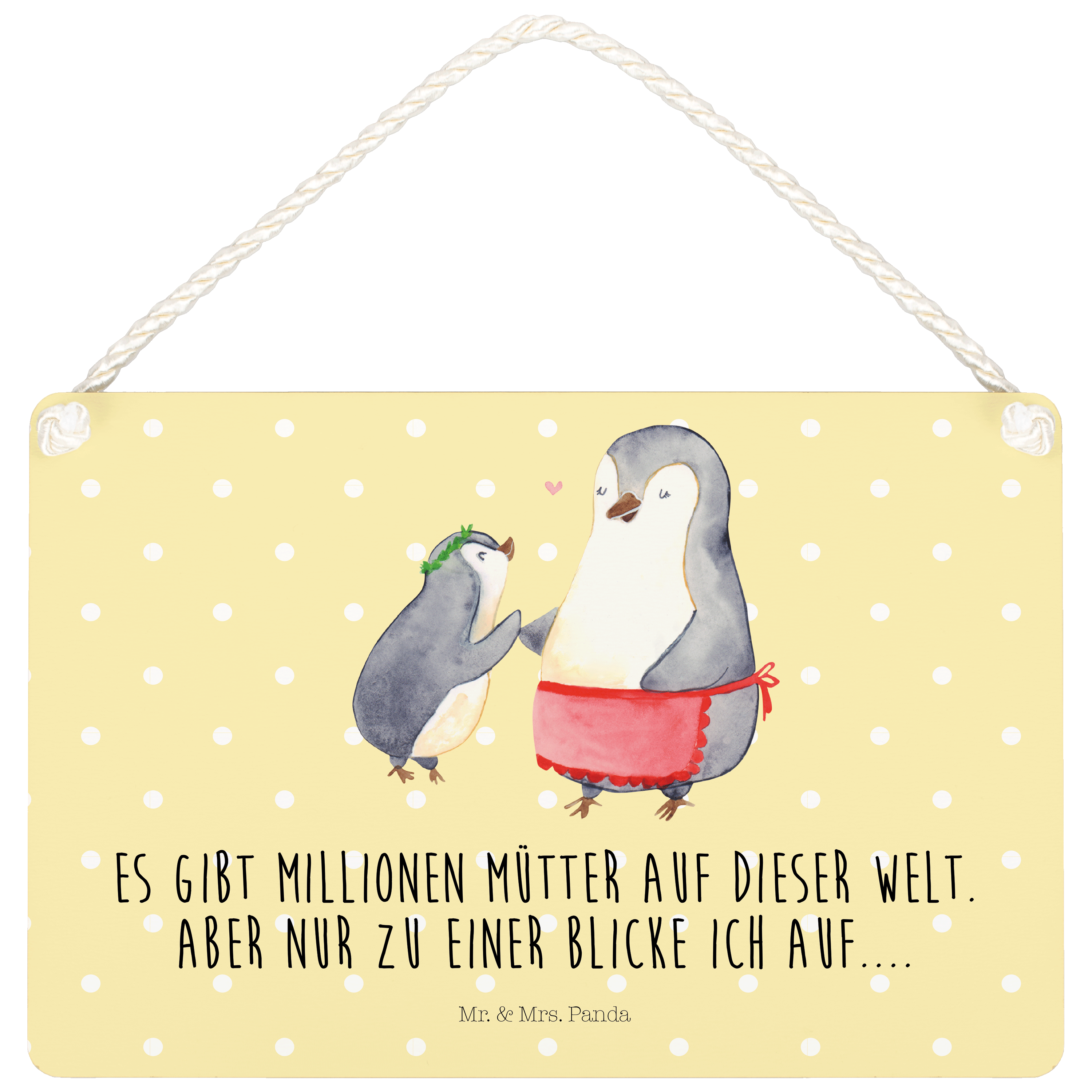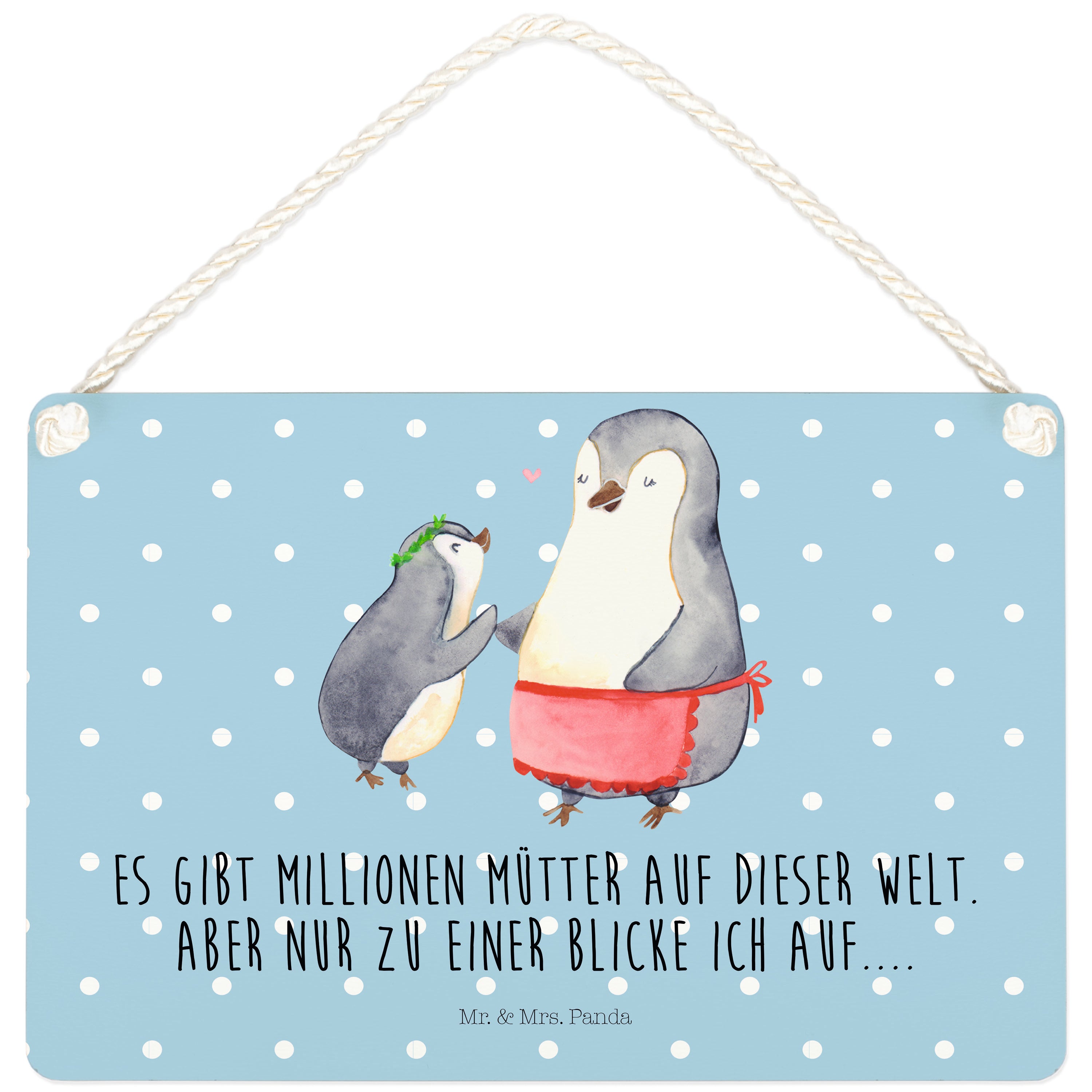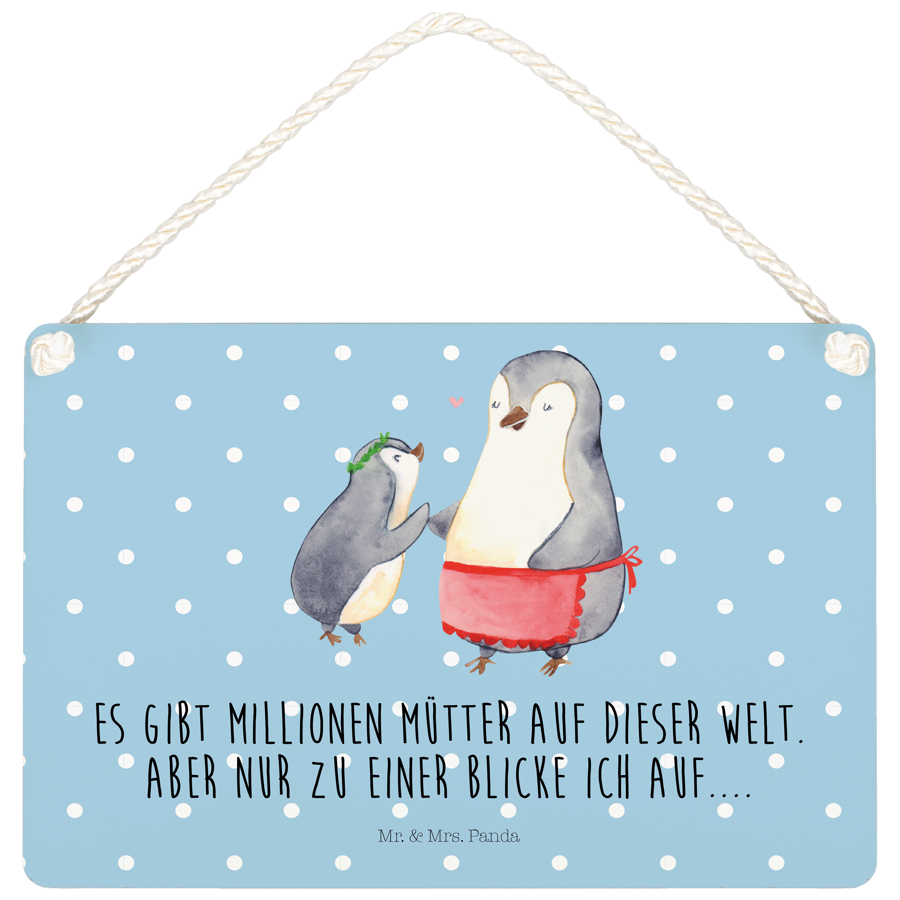 Deko Schild Pinguin mit Kind - DIN A5 - mit Spruch - Weiß