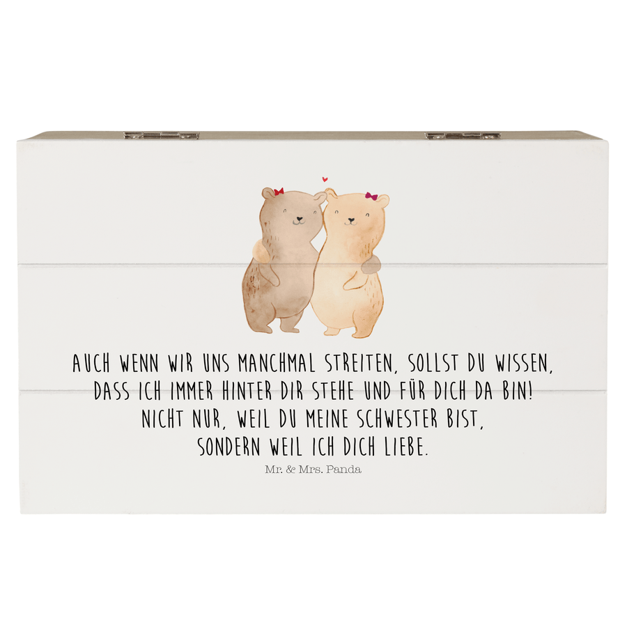 Holzkiste Bären Schwestern - 19 x 12 cm - mit Spruch - Weiß