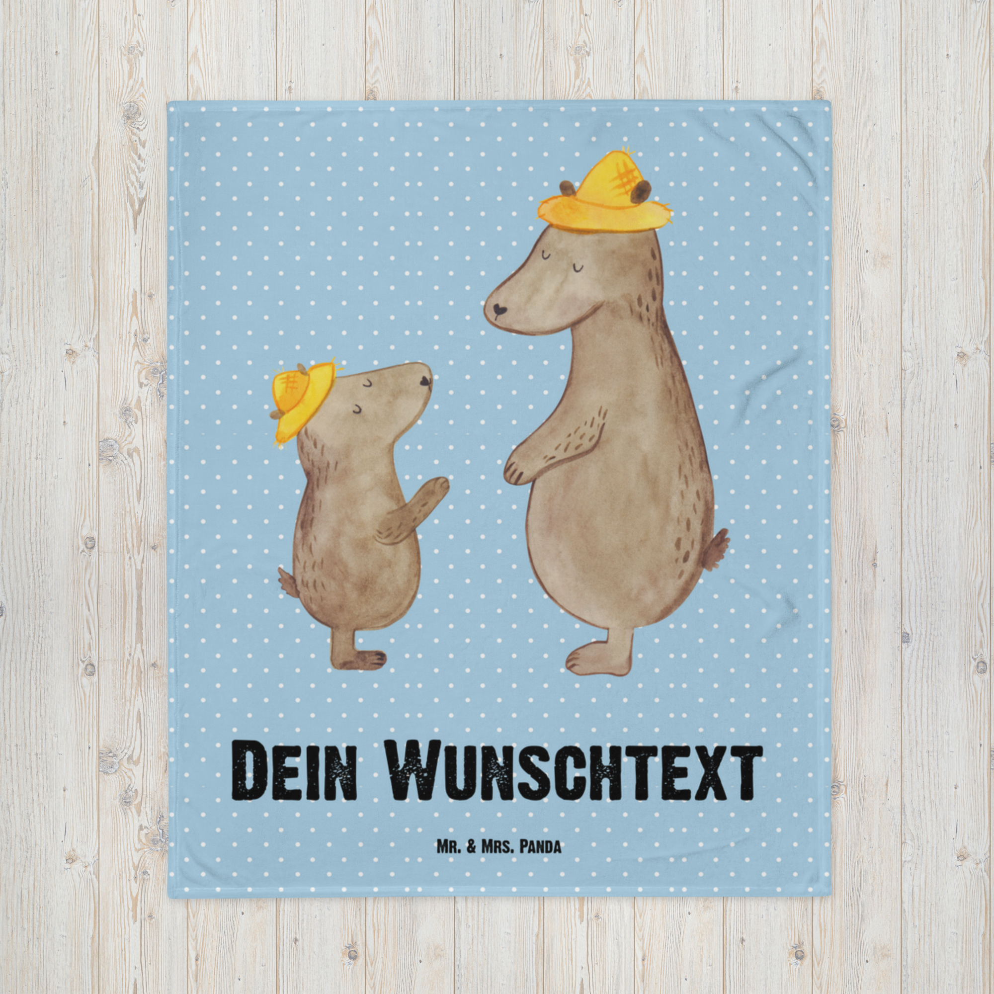 Personalisierte Decke Bären mit Hut - Blau Pastell