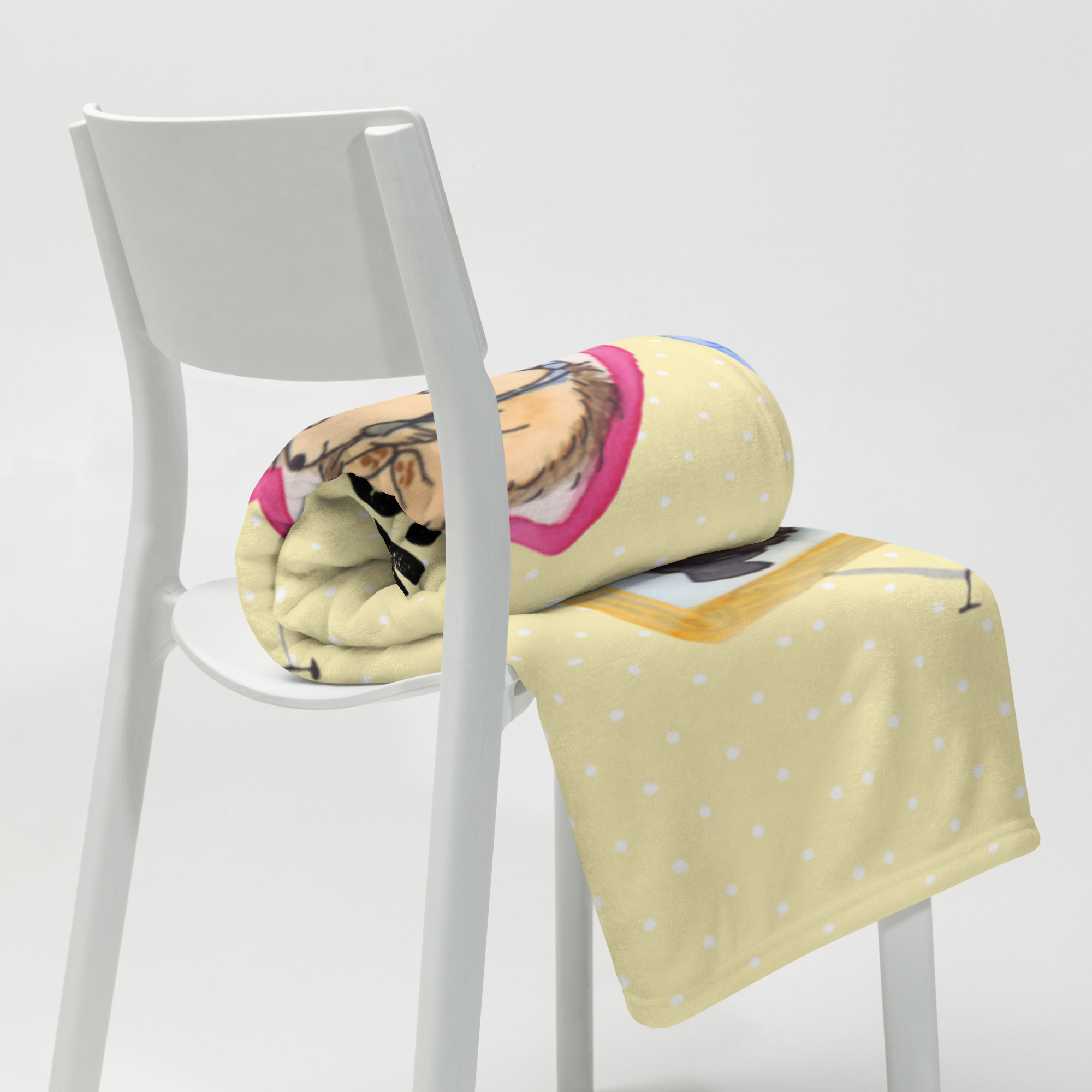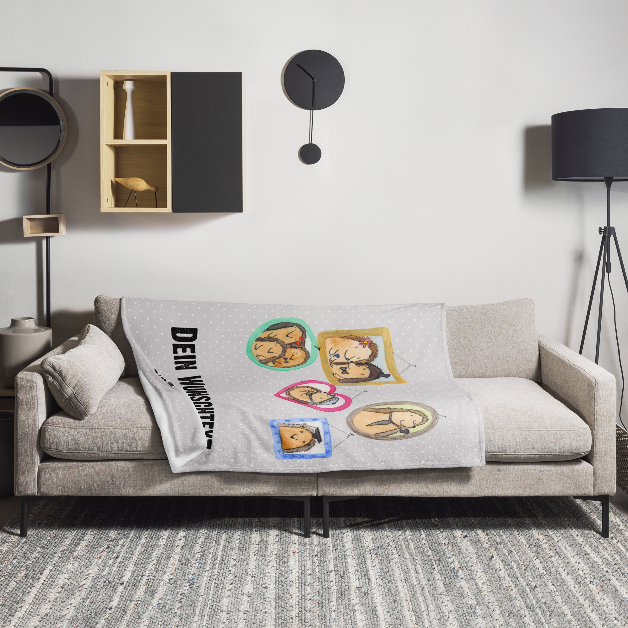 Die super flauschige personalisierte Kuscheldecke von Mr. & Mrs. Panda kann mit einem Namen bedruckt werden und ist ideal für kalte Monate und Tage. Die Größe der Kuscheldecke beträgt 127 x 153 cm und ist somit perfekt, um es sich im Wohnzimmer auf dem Sofa oder im Schlafzimmer auf dem Bett gemütlich zu machen.Die Sofadecke besteht aus Kuschel Fleece Mikrofaser und ist extrem flauschig. Die fellartige Kuscheldecke schmiegt sich herrlich weich an deinen Körper und wärmt außerordentlich gut, so wirst du sicherlich nicht frieren. Die Decke zeichnet sich durch ihre hochwertige und strapazierfähige Qualität aus. Alternativ kannst du die Decke auch 140x200 cm kaufen. Sie eignet sich auch optimal als Tagesdecke für Kinder und Erwachsene.