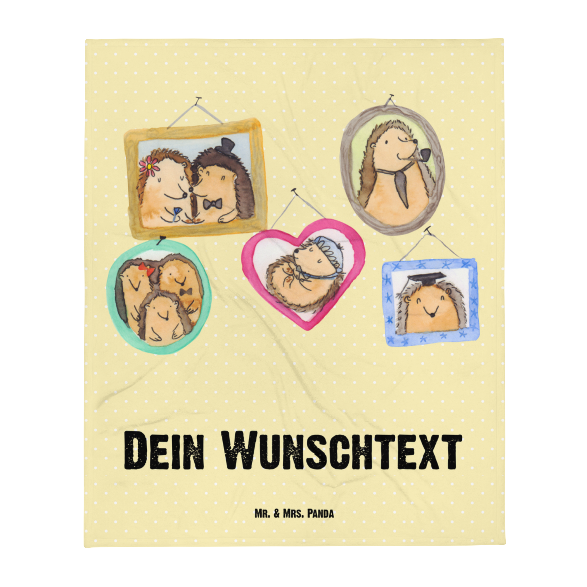 Personalisierte Decke Igel Familie - Gelb Pastell