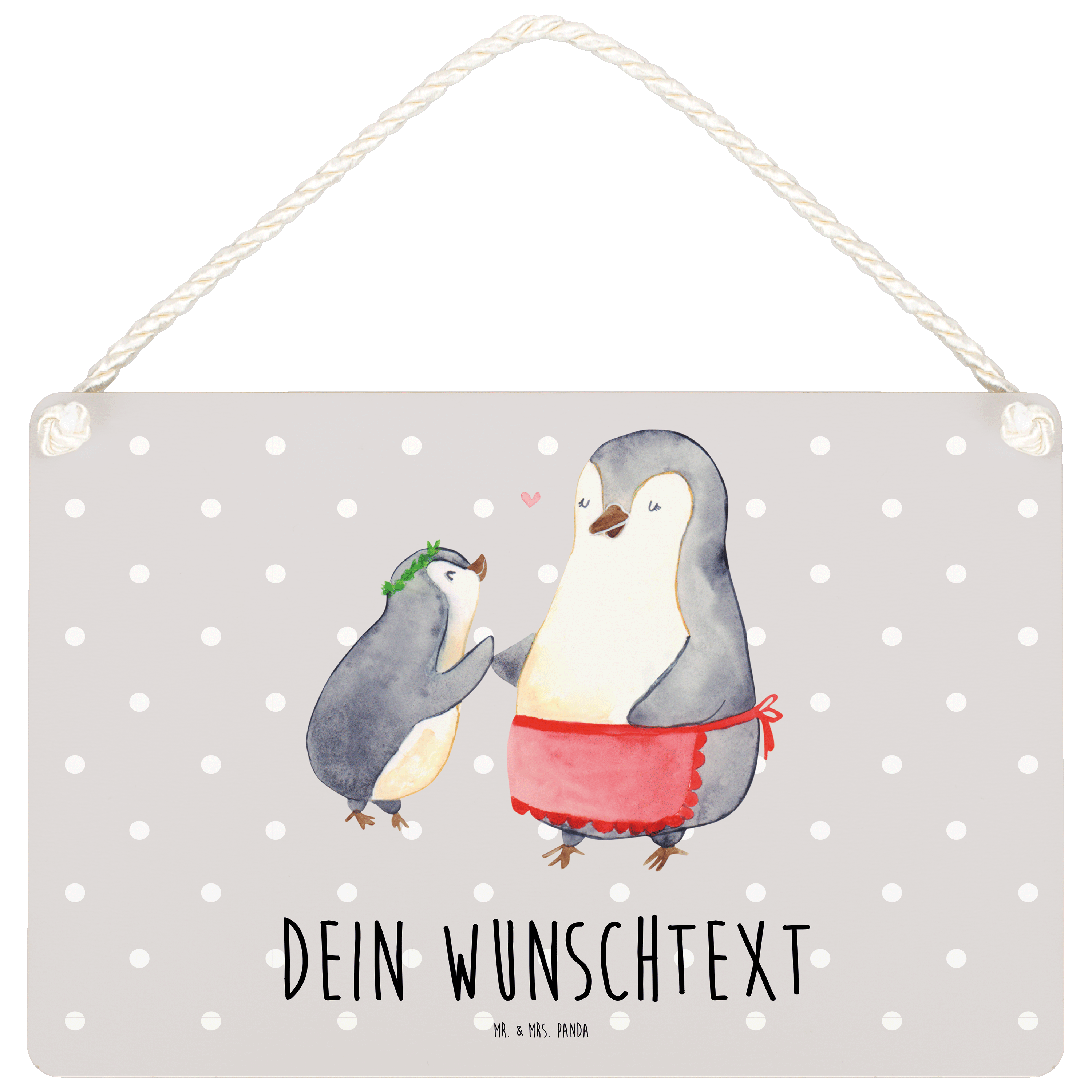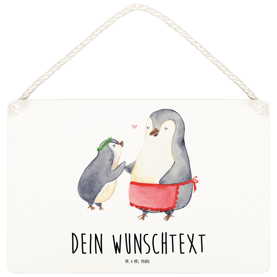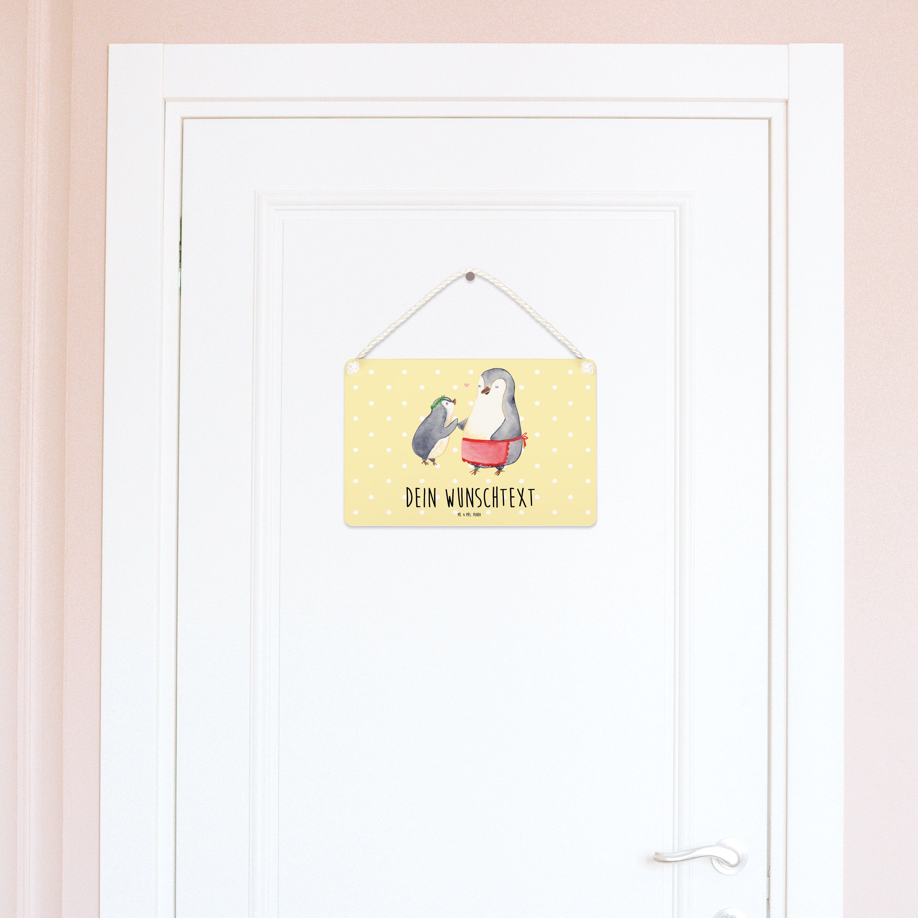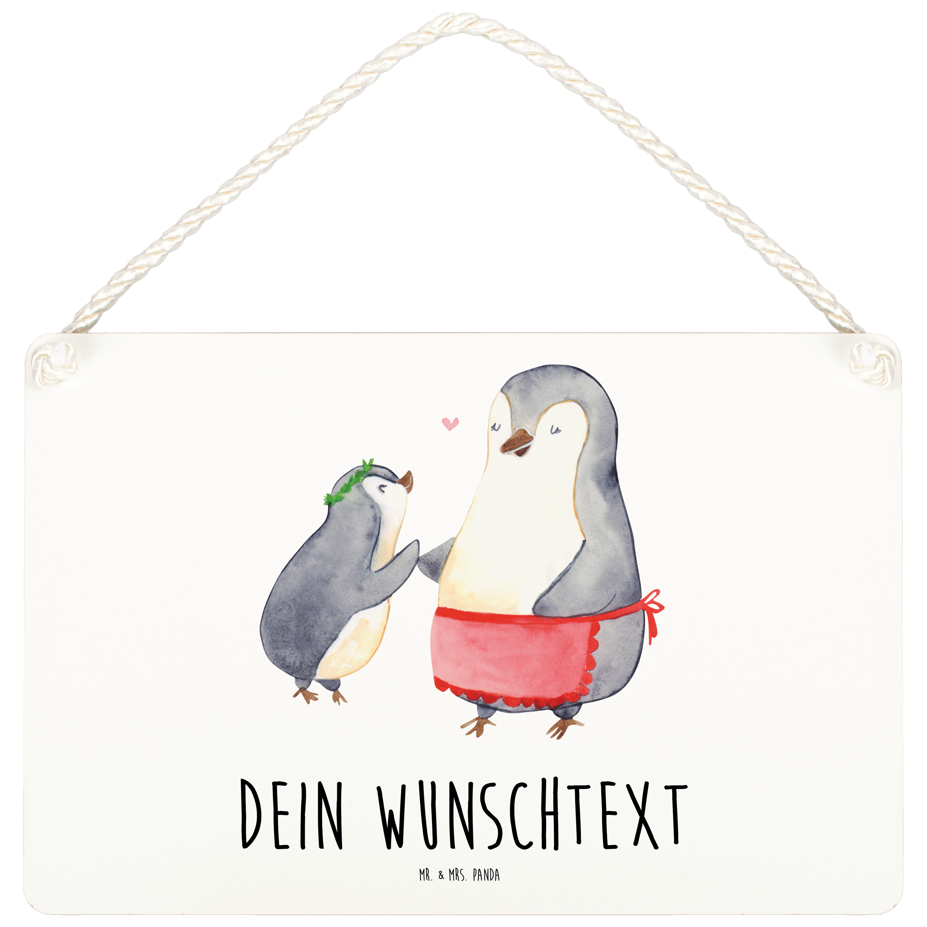 Personalisiertes Deko Schild Pinguin mit Kind - DIN A6 - Weiß