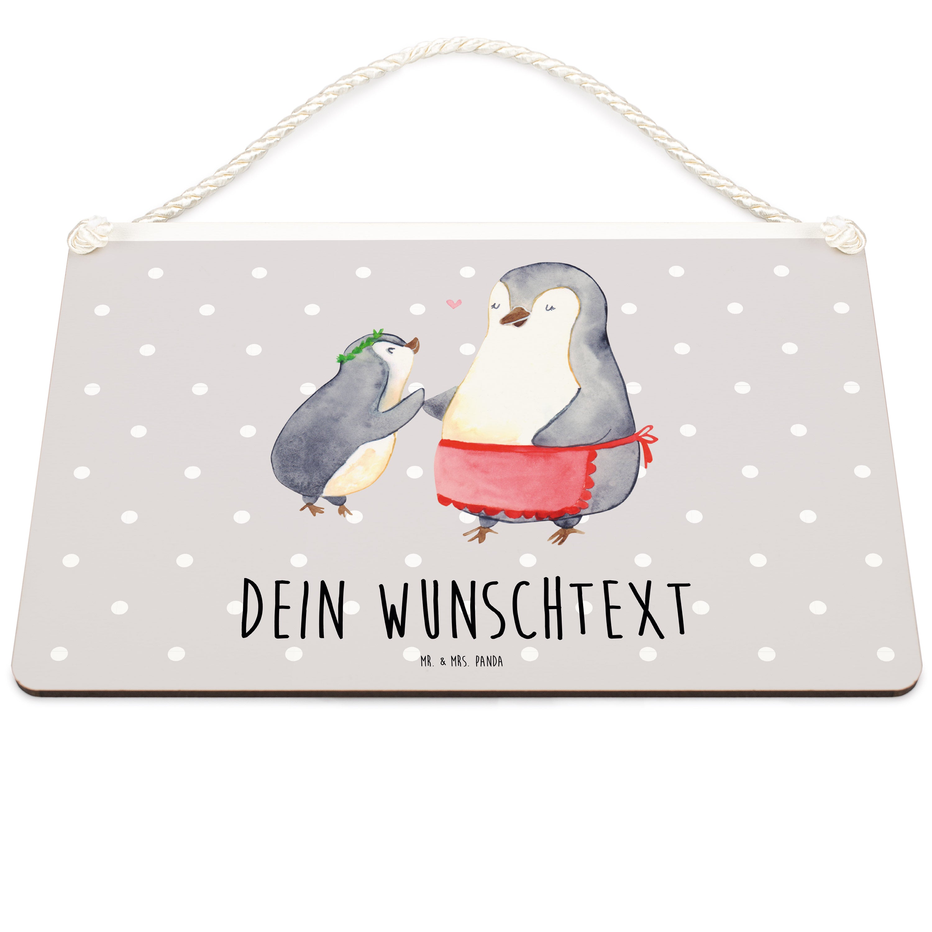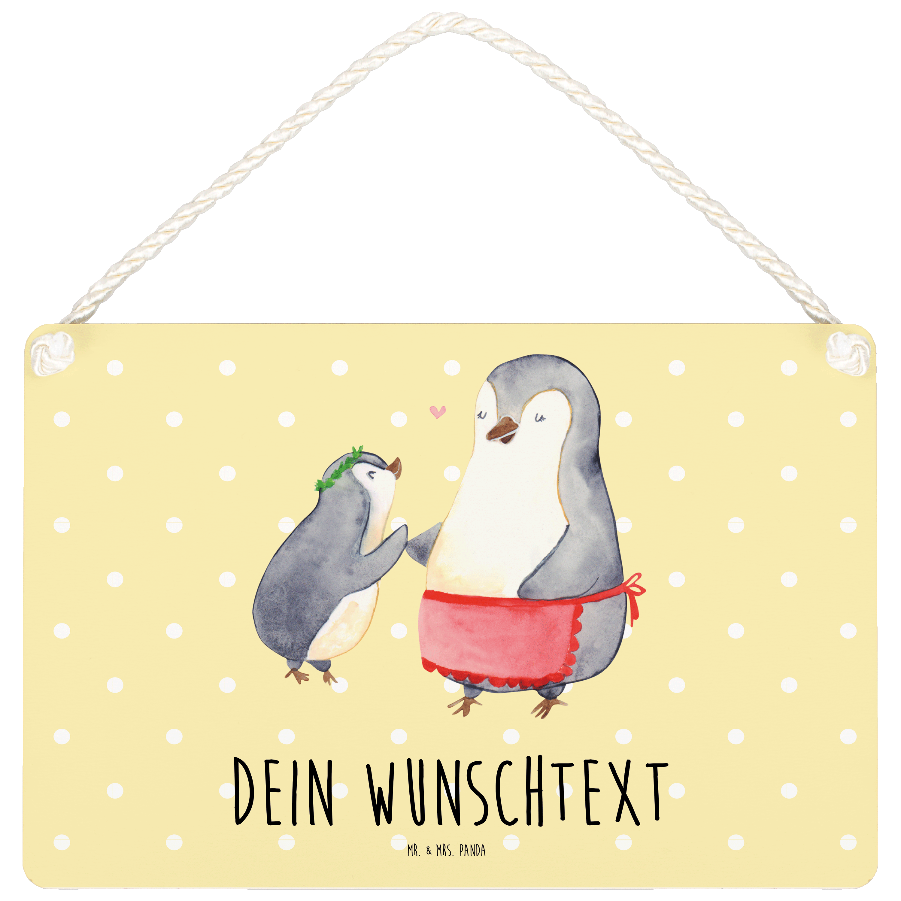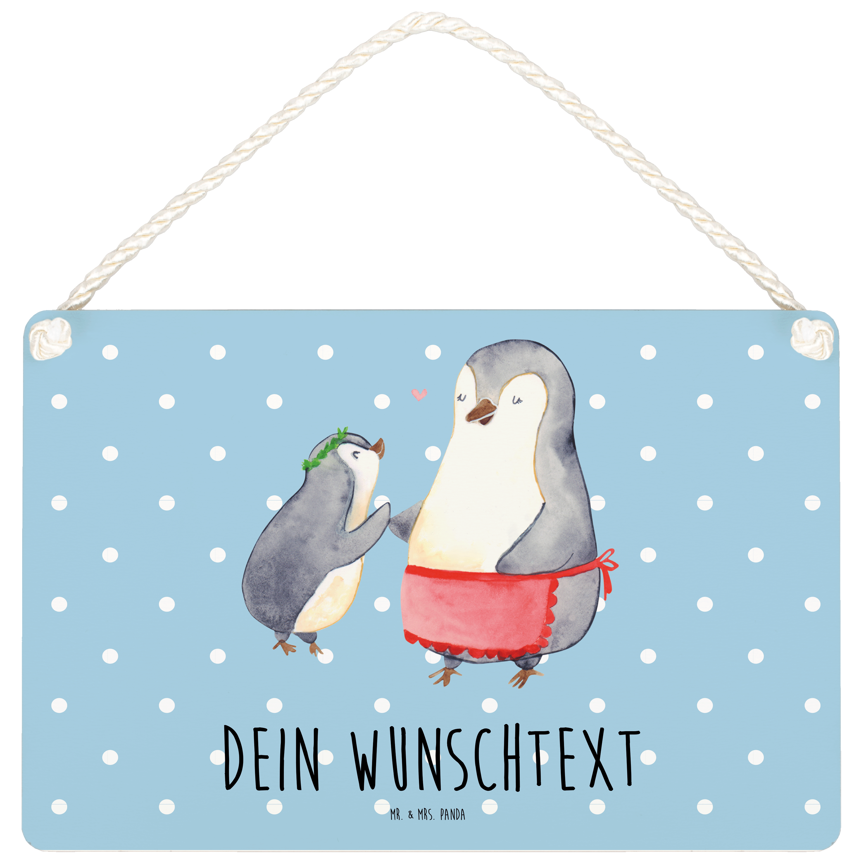 Personalisiertes Deko Schild Pinguin mit Kind - DIN A6 - Weiß