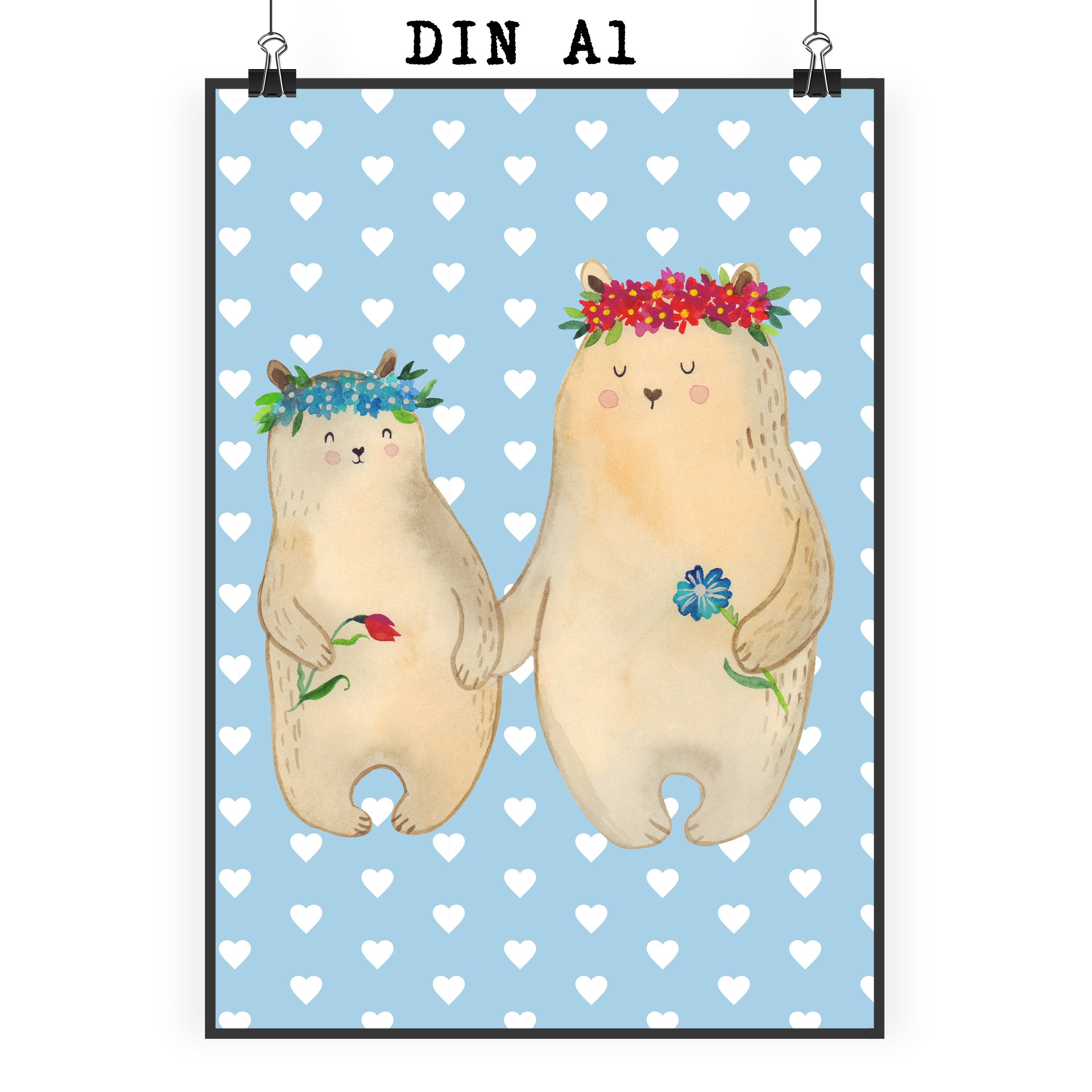 Poster Bären mit Blumenkranz - DIN A0 - mit Spruch