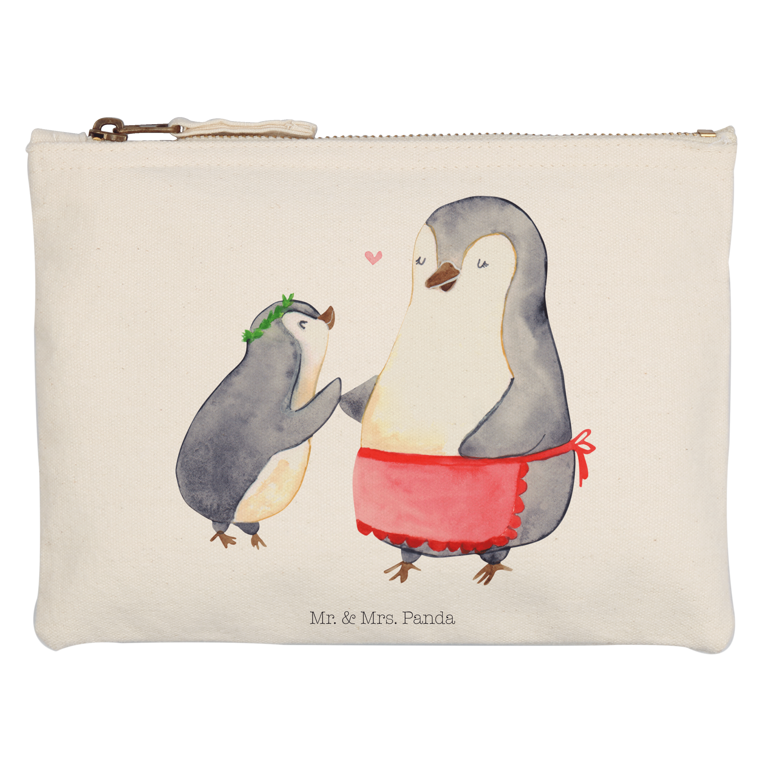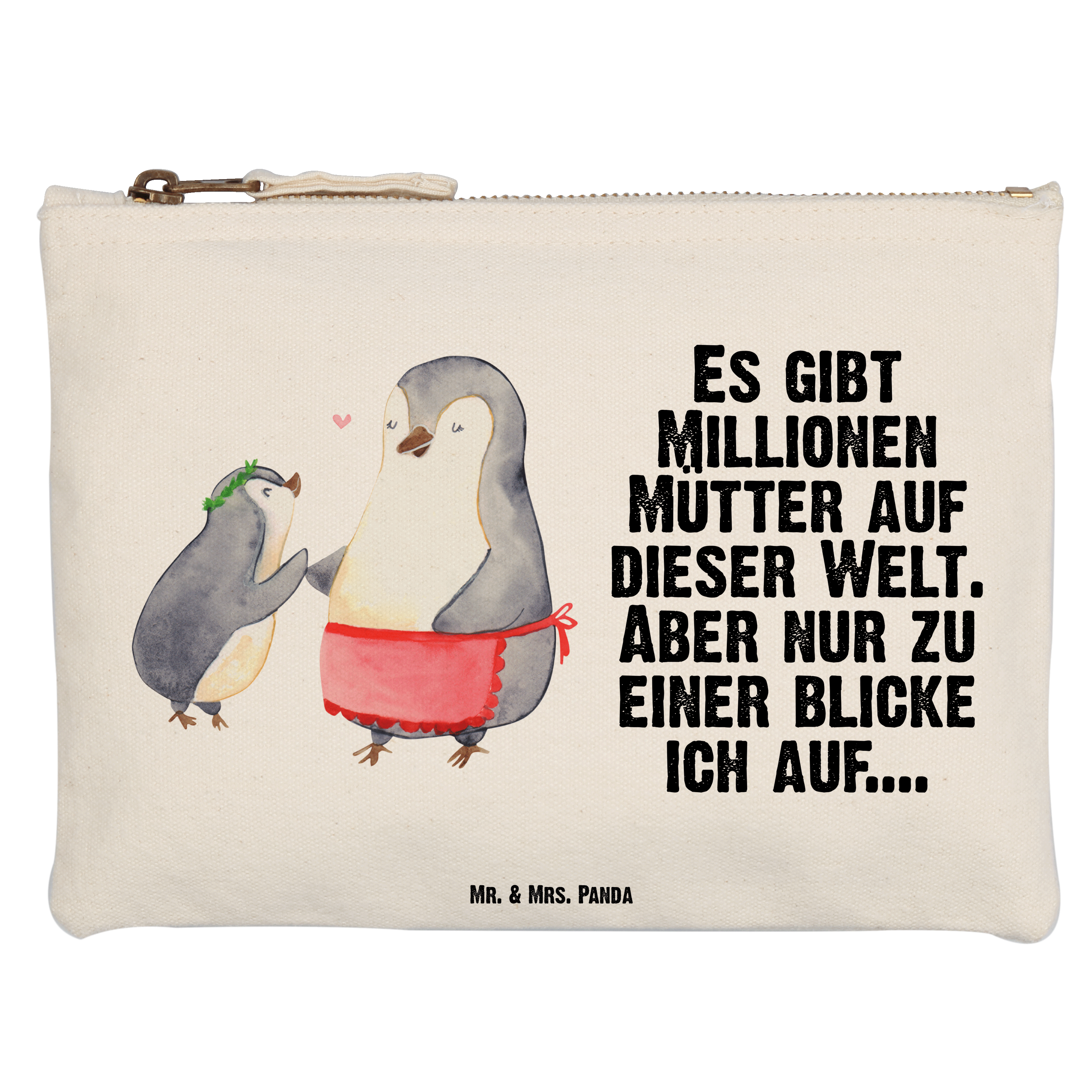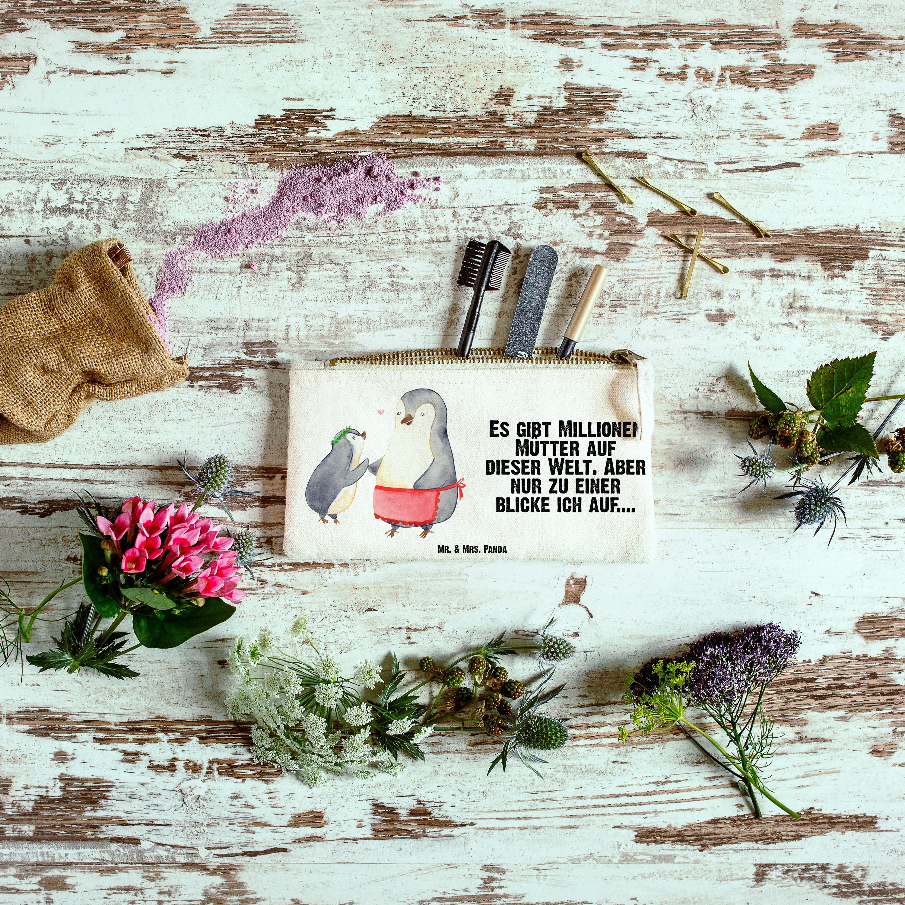 Schminktasche Pinguin mit Kind - Grösse XL Große - mit Spruch