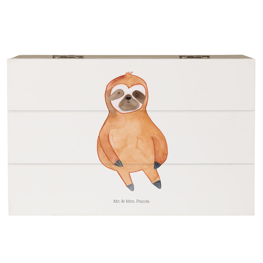 Holzkiste Faultier Zufrieden - 19 x 12 cm - ohne Spruch - Weiß