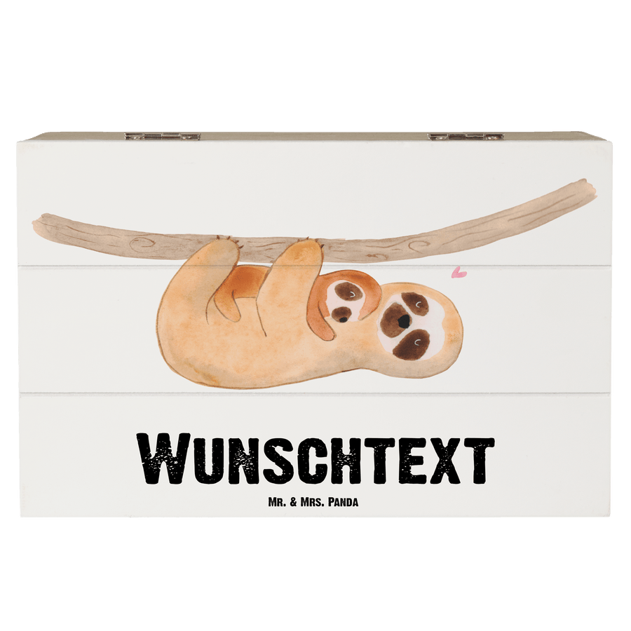 Personalisierte Holzkiste Faultier mit Kind - Weiß - 19 x 12 cm