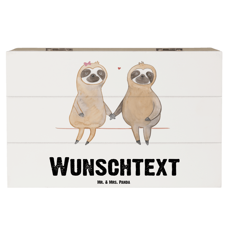 Personalisierte Holzkiste Faultier Pärchen - Weiß - 19 x 12 cm