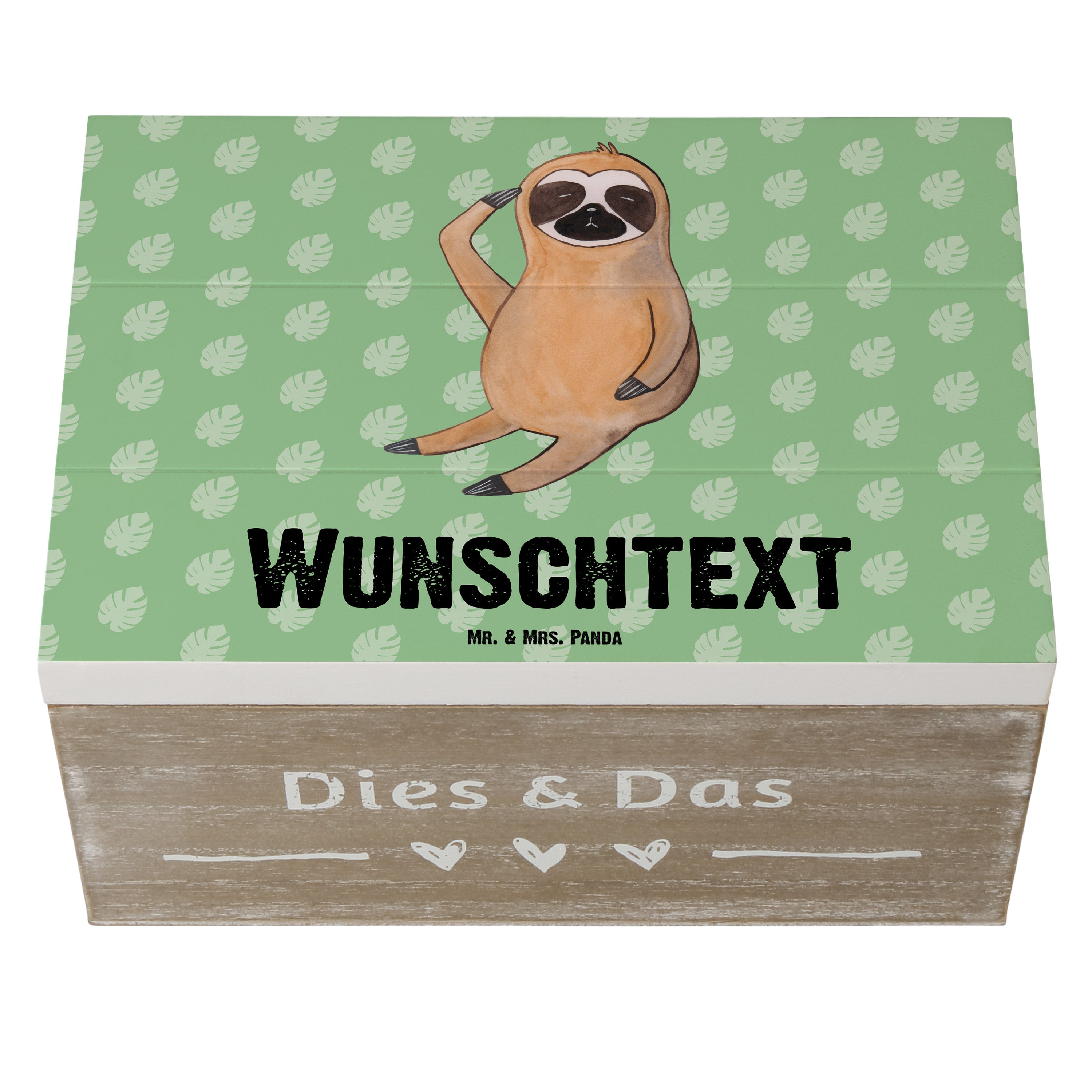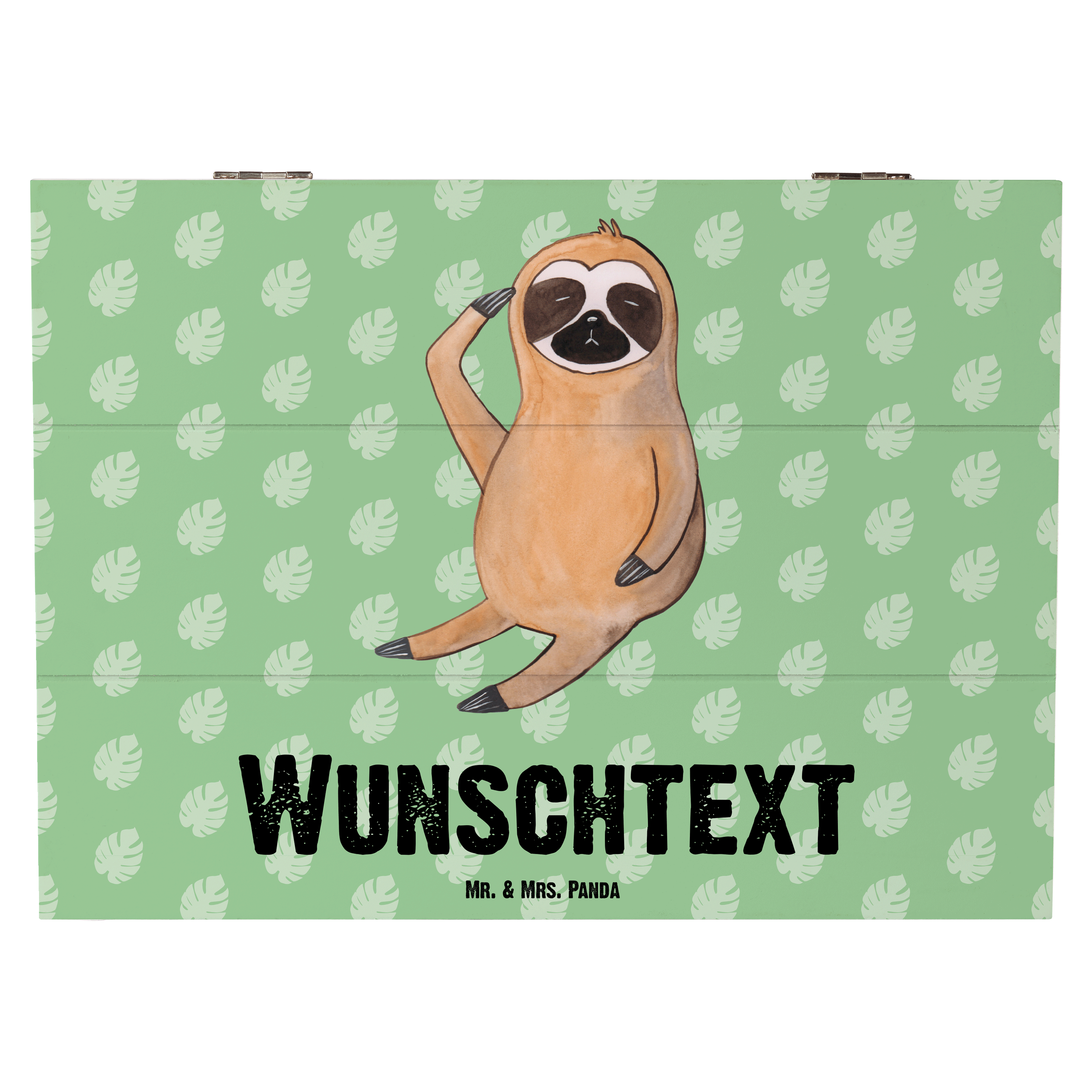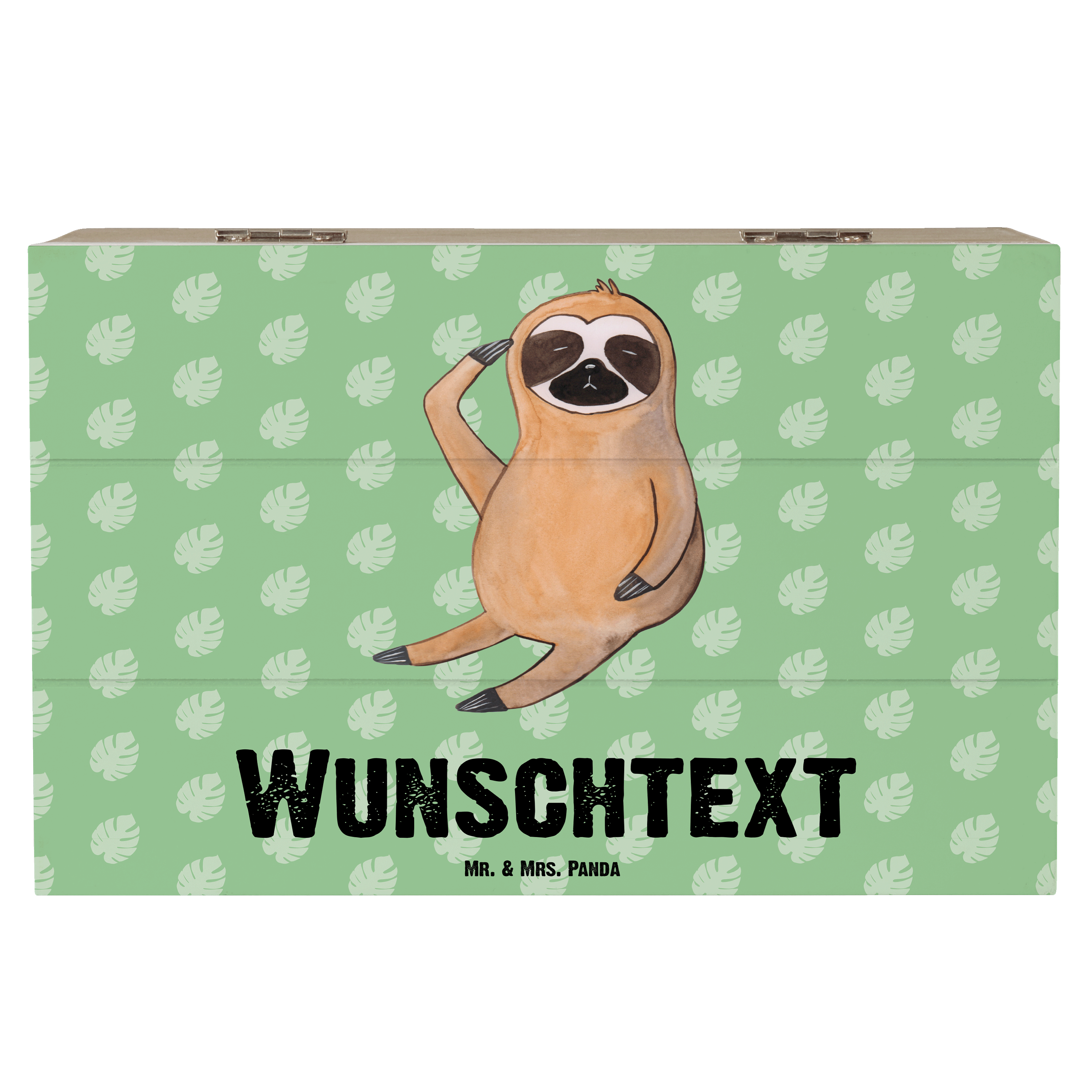 Personalisierte Holzkiste Faultier Vogel zeigen - Tropengrün - 19 x 12 cm