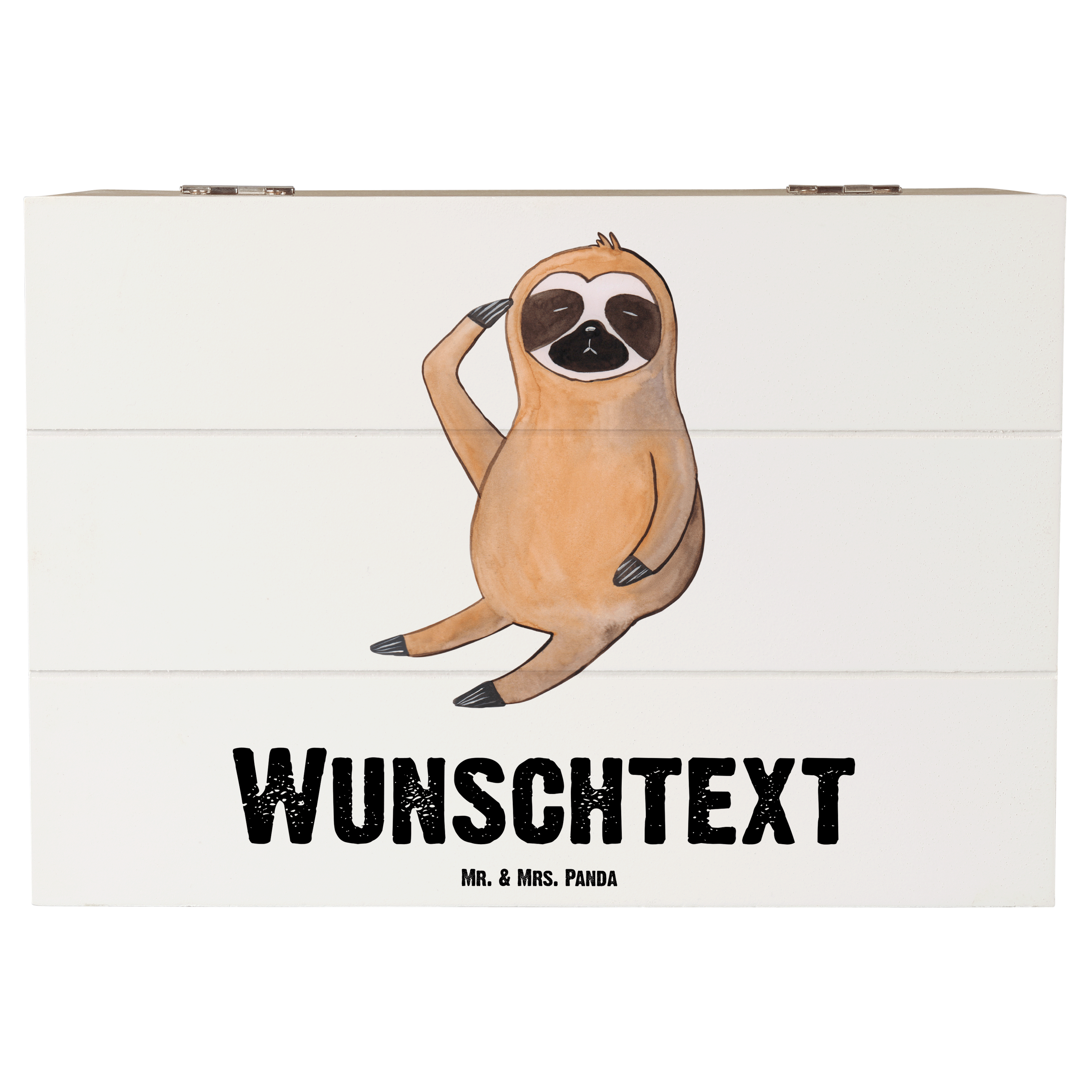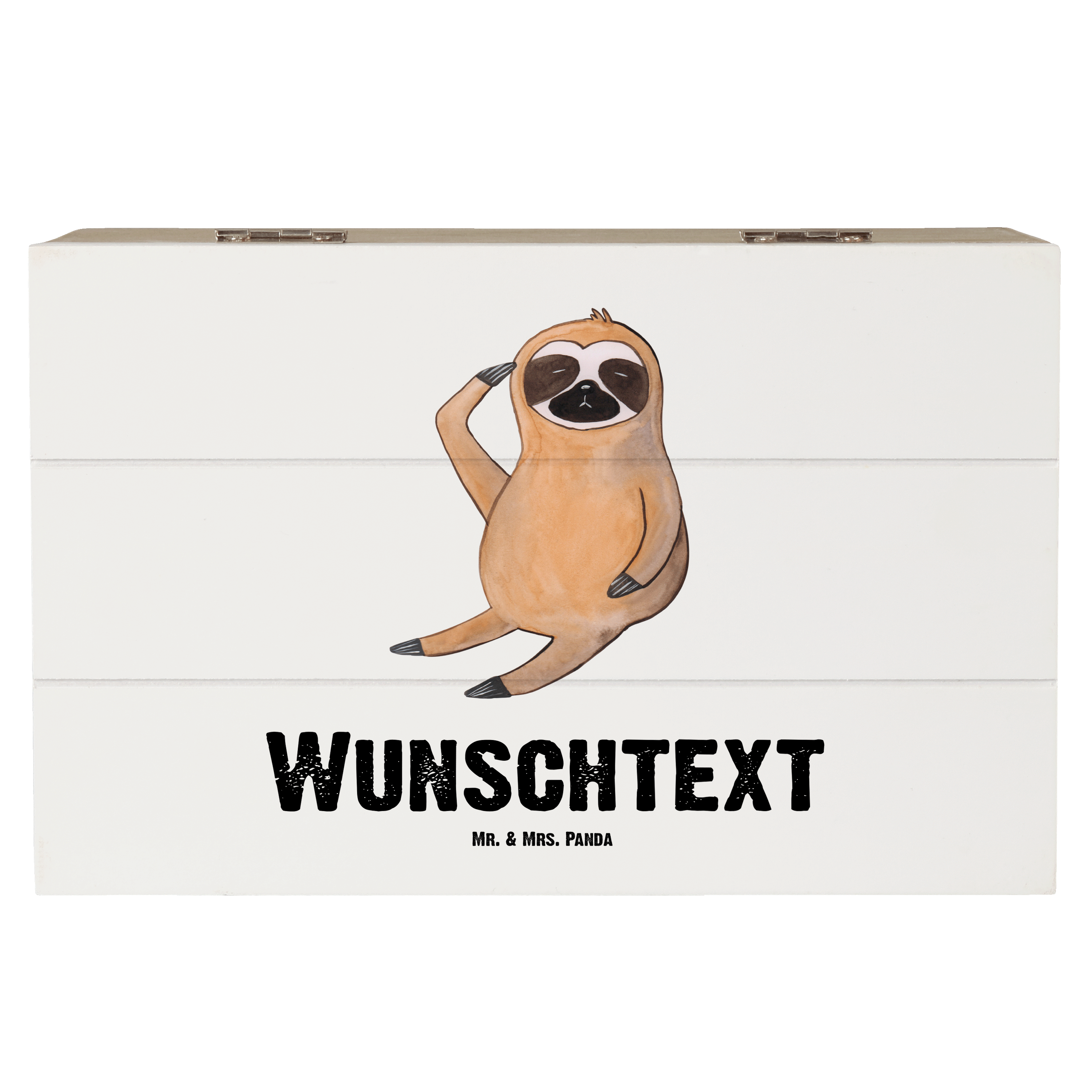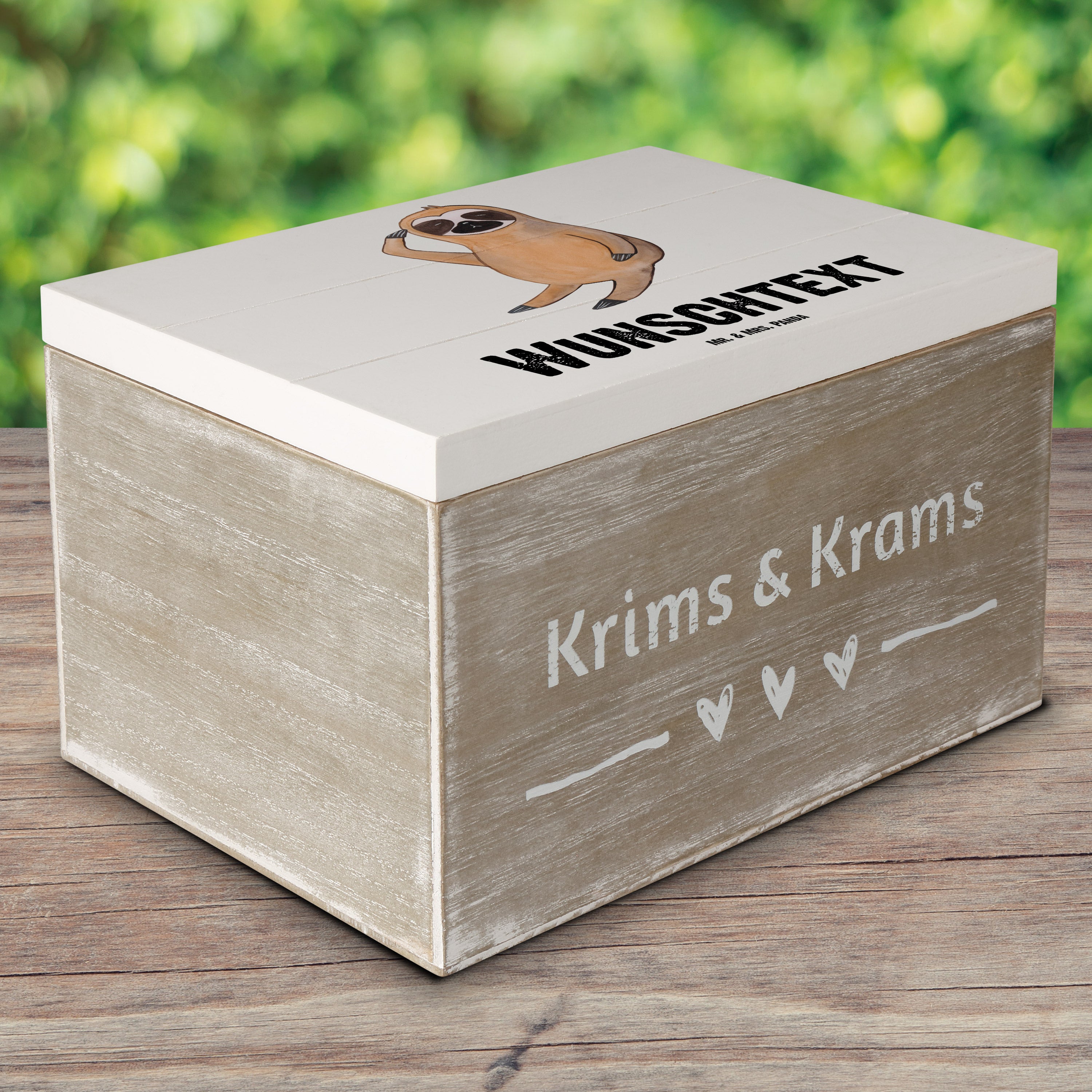 Personalisierte Holzkiste Faultier Vogel zeigen - Tropengrün - 19 x 12 cm