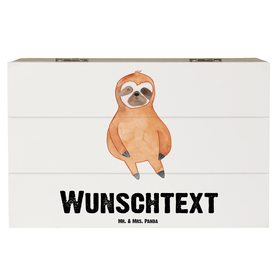 Personalisierte Holzkiste Faultier Zufrieden - Weiß - 19 x 12 cm