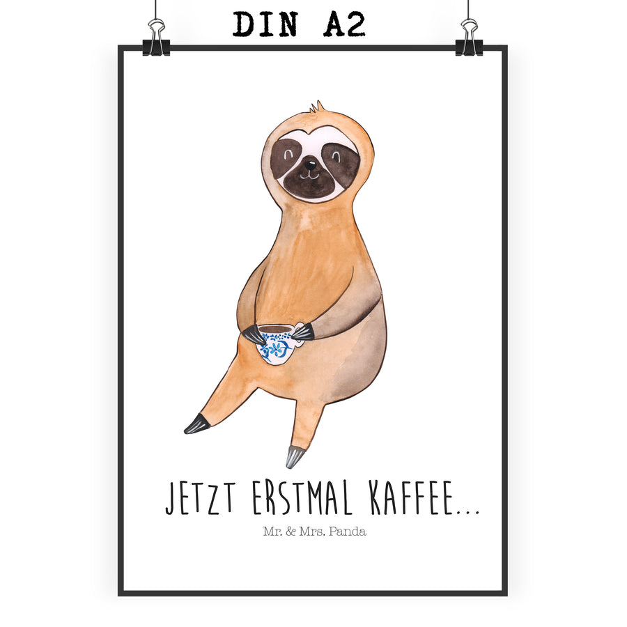 Poster Faultier Kaffee - DIN A2 - mit Spruch