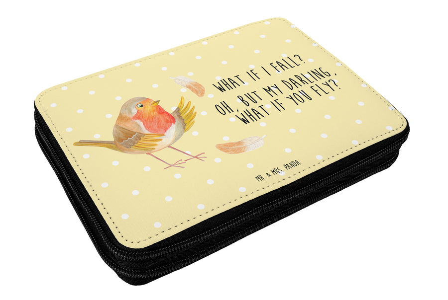 Federmappe Rotkehlchen mit Federn Federmappe, Stiftetasche, Stifte Etui, Schule, Einschulung, Geschenk, Kind, Schüler, Schülerin, Stifterolle, Federmäppchen, Motiv, Grundschule, Federmäppchen bedruckt, Büro Stifte Etui, Bestückte Federmappe, Kinder Federmappe, Federmappe Einschulung, Tiermotive, Gute Laune, lustige Sprüche, Tiere, What if i fall, Rotkehlchen, Spruch Motivation, Spruch Mut, Vogel, Motivation Sprüche, Motivationsbilder, fliegen