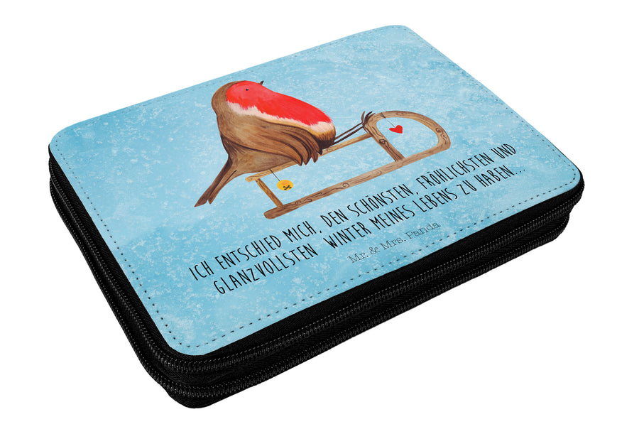 Federmappe Rotkehlchen Schlitten - mit Spruch