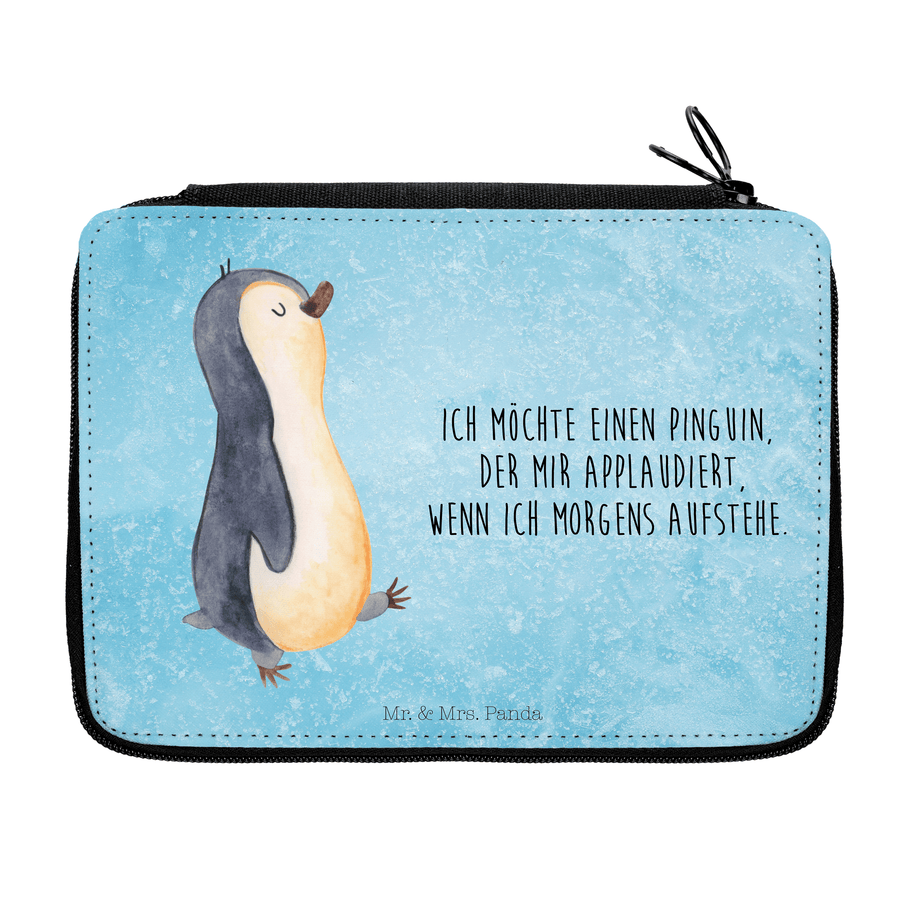 Federmappe Pinguin marschierend - mit Spruch - Eisblau