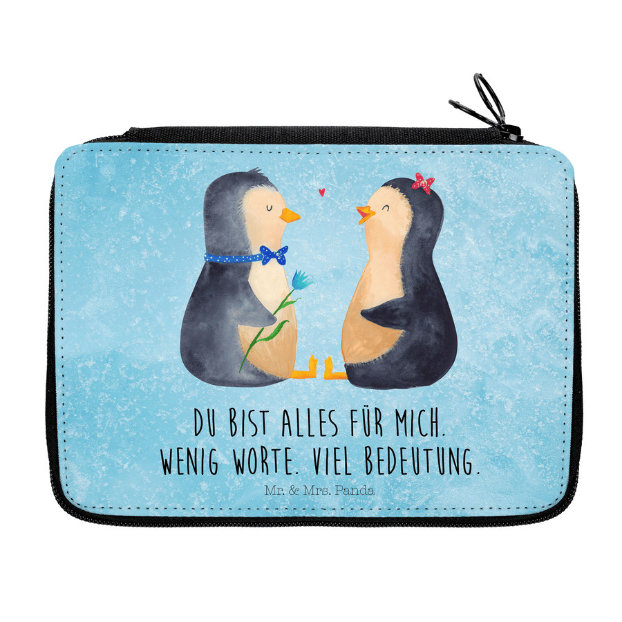 Federmappe Pinguin Pärchen - mit Spruch - Eisblau