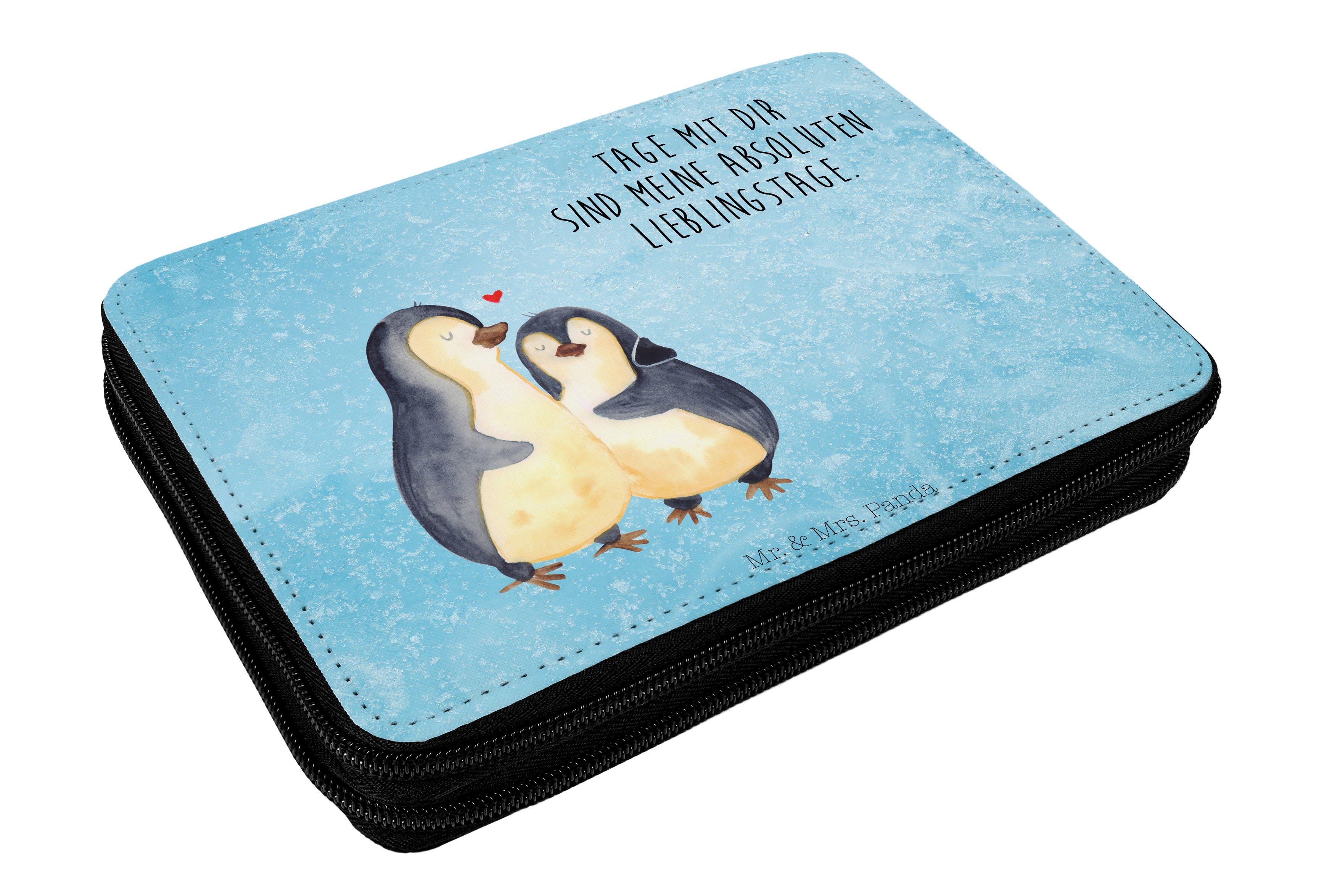 Federmappe Pinguin umarmend - mit Spruch - Eisblau