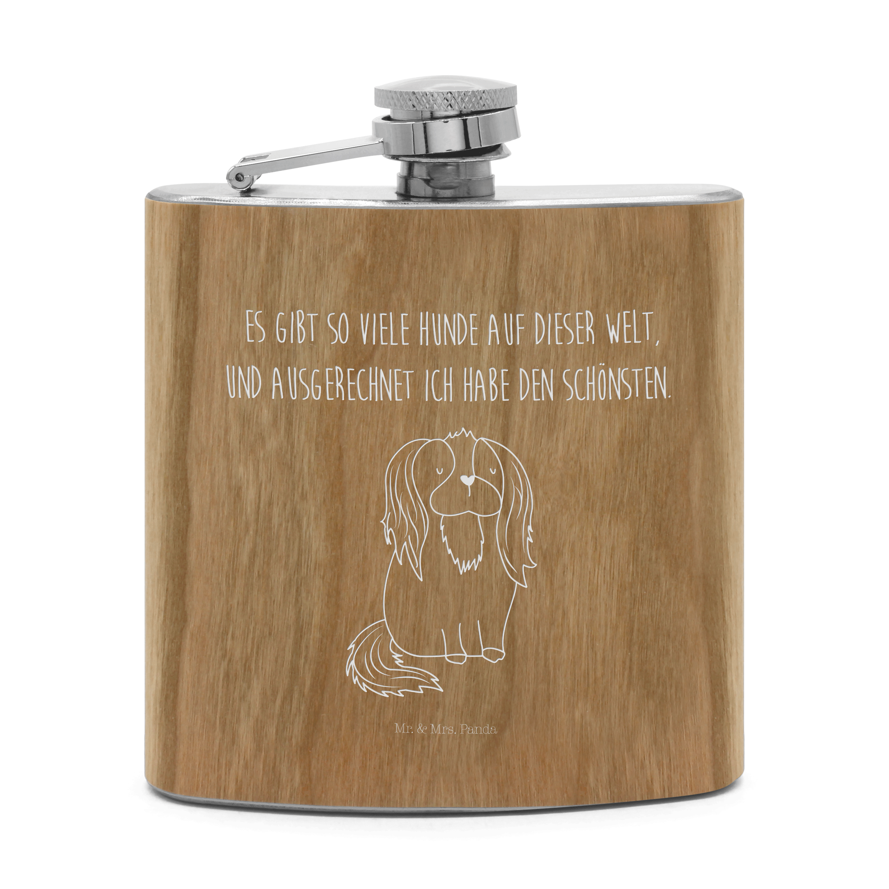 Flachmann Cavalier King Charles Spaniel Flachmann, Edelstahl, hochwertig, Gravur, Taschenflasche, Frauen, Hund, Hundemotiv, Haustier, Hunderasse, Tierliebhaber, Hundebesitzer, Sprüche, Cavalier King Charles Spaniel, Cockerspaniel, Spaniel, Spruch, schönster Hund
