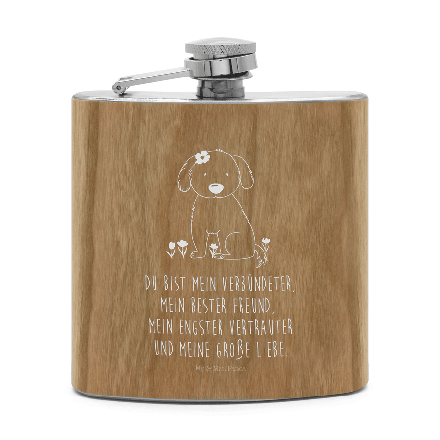 Flachmann Hund Hundedame Flachmann, Edelstahl, hochwertig, Gravur, Taschenflasche, Frauen, Hund, Hundemotiv, Haustier, Hunderasse, Tierliebhaber, Hundebesitzer, Sprüche, Hunde, Hundeliebe, Hundeglück, Liebe, Frauchen