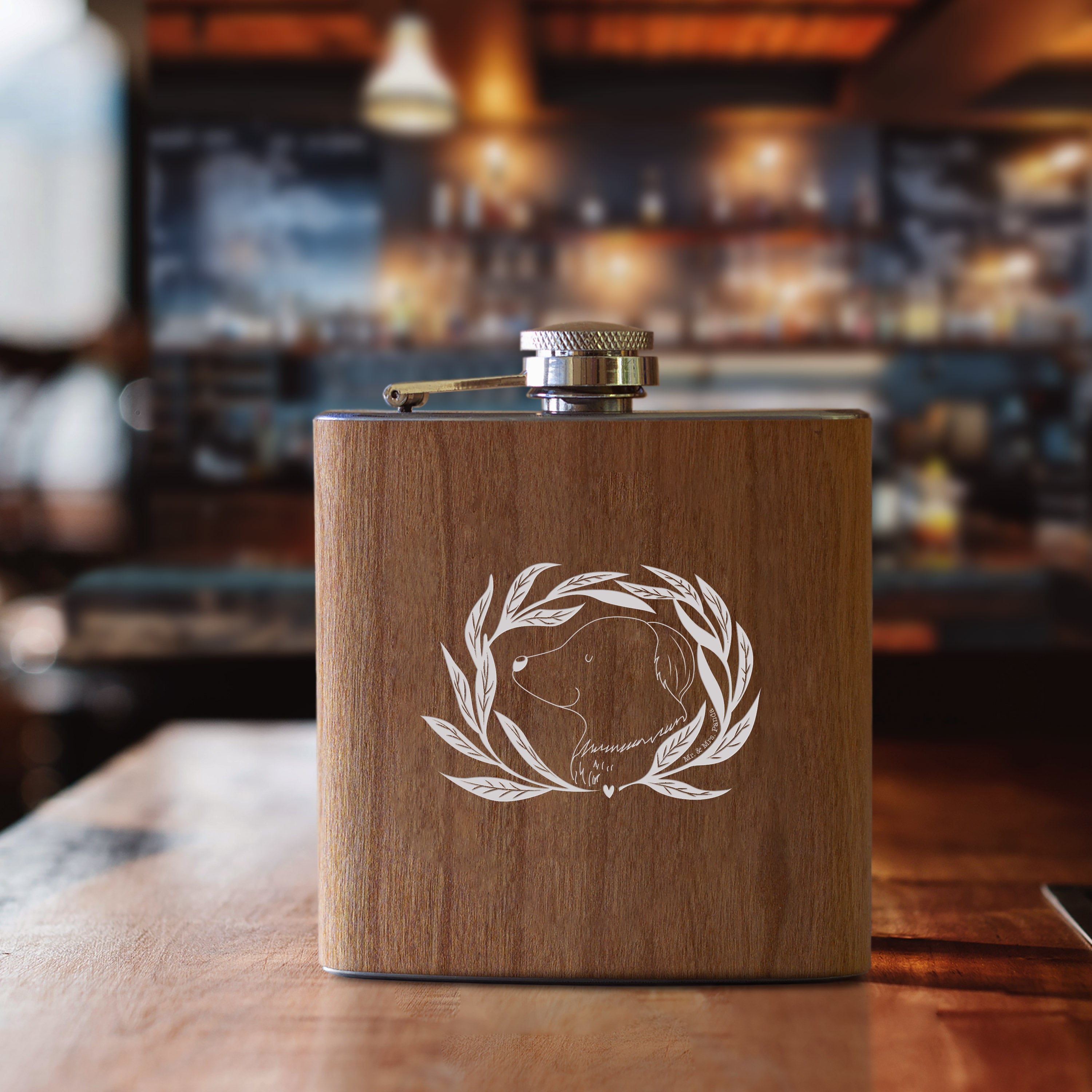 Flachmann Hund Ranke Flachmann, Edelstahl, hochwertig, Gravur, Taschenflasche, Frauen, Hund, Hundemotiv, Haustier, Hunderasse, Tierliebhaber, Hundebesitzer, Sprüche, Ranke, Therapie, Selbsttherapie, Hundeliebe, Hundeglück, Hunde