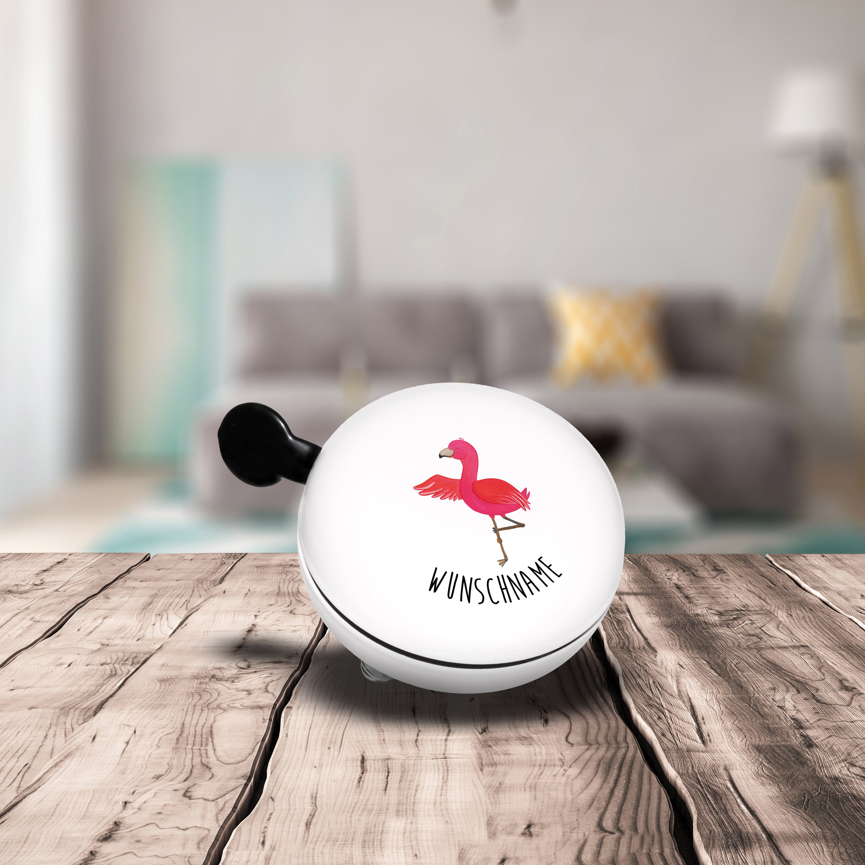 Personalisierte Fahrradklingel Flamingo Yoga