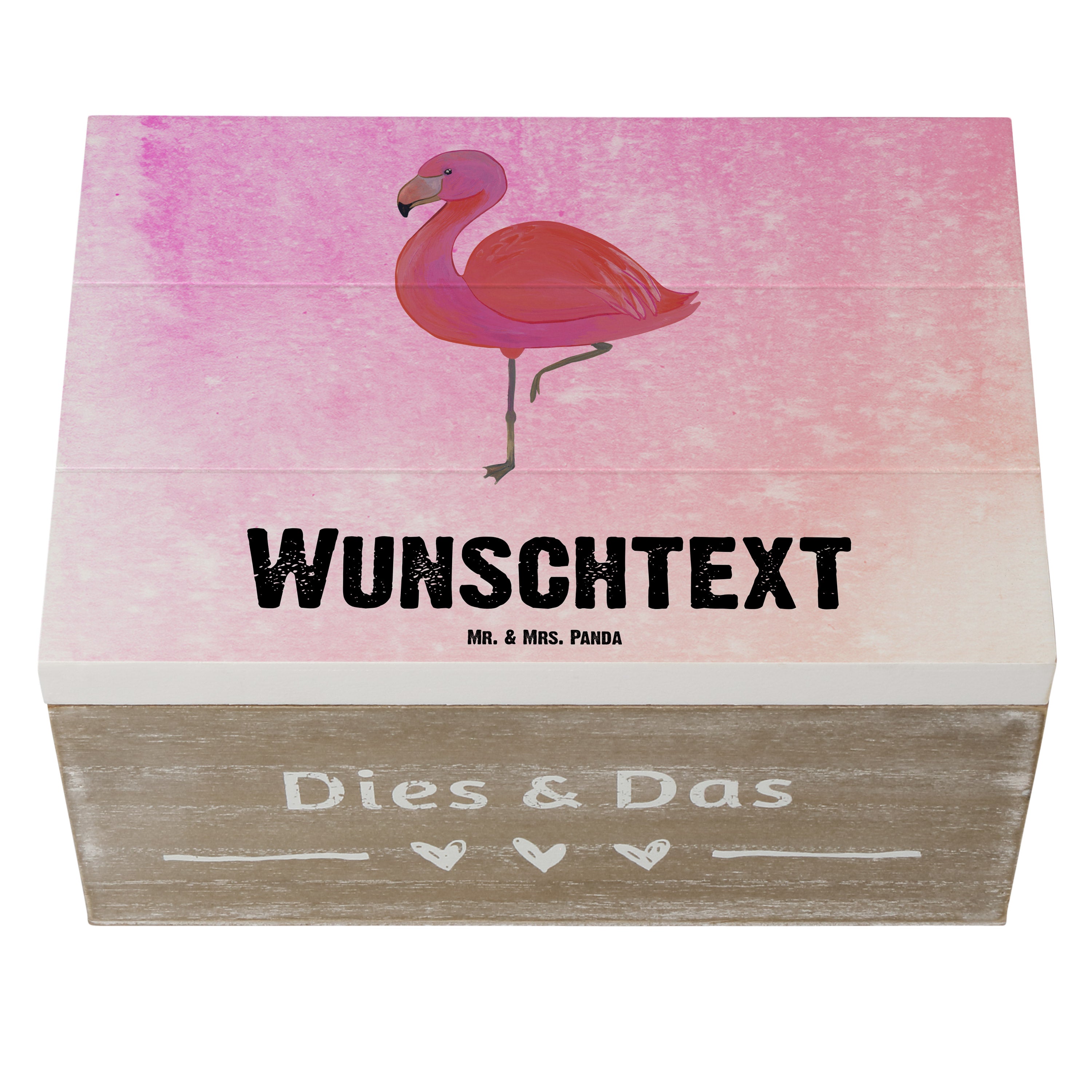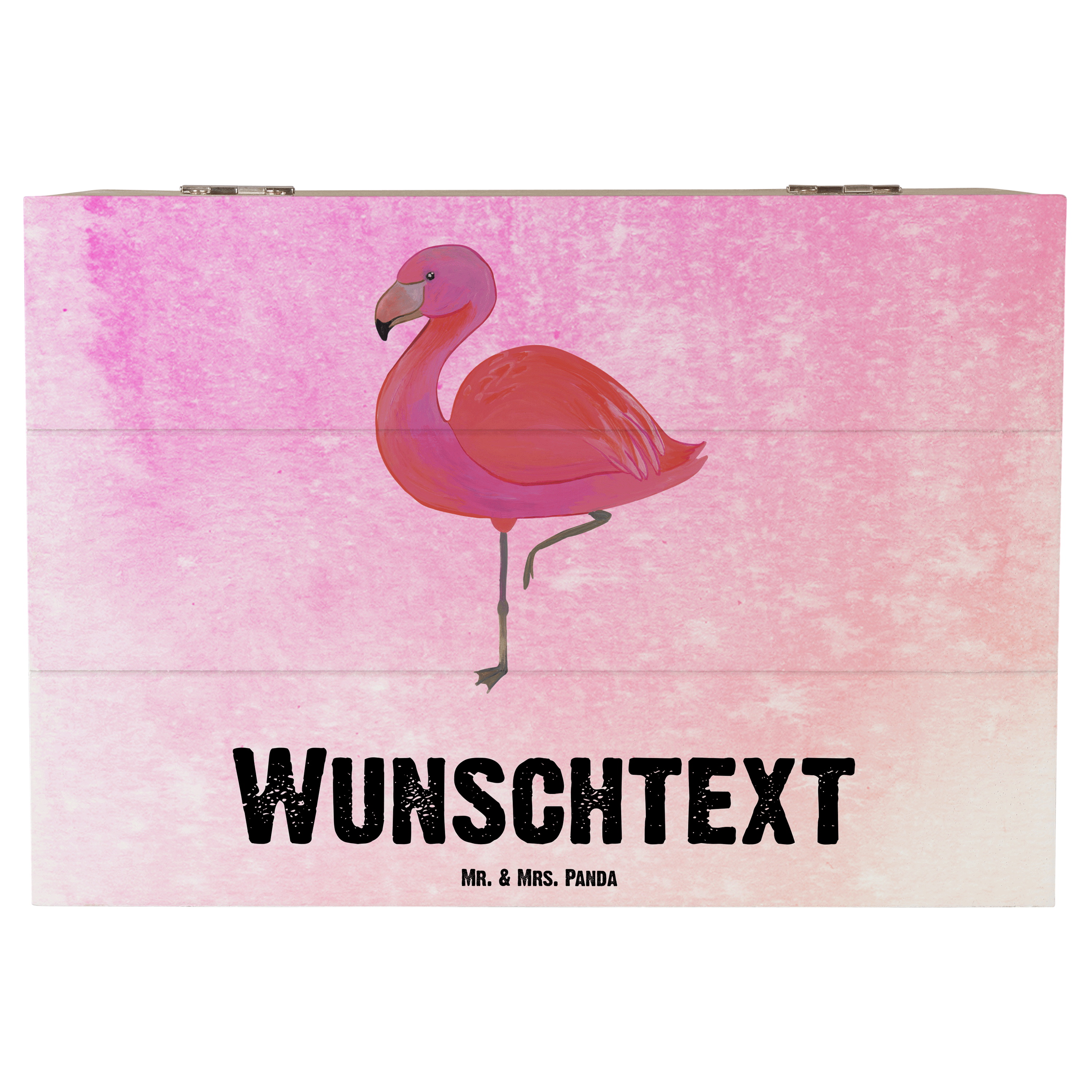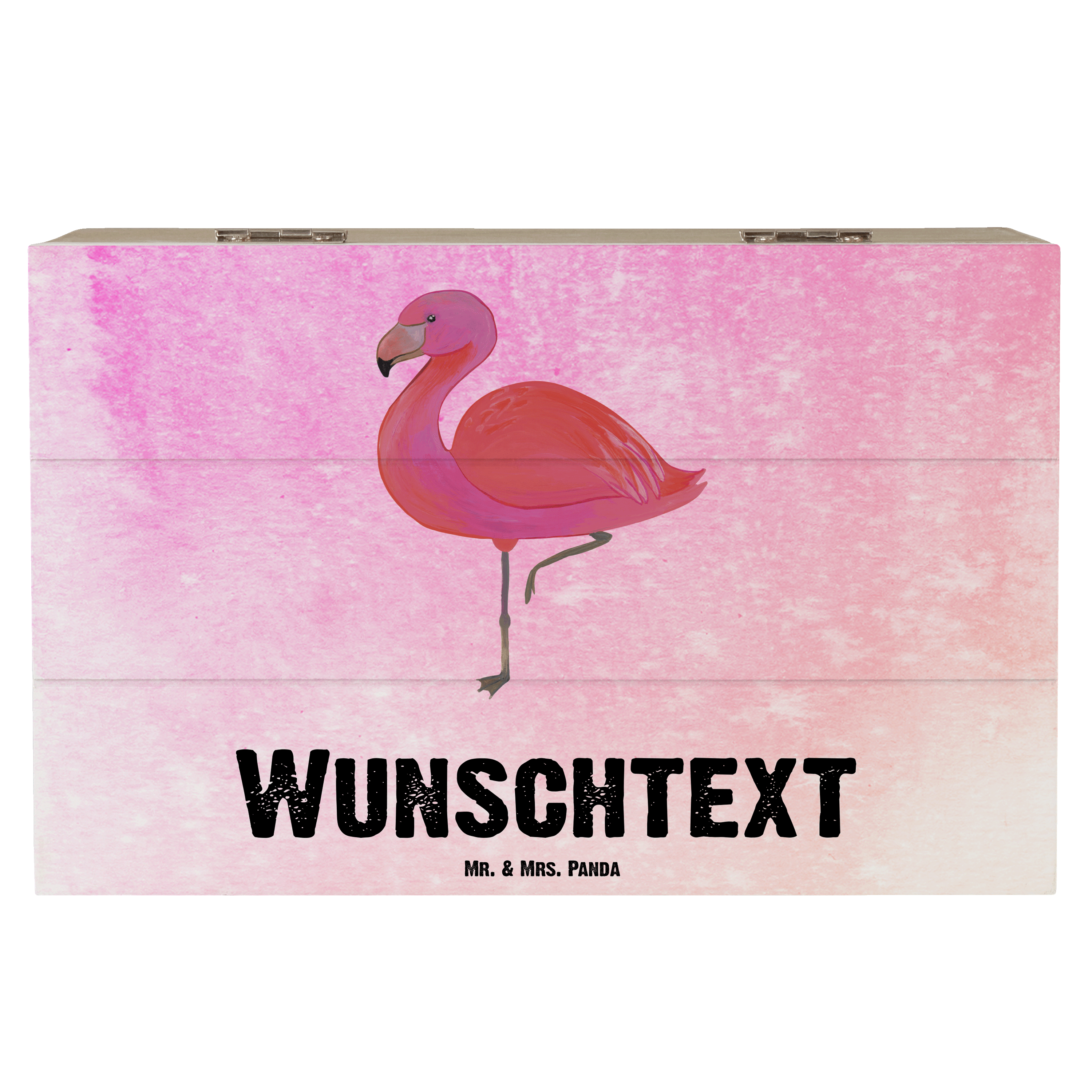 Personalisierte Holzkiste Flamingo classic - 25 x 18 cm - Aquarell Pink